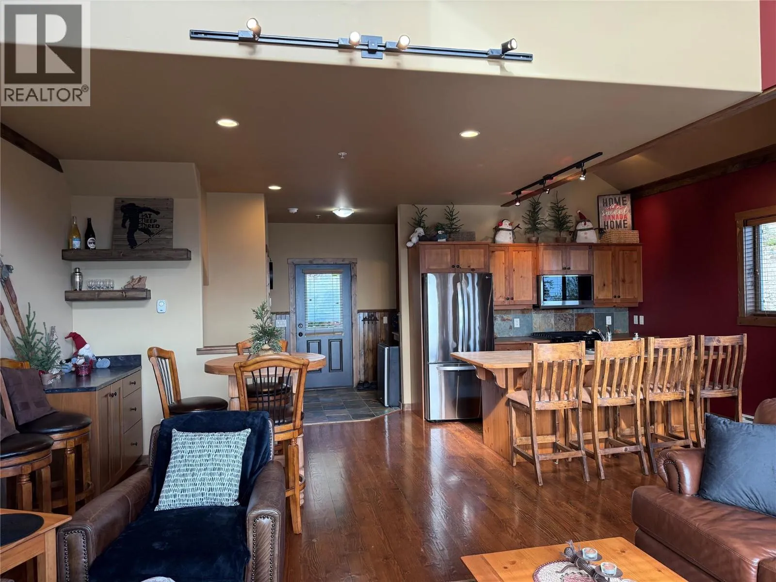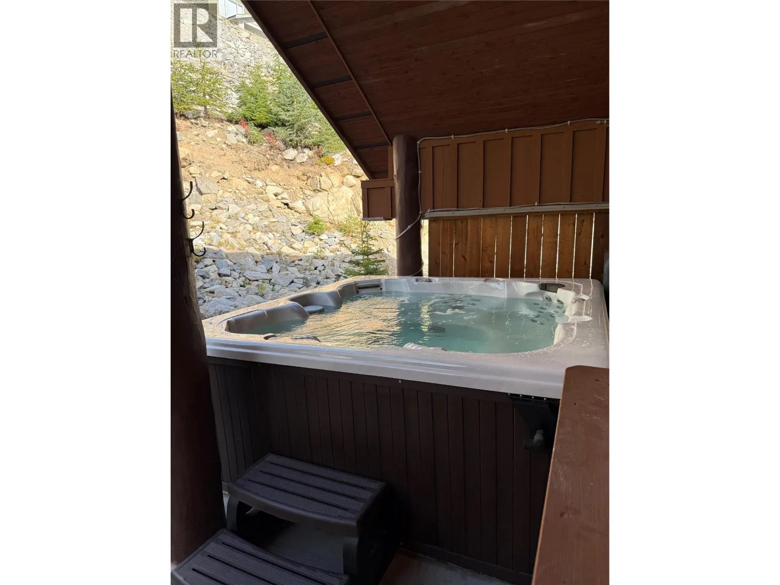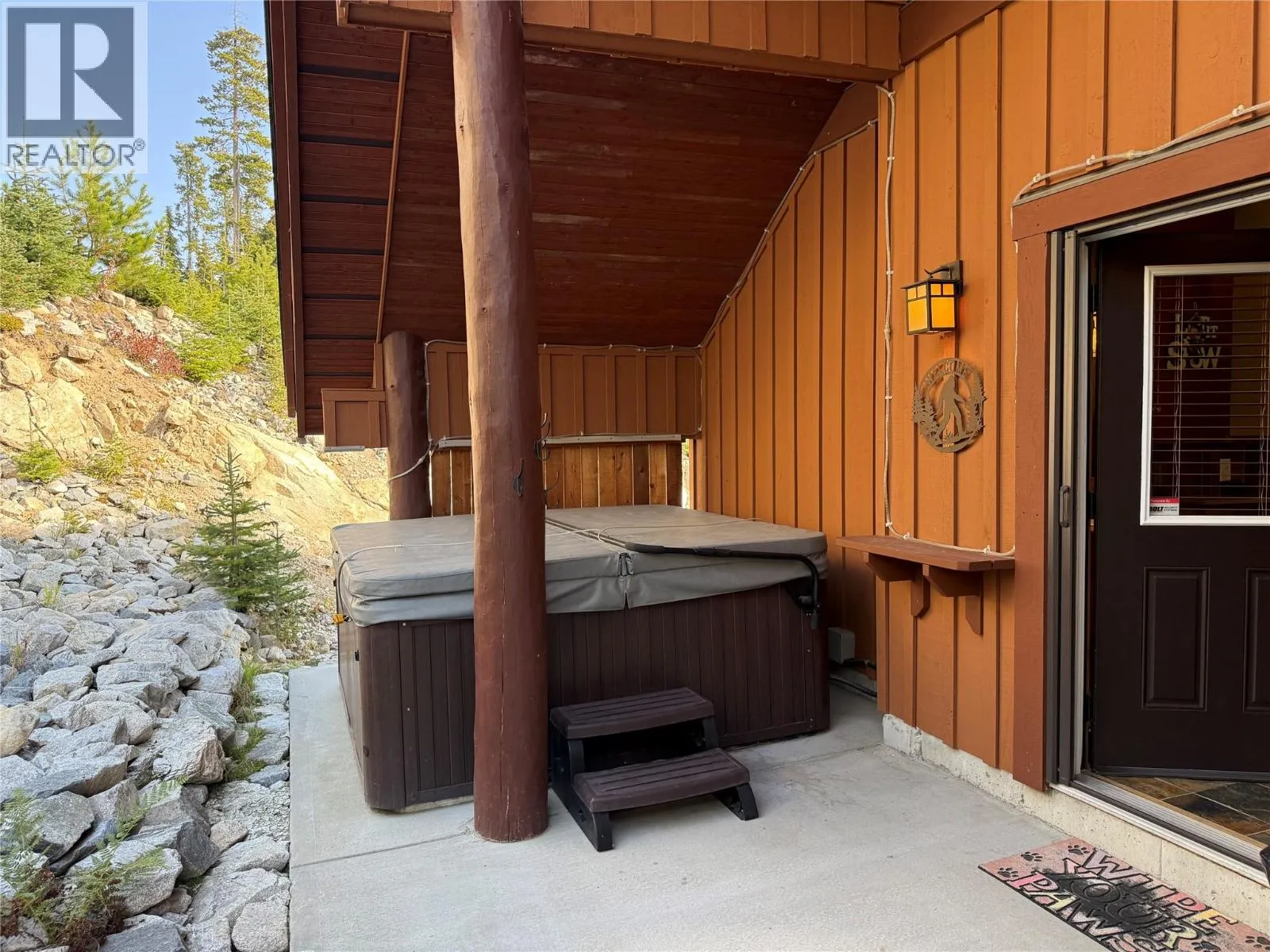 Welcome to your perfect Mountain home! Excellent layout for family, groups of friends or couples travelling together, and pets! Single attached garage + carport & extra parking on driveway. Awesome Ski-in location with ski run taking you right to your back covered patio, ski storage locker and hottub! Entry level has great hooks & benches for ski gear + access to garage. Next level up has the bedrooms and 2 full bathrooms (1 is the decadent ensuite). One bedroom has double + single bunk which sleeps 3, plus 2 extra bedrooms so the Chalet sleeps 9 comfortably. Another level and you arrive at a gorgeous bright open entertaining area! Vaulted ceiling in the living room with gas fireplace, dining area, excellent cabinet package/high end appliances, island with eating area, 4pc bathroom conveniently located on same level as hottub. Top level with Media room/Family room loft area that can sleep another 2 guests. Exceptional neighbours in other half of duplex. The best mountain views and quiet location yet only a 5 min drive to the Big White Village! (id:27476)