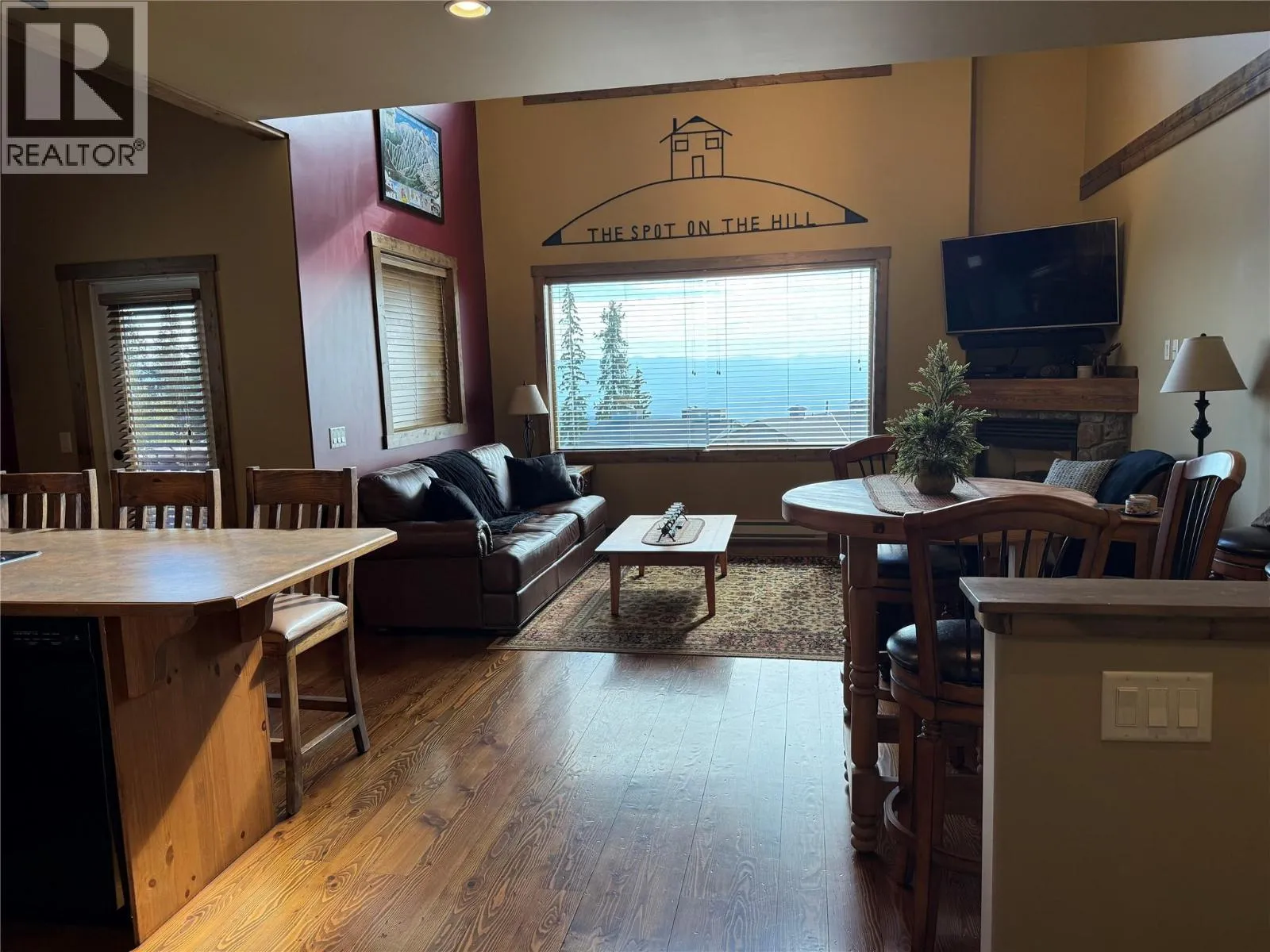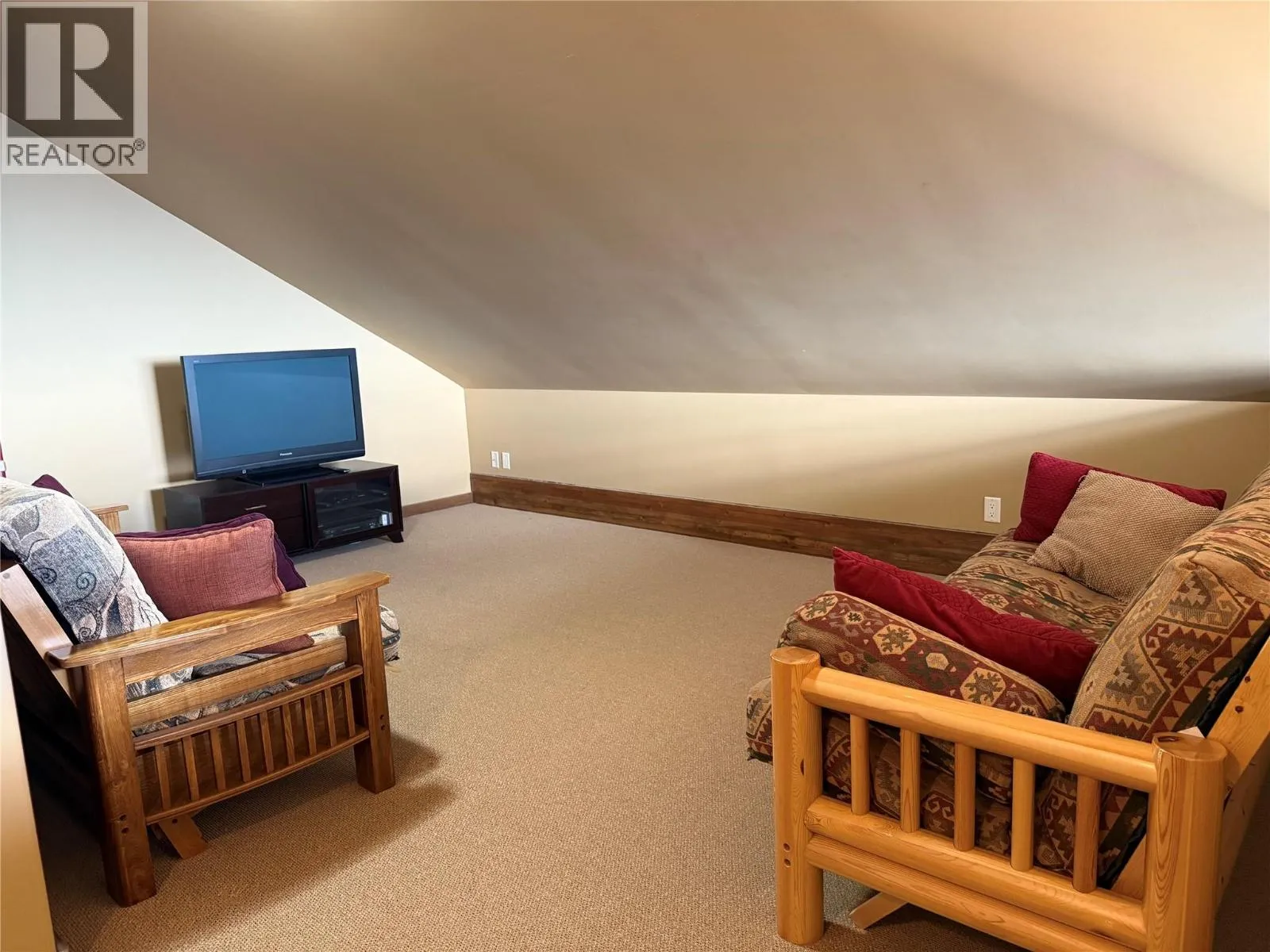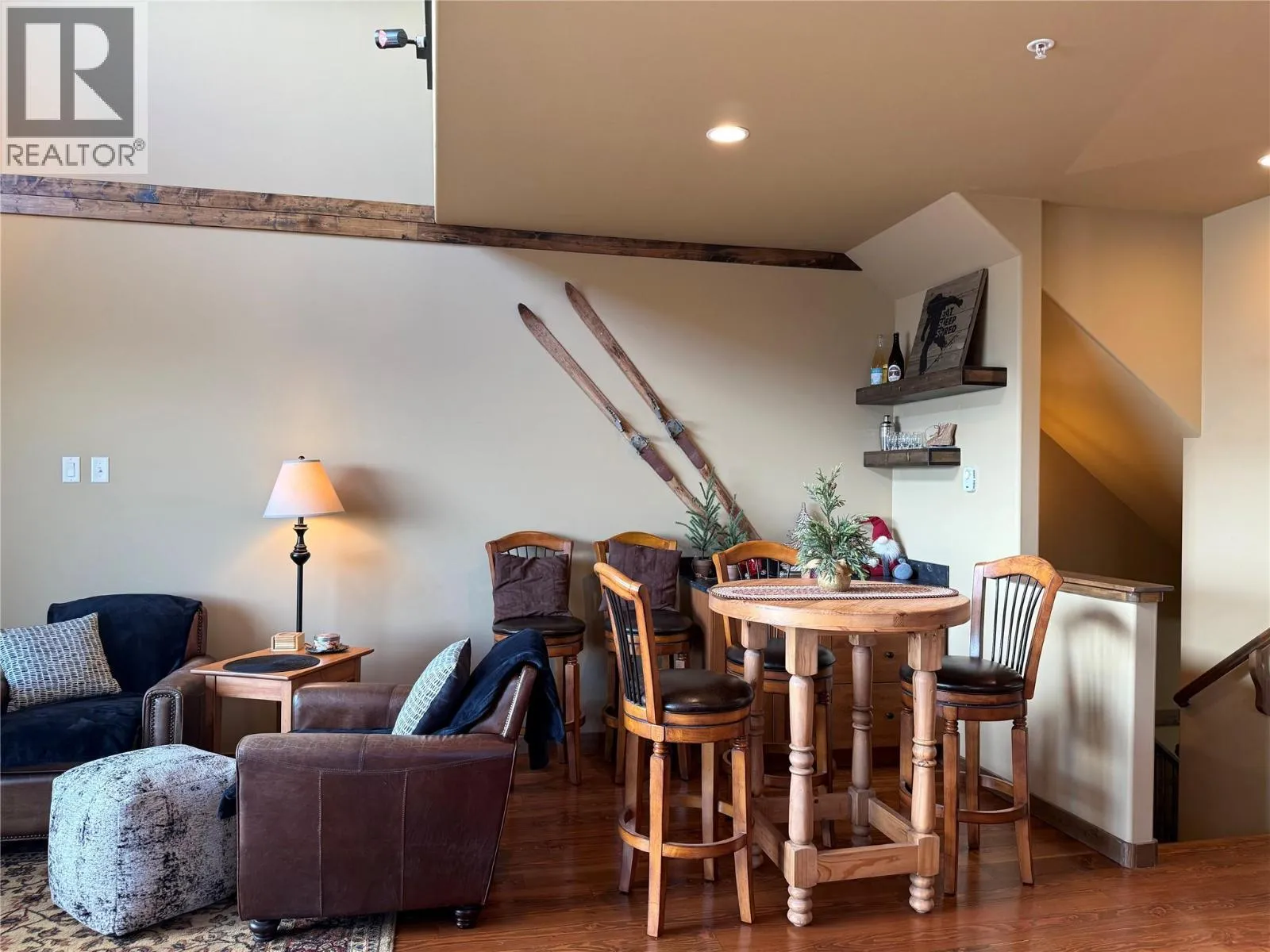 Welcome to your perfect Mountain home! Excellent layout for family, groups of friends or couples travelling together, and pets! Single attached garage + carport & extra parking on driveway. Awesome Ski-in location with ski run taking you right to your back covered patio, ski storage locker and hottub! Entry level has great hooks & benches for ski gear + access to garage. Next level up has the bedrooms and 2 full bathrooms (1 is the decadent ensuite). One bedroom has double + single bunk which sleeps 3, plus 2 extra bedrooms so the Chalet sleeps 9 comfortably. Another level and you arrive at a gorgeous bright open entertaining area! Vaulted ceiling in the living room with gas fireplace, dining area, excellent cabinet package/high end appliances, island with eating area, 4pc bathroom conveniently located on same level as hottub. Top level with Media room/Family room loft area that can sleep another 2 guests. Exceptional neighbours in other half of duplex. The best mountain views and quiet location yet only a 5 min drive to the Big White Village! (id:27476)
