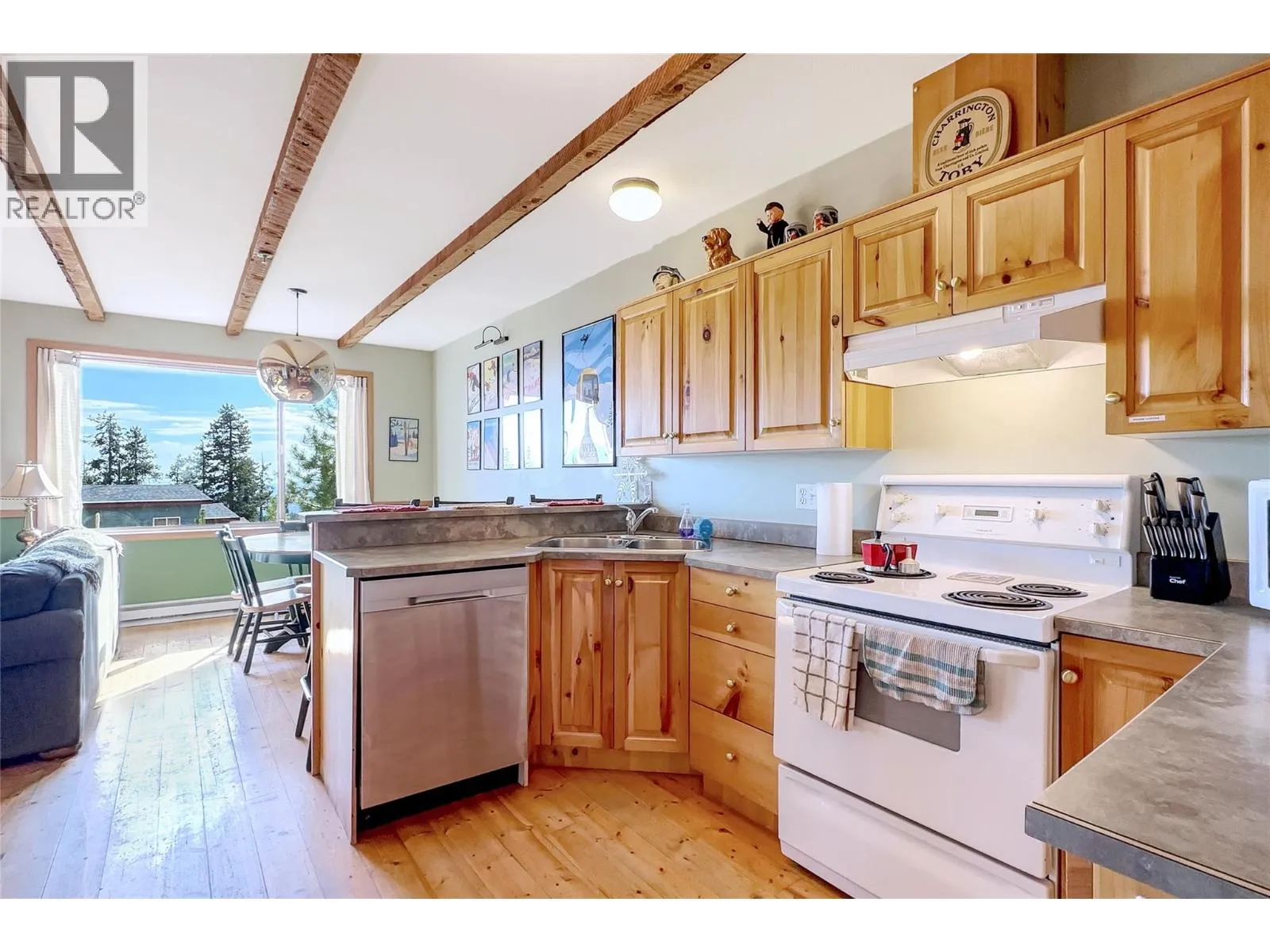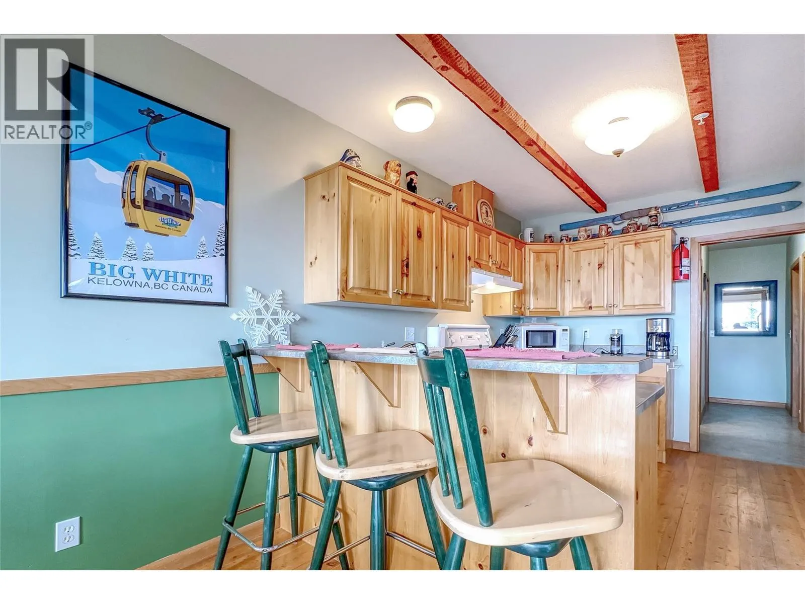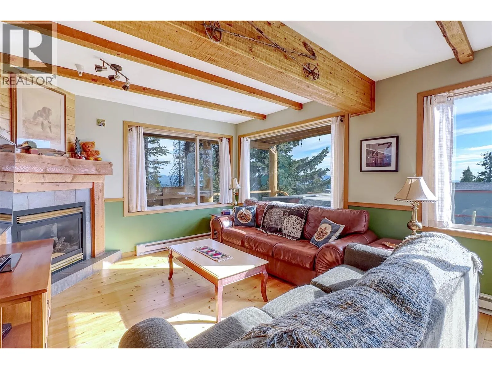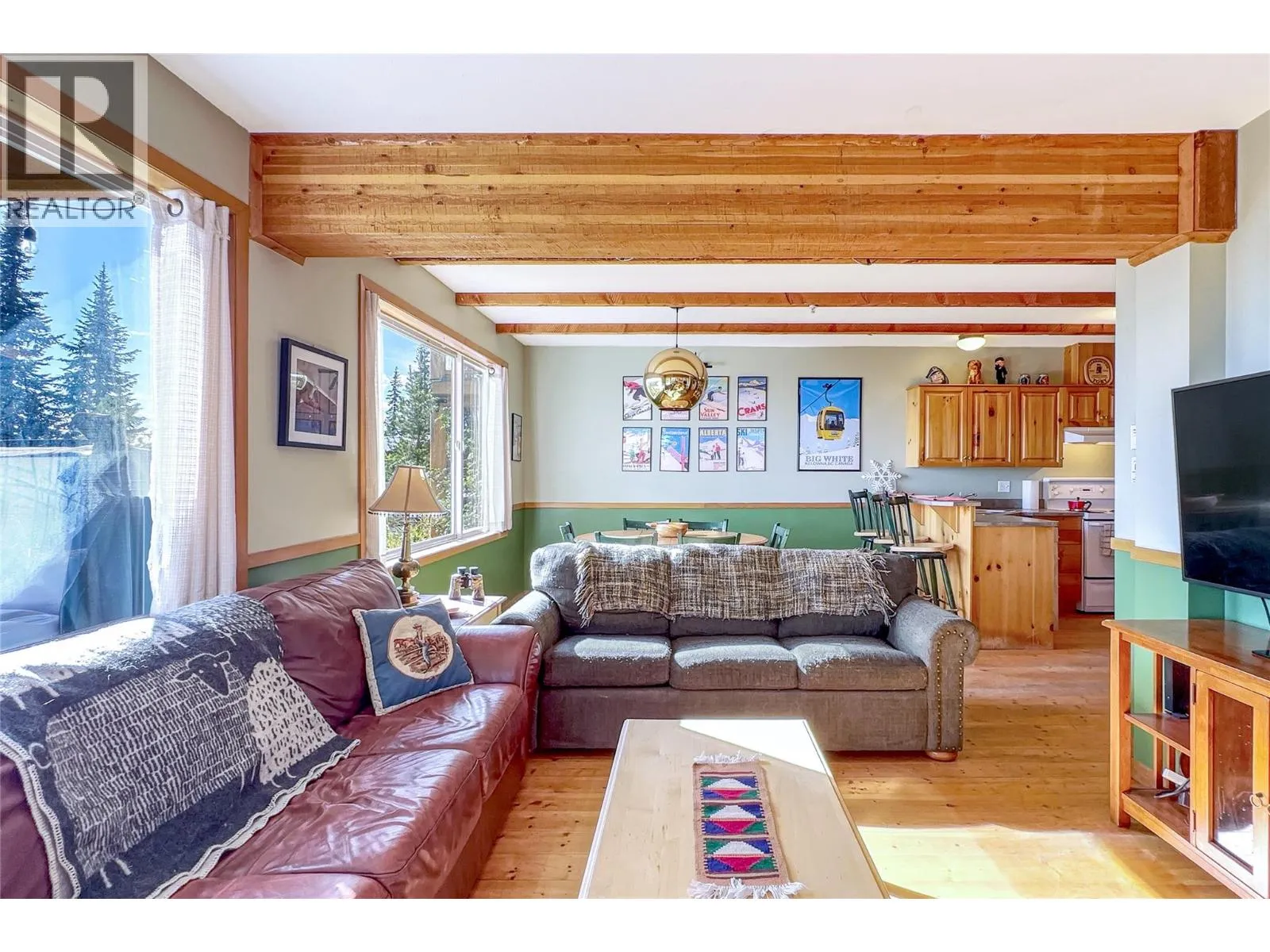 Welcome to Mile High Chalet in Snow Pine Estates, a true ski-in retreat where rustic charm meets modern comfort. Ski straight from Serwaâs Run to your door and step inside a home that feels more like a cozy cabin in the woods than a condo. Step into the warm, wood-panelled mudroom with a slate floor and long timber bench. This functional space has plenty of room for endless hooks, and shelves to store all your gear. From there, the main living area opens with solid wood floors, wood kitchen cabinetry, and both structural and decorative timber beams above, this home's craftsmanship is undeniable. The open layout keeps everyone connected, so you never miss a moment of ski-trip camaraderie, whether youâre preparing a meal, gathering at the peninsula bar, playing cards at the table, or relaxing by the gas fireplace. At the back of the home, youâll find two bedrooms, a full bathroom, in-suite laundry, and storage. Additional features include a ski locker at the front door and two uncovered parking spaces directly in front of the building. The icing on the cake? Your own mountainfront deck where you can unwind in the recently installed Equinox Spas hot tub. Ski-in/ski-out access connects you easily to the Plaza, Ridge Rocket, and Snowghost chair lifts. Make sure to explore the comprehensive virtual tour, including aerial tour of Snow Pine Estates showing ski-in/ski-out access to 3 major chair lifts. Call for more information or with any questions about this exciting ski condo. (id:27476)