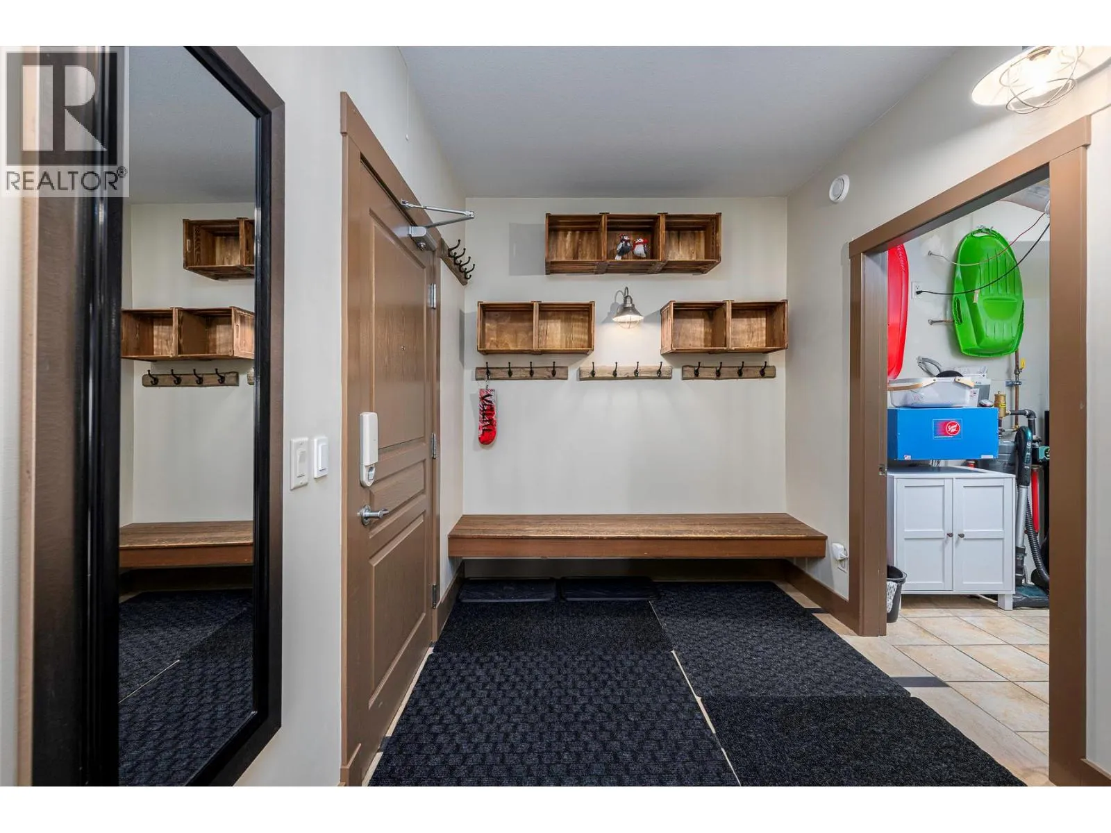 Timbers is the best location in Happy Valley and offers perfect ski access to and from your door. The skating rink is less than two minutes away and for families looking to have the ideal family vacation experience, it's hard to beat this location. Everything is steps away. The unit has infloor heating in every room and is beautifully finished. Steamshower, modern decor and hardwood floors highlight this very large two bedroom property. It comes furnished and ready to go with several rentals in place for this season. GST is applicable. Private hot tub on the deck. There is a huge games room, gym and storage room by the ski access. A rare offering in one of Big White's premium buildings. No rental restrictions and turn key ready to go. Don't delay, book a showing today. (id:27476)