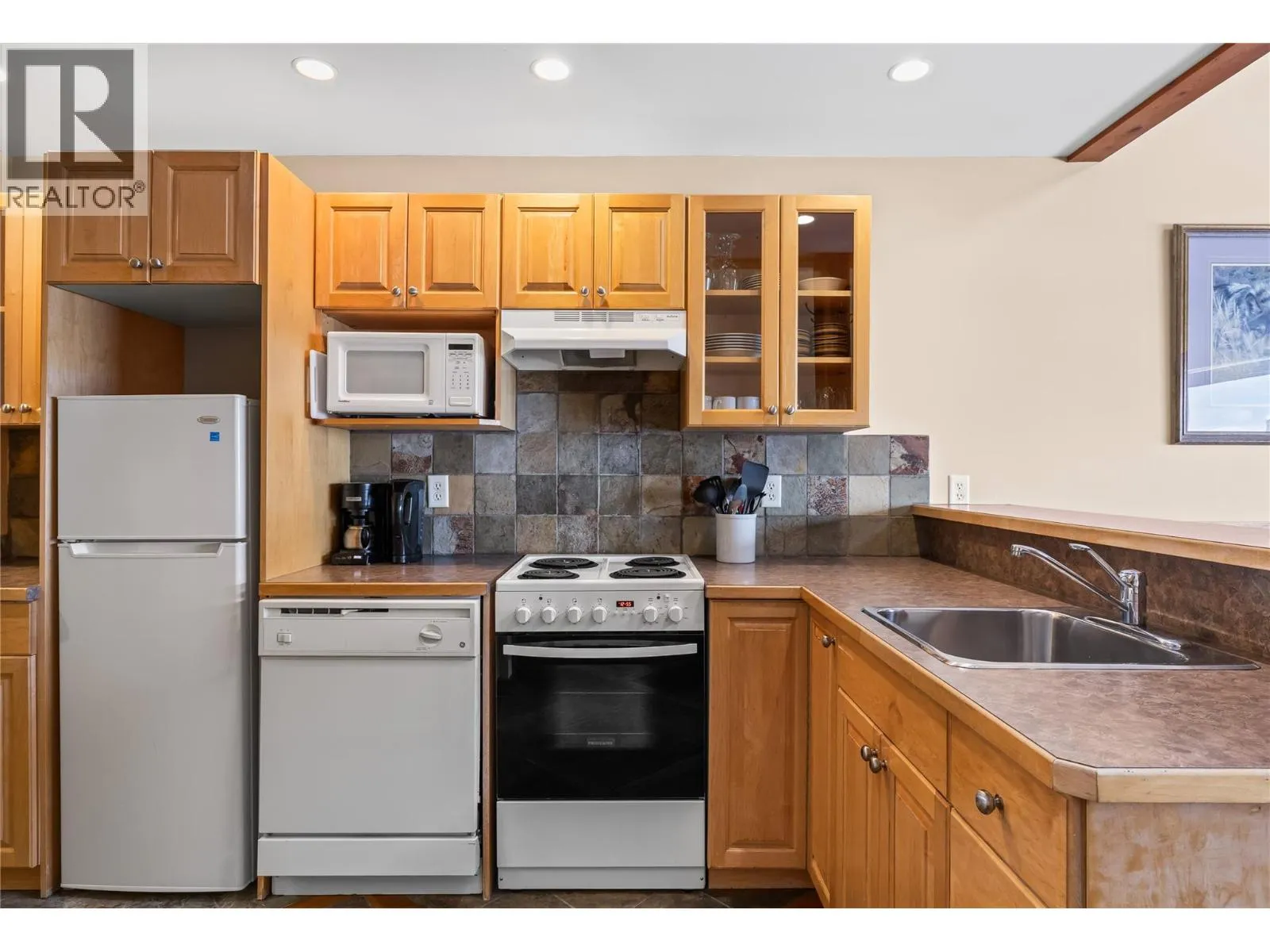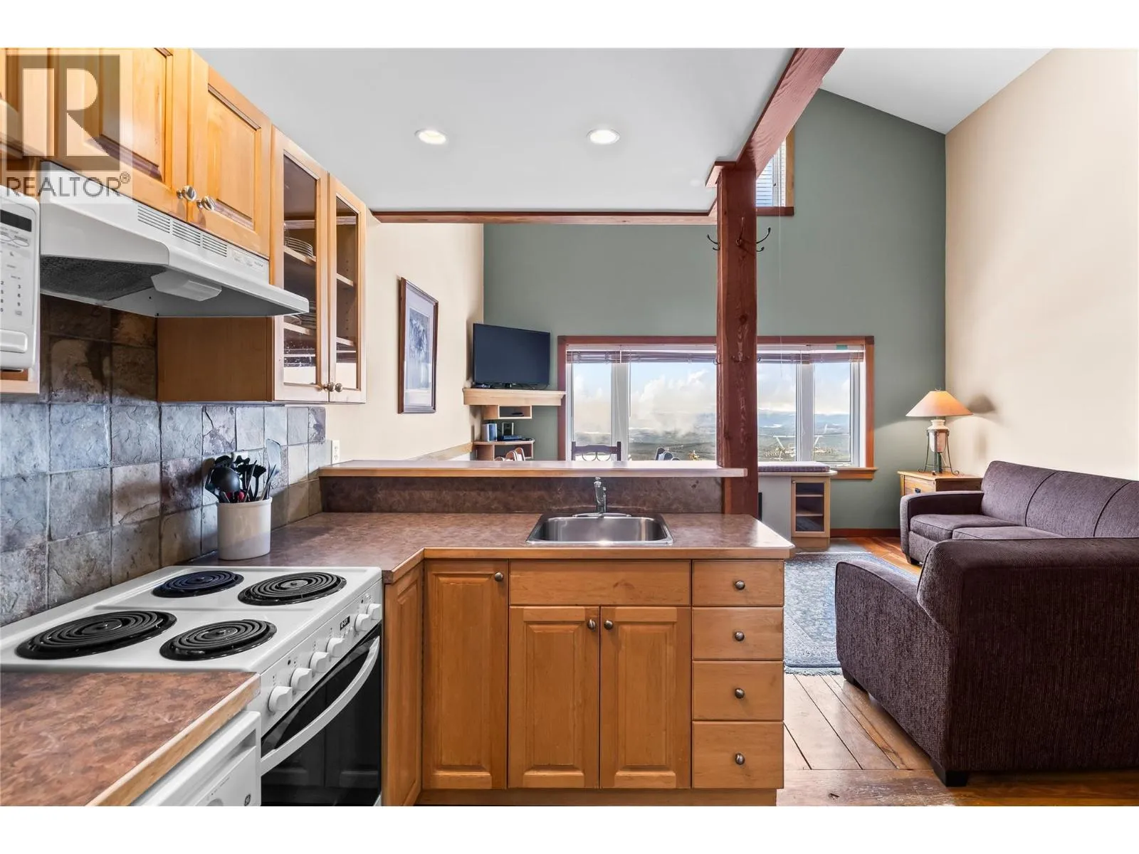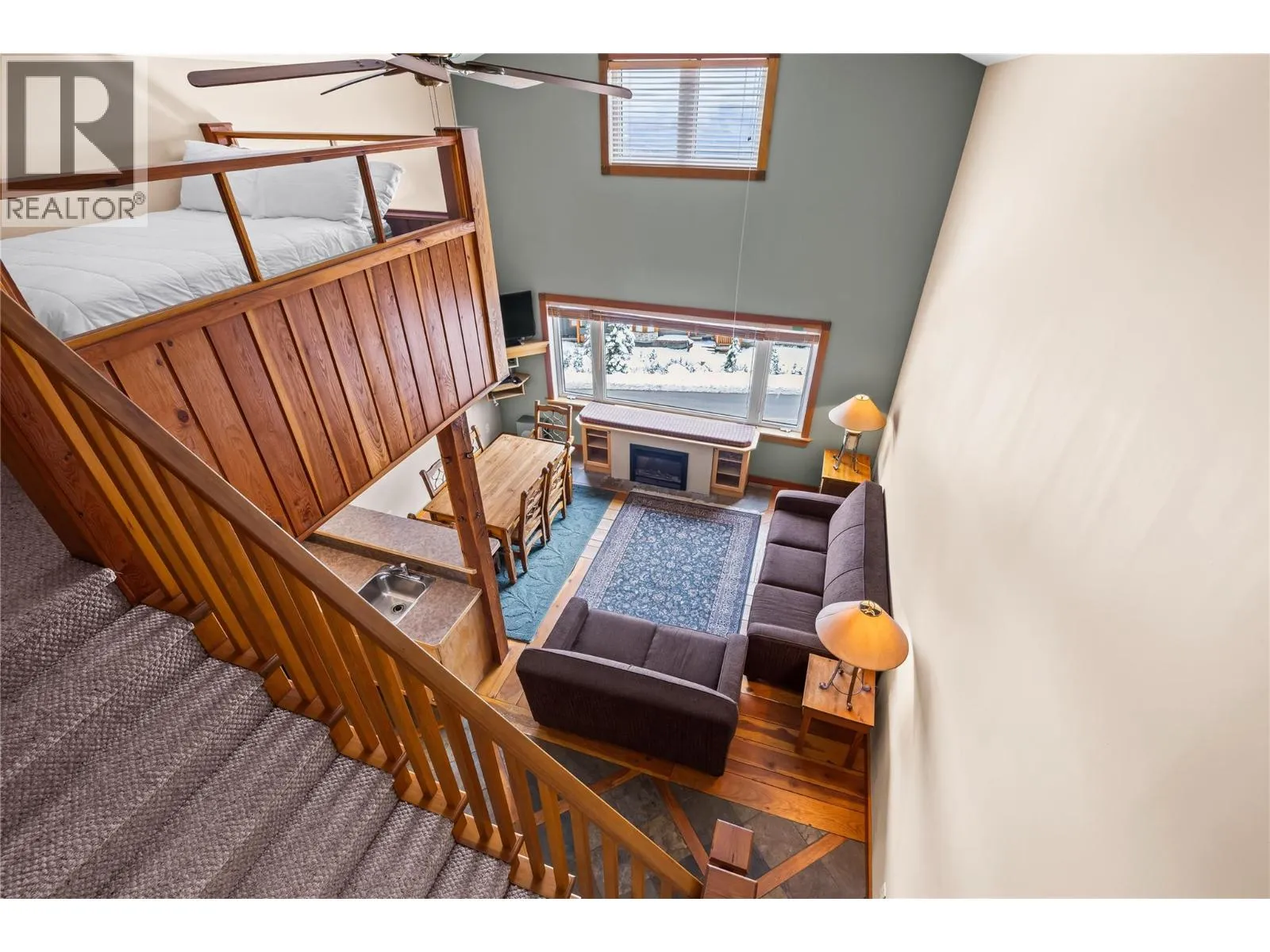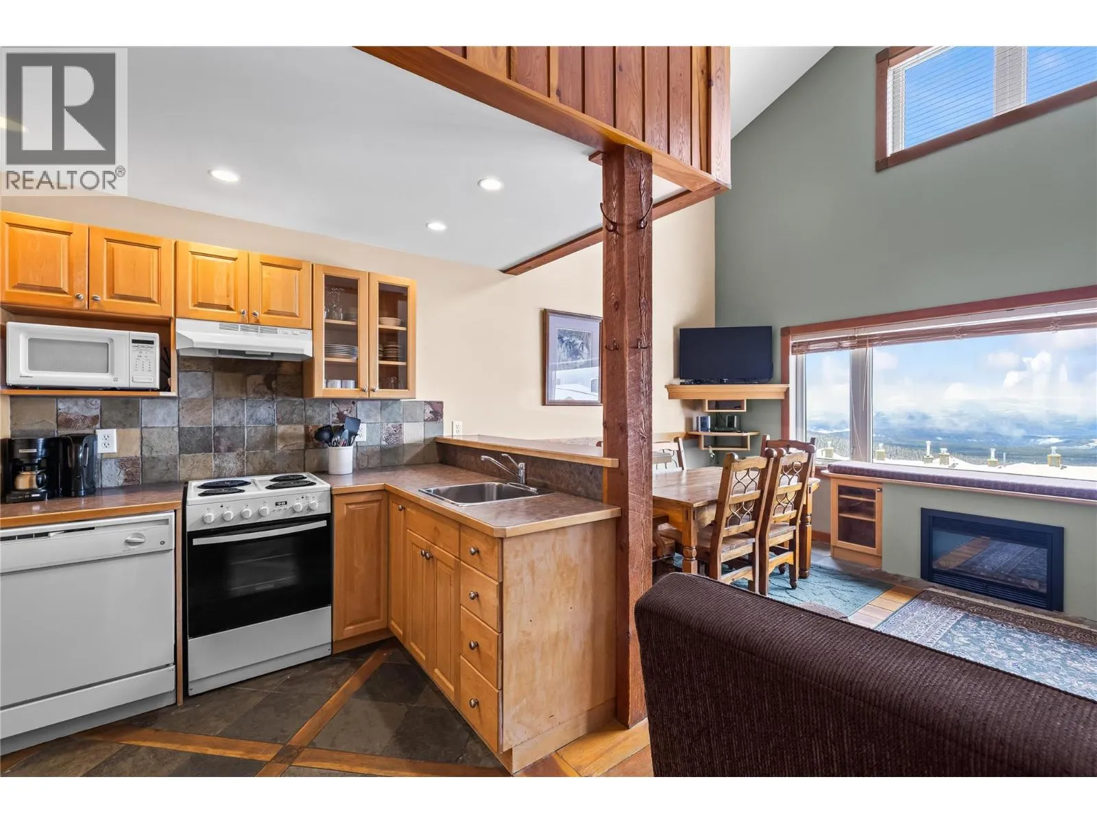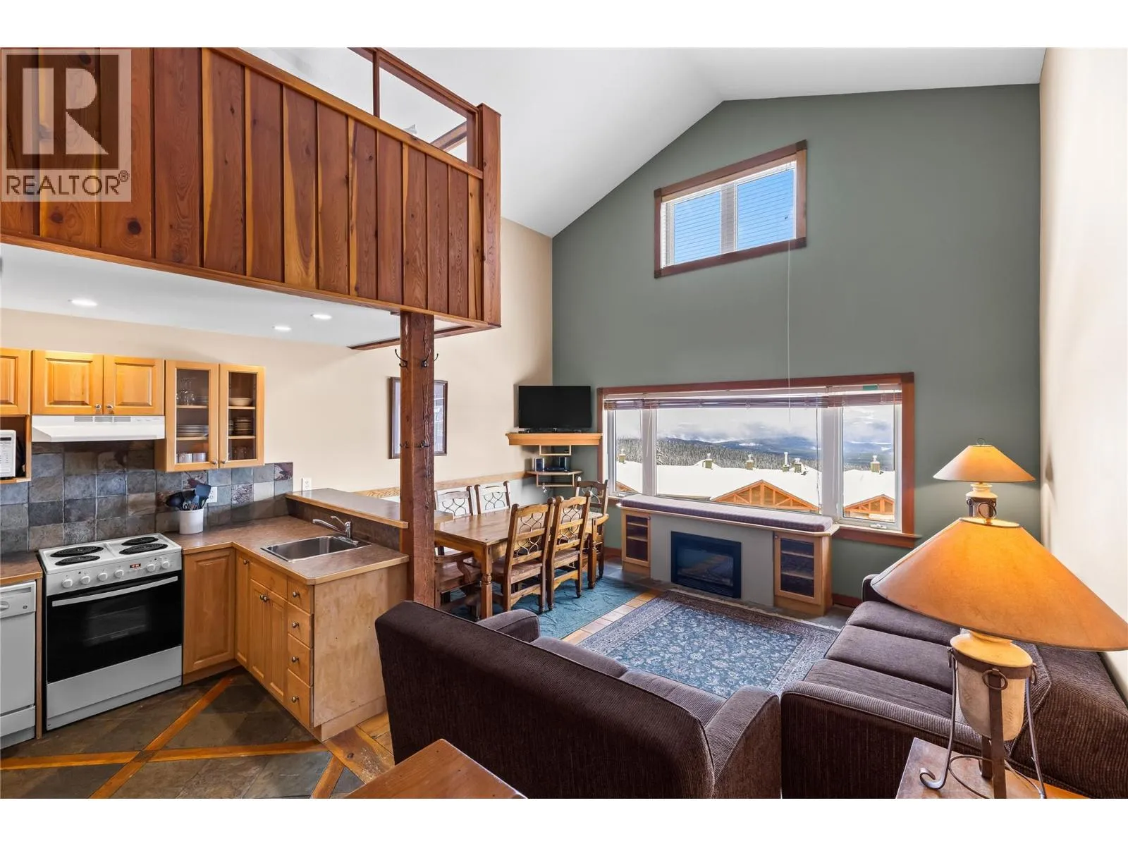 Welcome to your mountain getaway at The White Crystal Inn, perfectly situated in the heart of Big Whiteâs Village Centre. This spacious top-floor loft suite offers stunning, unobstructed views of the Monashee Mountainsâthe perfect spot to watch the fireworks and soak in the charm of Canadaâs most family-friendly ski resort. Comfortably sleeping up to six guests, the unit features a full kitchen with a dishwasher, a sit-up breakfast bar, and a dining area ideal for gathering after a day on the slopes. The living room boasts floor-to-ceiling windows, a cozy fireplace, and ample storage throughout. The building offers fantastic amenities including an outdoor hot tub, dry sauna, shared laundry, ski storage and secure underground parking. Enjoy true ski-in, ski-out convenienceâstep right onto the runs and glide back home at dayâs end. Just outside your door, experience the vibrant atmosphere of the village with restaurants, Cafeâs, apres ski night life all within steps. Whether youâre looking for a personal mountain retreat or a savvy investment, this unit is an excellent choice. Managed seamlessly through Big White Central Reservations, it provides an effortless way to maximize rental income while enjoying the ultimate mountain lifestyle. (id:27476)