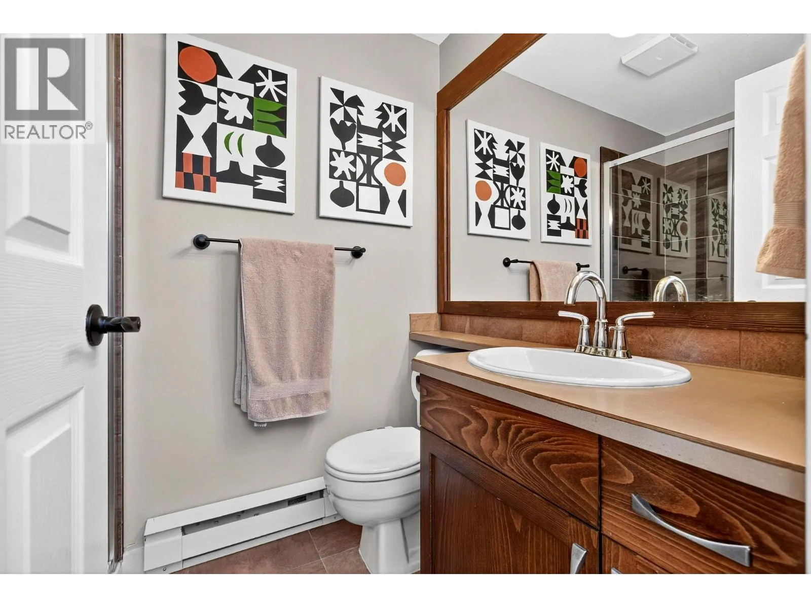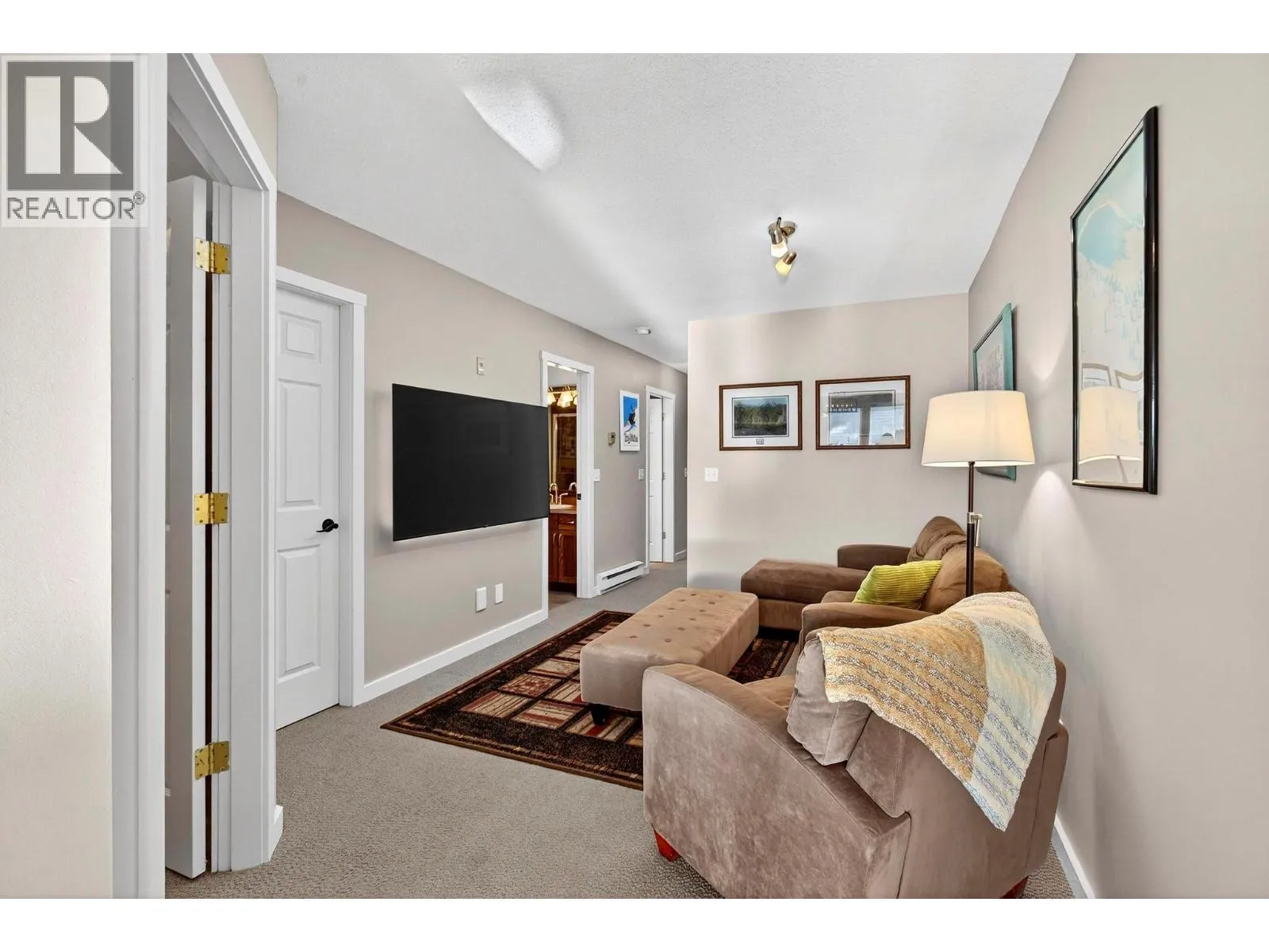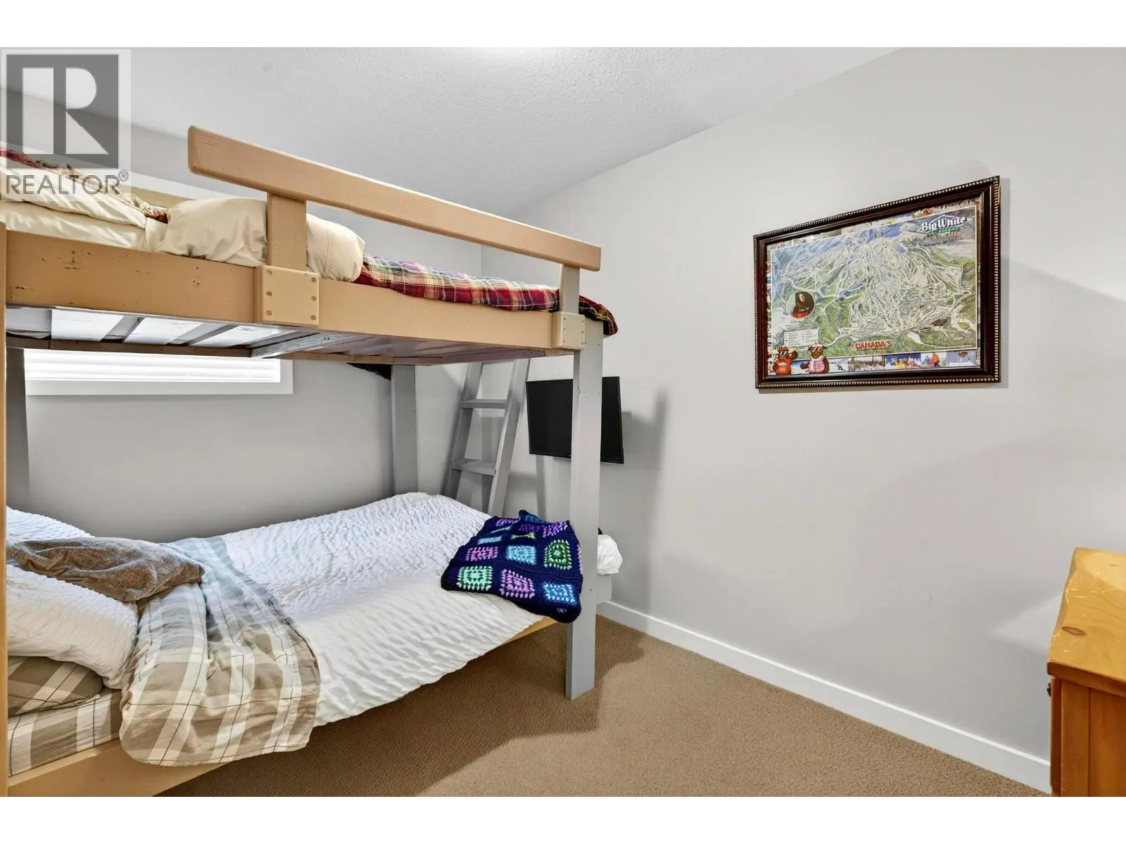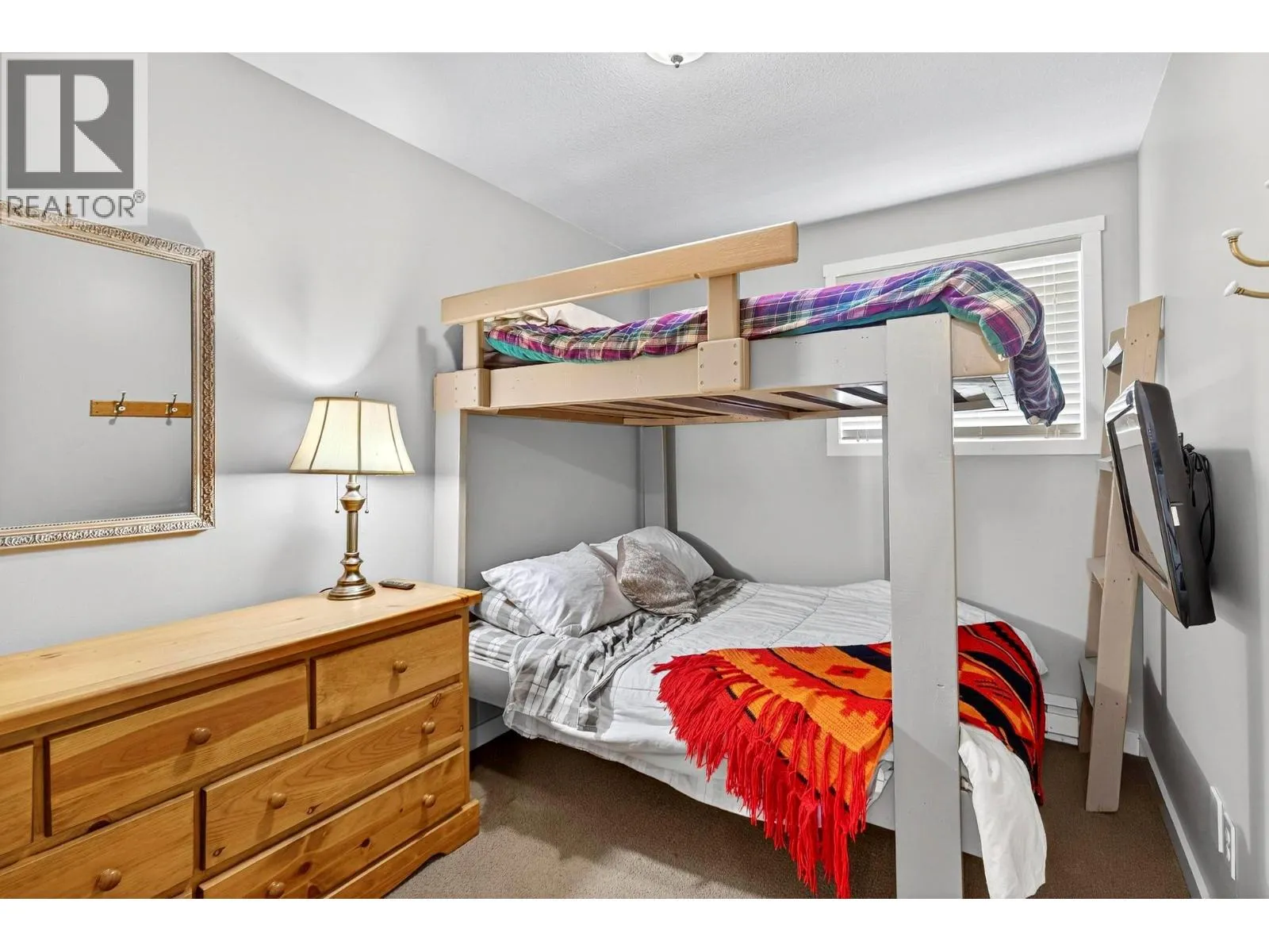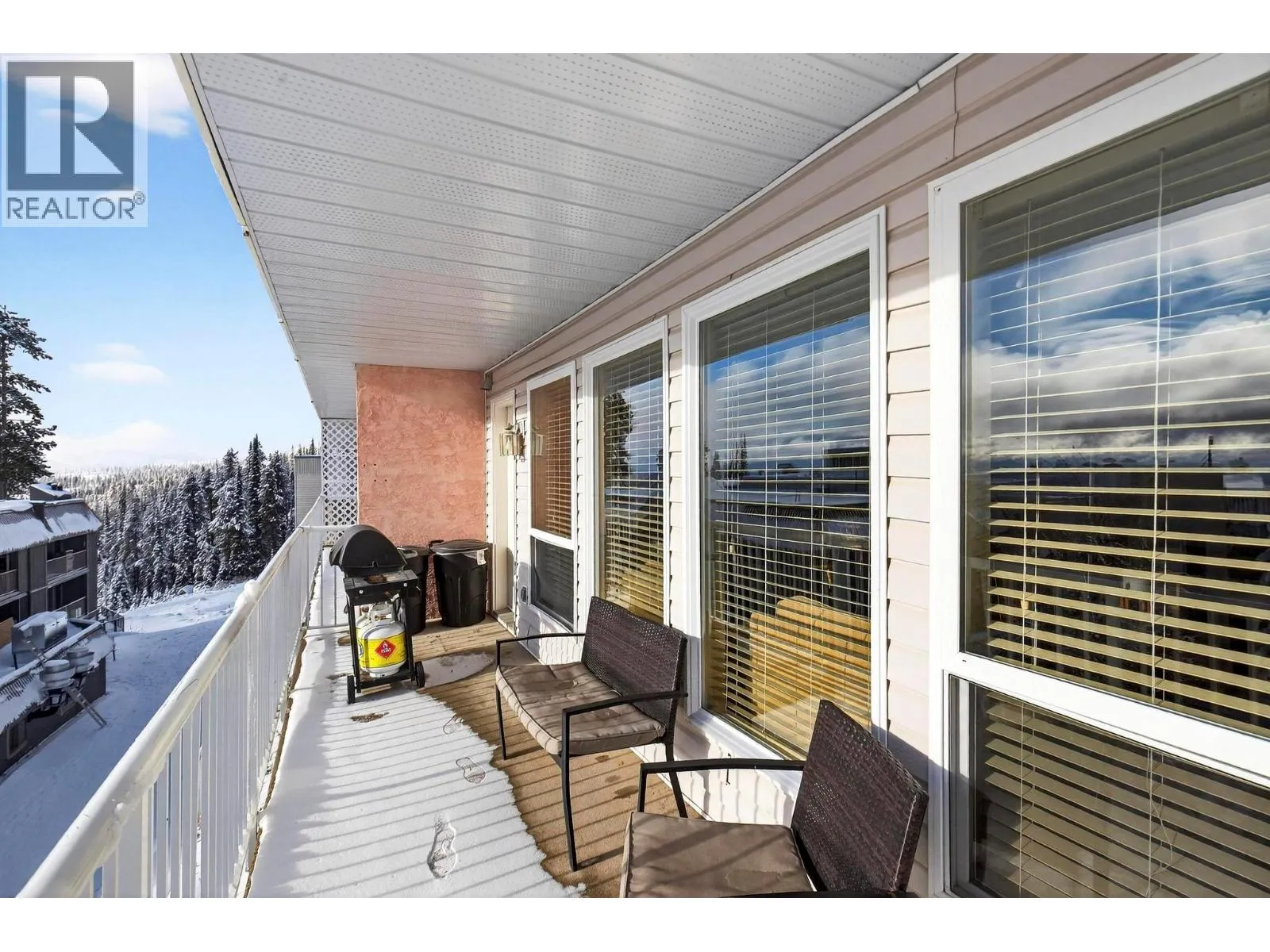 A warm and inviting mountain retreat perfectly designed for both personal enjoyment and short-term rental success. This beautifully updated condo is Airbnb-able, true ski-in/ski-out access, and shared hot tub amenities through the Winter Ridge strata partnership. Step into a bright, open living space flooded with natural light from the wall of west-facing windows. The spacious layout features rich wood flooring, charming mountain decor, and a cozy gas fireplace set into a stunning river-rock surround, creating the perfect apres-ski atmosphere. The dining area comfortably hosts large groups, making this an ideal space for families and guests. The kitchen has stainless steel appliances, warm wood cabinetry, a generous peninsula with bar seating, and plenty of prep space. Whether you're cooking for guests or hosting friends, the flow of this kitchen-to-living space feels effortless. From the living room, step out onto the private deck and take in the expansive mountain and valley views, a true Big White highlight. This is the perfect spot for morning coffee or watching the sun set over the snow-covered rooftops. The bedroom is spacious and comfortable with good storage, and the unit includes a well-kept bathroom and convenient in-suite laundry. Located just minutes from the Village, this complex sits in a quiet, elevated area with excellent ski access. (id:27476)