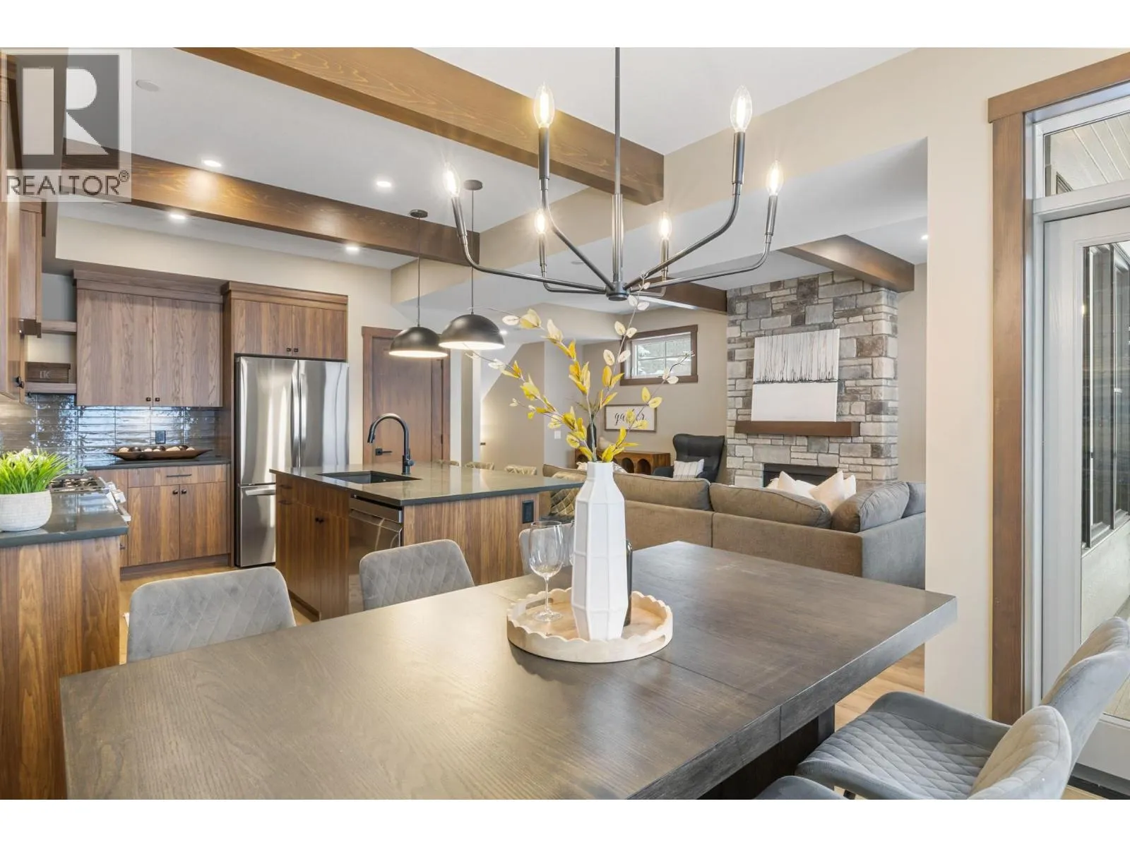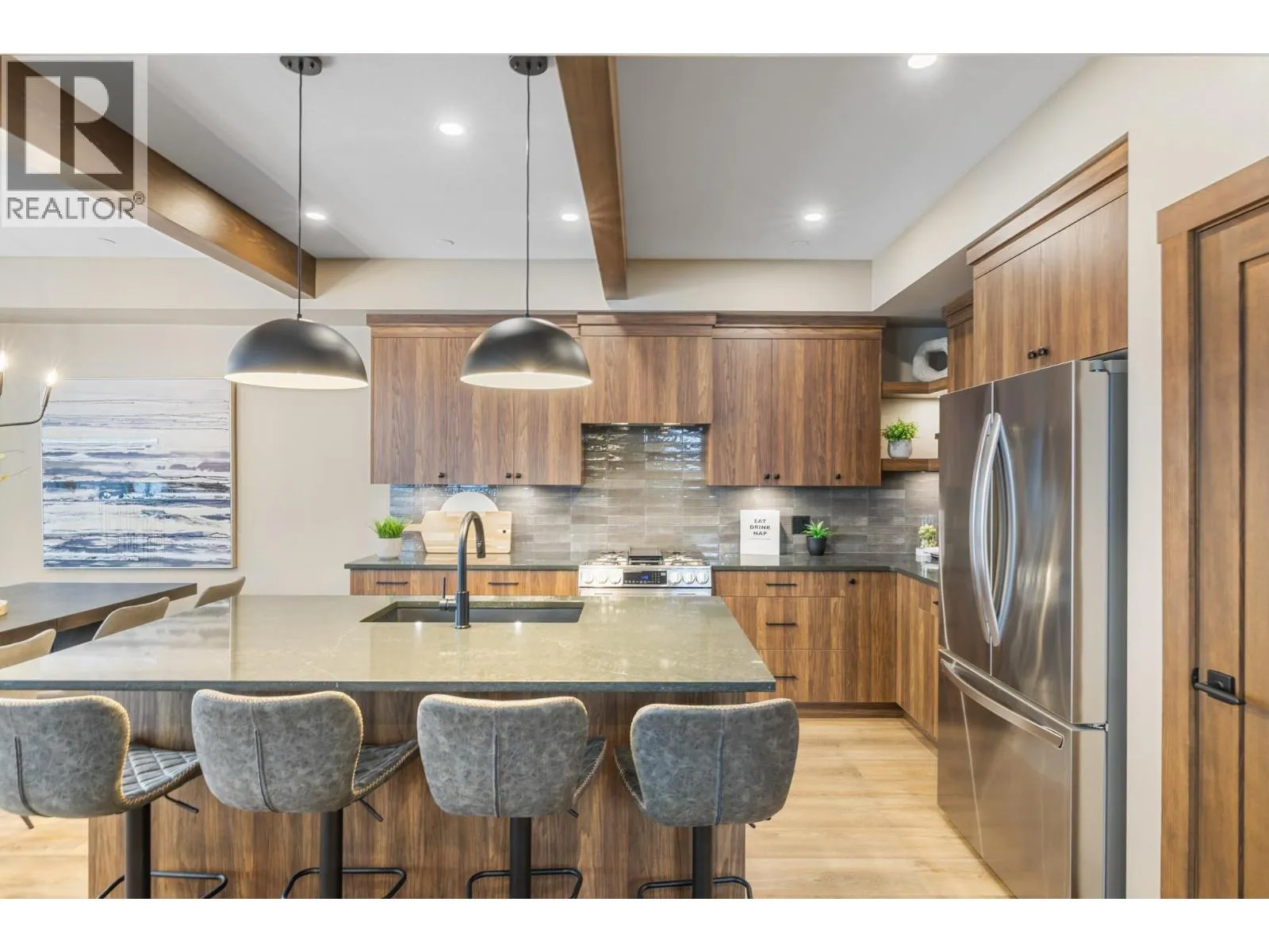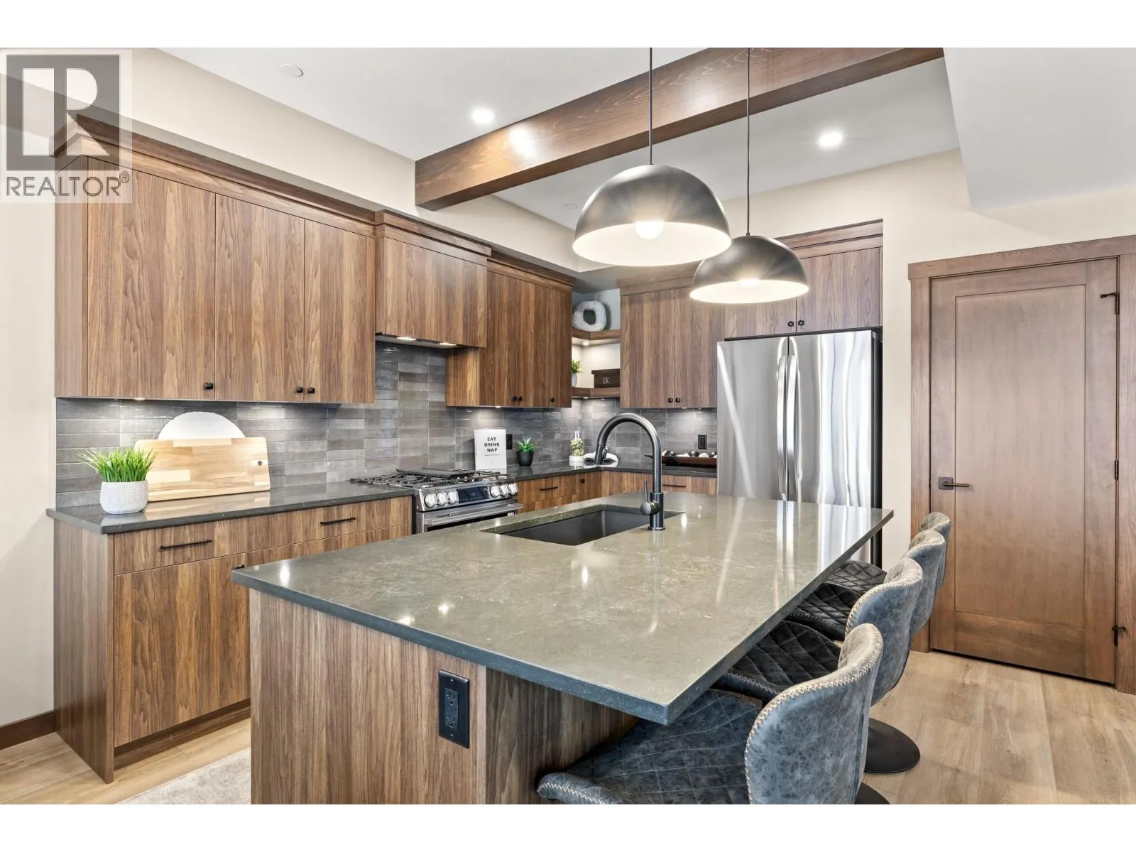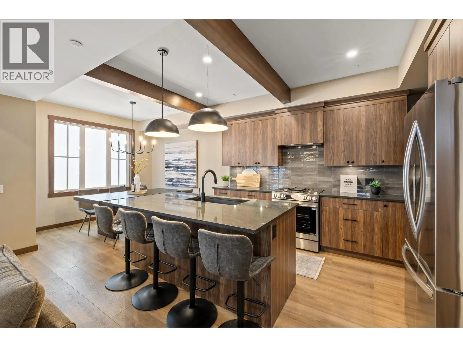 Crafted by H&H Custom Homesâhonoured as Okanagan Builder of the Yearâ255 Feathertop Way showcases Big Whiteâs newest ski-in/ski-out residences within the coveted Sundance Resort. Designed for effortless mountain living, these homes sit directly along the slopes with instant access to both the Bullet Express and Black Forest chairlifts, while the vibrant Village Centre is only a short walk away. The exterior blends modern craftsman styling with board-and-batten detailing, black metal windows, warm timber features, and sweeping mountain views. Offering 2,490 sq. ft. of thoughtfully planned space, each home includes 3 bedrooms, 3 bathrooms, a den, and an oversized lock-off storage room. The main level features a bright, open-concept kitchen and living area that extends to a covered deck equipped with a hot tub and gas BBQ hookupâperfect for four-season use. Each residence also comes with a versatile 590 sq. ft. legal suite with its own entrance, covered patio, full kitchen, in-suite laundry, luxury vinyl plank flooring, upgraded soundproofing, and the option to add a garage. Sundanceâs strata fees include building insurance, exterior maintenance, garbage and recycling, snow removal, plus access to the resort shuttle, heated outdoor pool with slide, several hot tubs, and indoor amenity spaces. Estimated completion is set for December 2025. (id:27476)