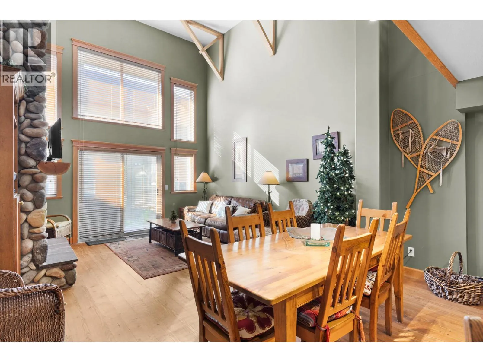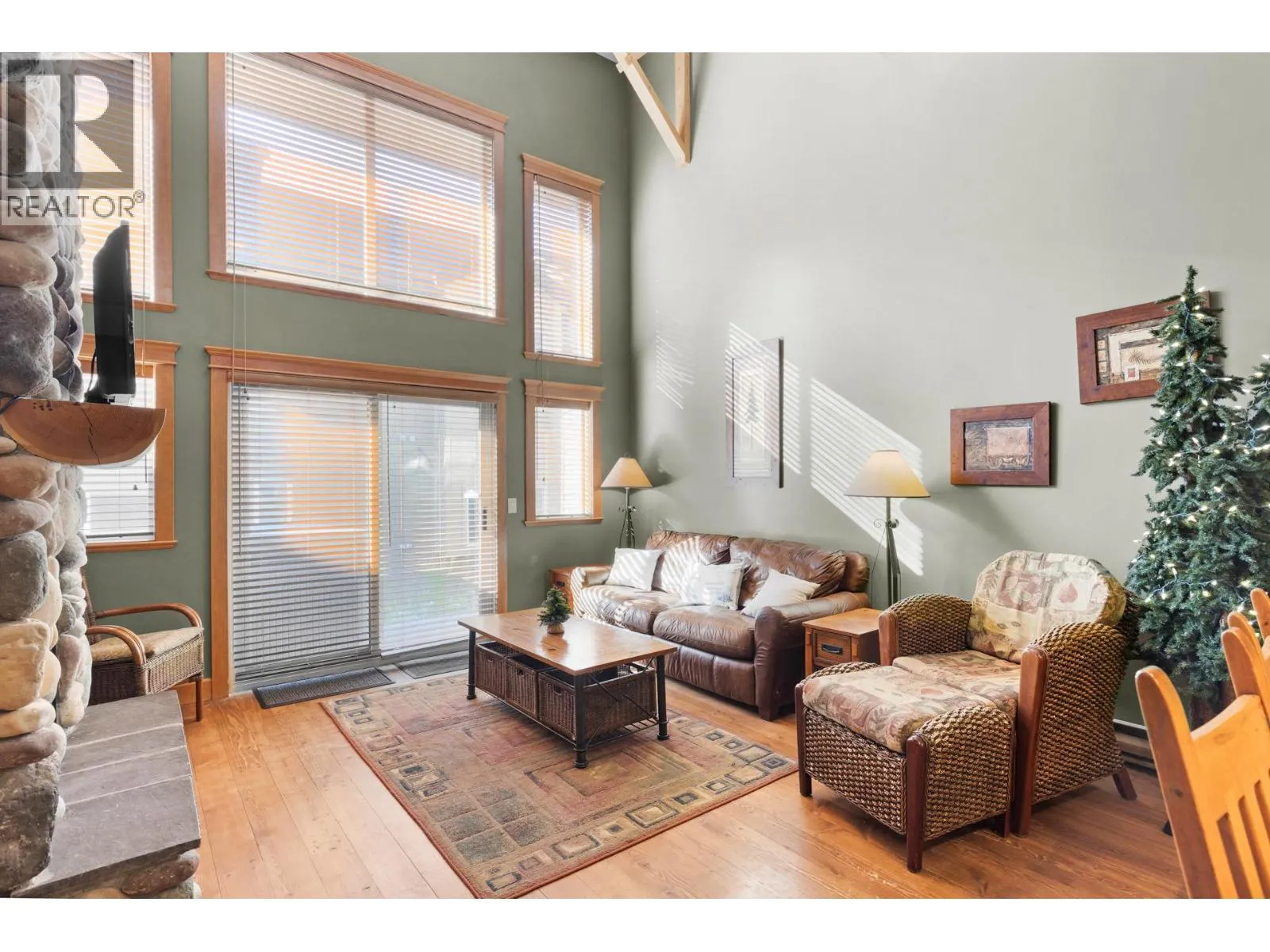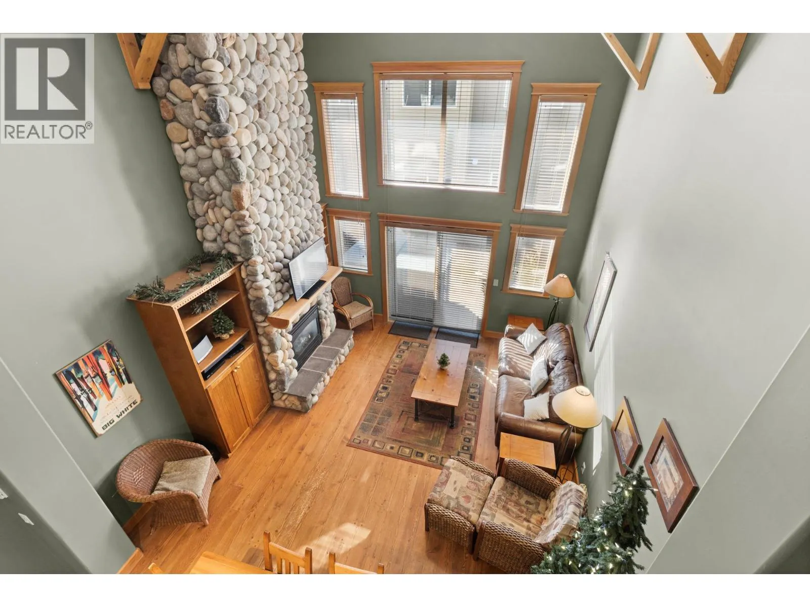 Welcome to Tree Tops, one of Big Whiteâs most sought-after developments offering true ski-in/ski-out convenience via the Mogul Cat Track. This 2 Bed/3 Bath townhome combines mountain charm with modern comfort, making it the perfect getaway for family, friends, or rental guests. Step inside to an airy, open-concept layout highlighted by soaring ceilings & abundance of natural light. The main living area features a stunning floor-to-ceiling river-rock fireplace surrounded by custom built-insâthe ideal centerpiece for cozy evenings after a day on the slopes. Just off the living room, youâll find your private hot tub, a perfect spot to unwind under the stars. The large kitchen is designed for entertaining with shaker cabinetry, a sit-up island, and plenty of prep space. A versatile loft overlooks the living area, providing a fun hangout for kids and includes a sofa bed for extra sleeping accommodations. Upstairs, both bedrooms offer private ensuites, while one also includes a flex/den space that can easily be used as an additional sleeping area. With a variety of flexible layouts, this home is well-suited to host multiple families or groups. The timeless design blends rich tones, wood accents, & a cozy mountain feel throughout. Additional conveniences include a covered parking stall directly across from the unit & two storage lockers-one for owners and one for guests. This turnkey property is equally perfect as your personal mountain retreat or a high-demand rental investment! (id:27476)