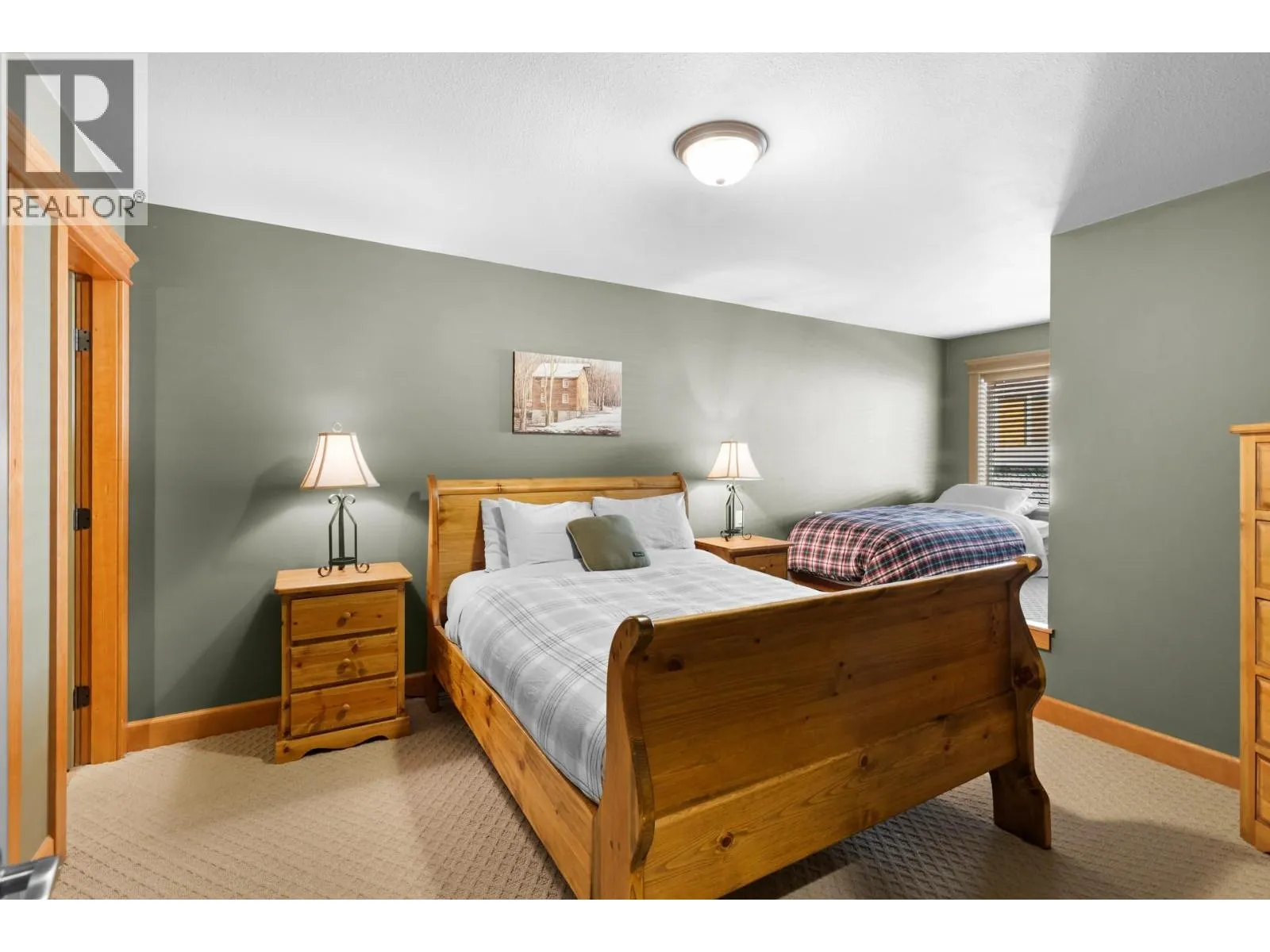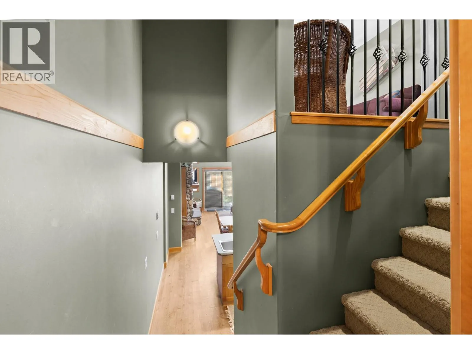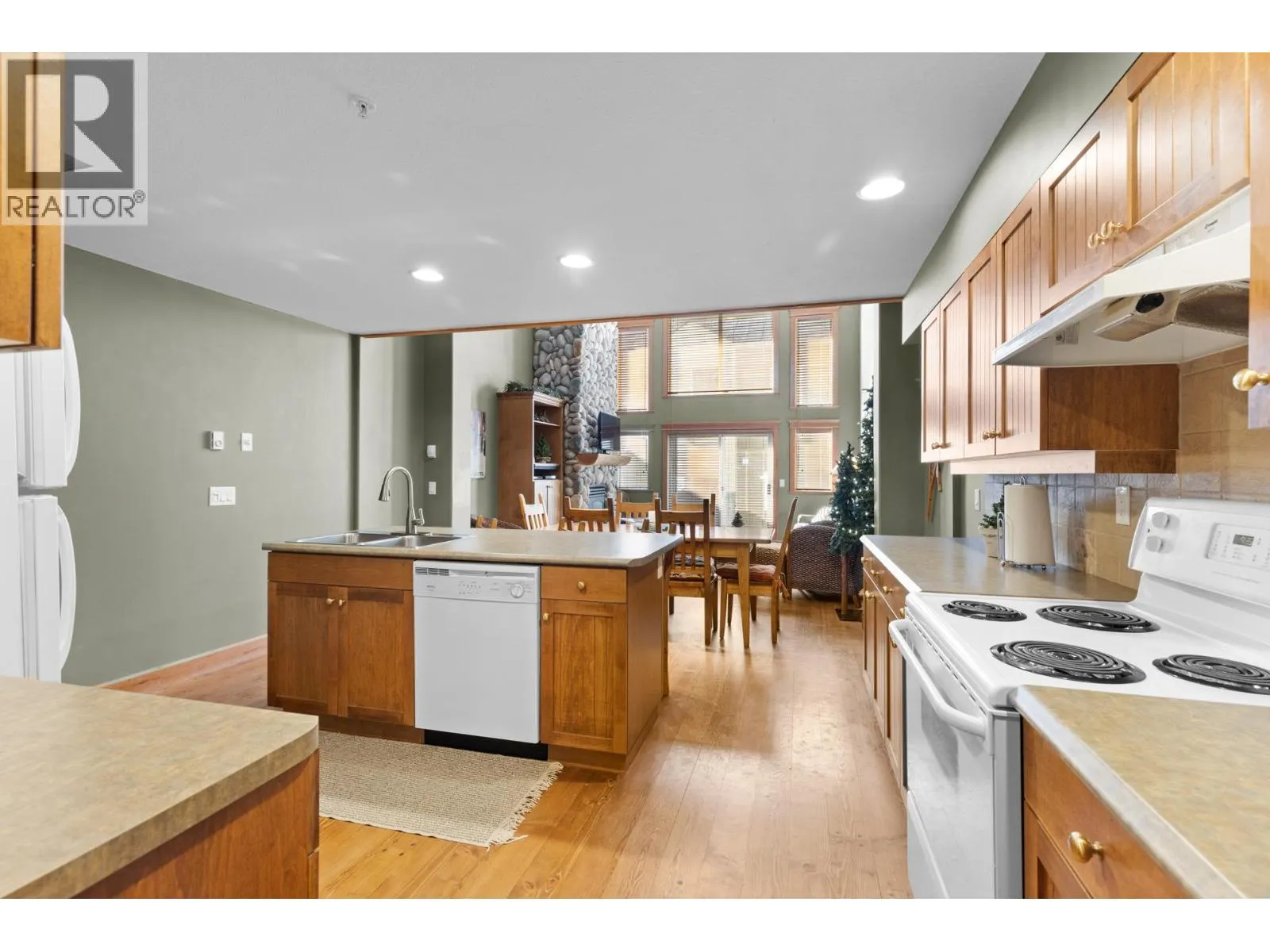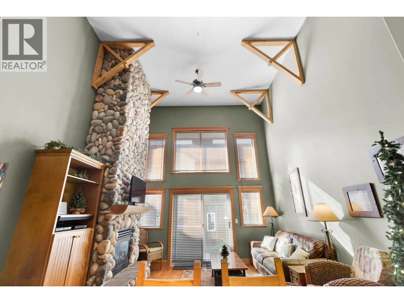 Welcome to Tree Tops, one of Big Whiteâs most sought-after developments offering true ski-in/ski-out convenience via the Mogul Cat Track. This 2 Bed/3 Bath townhome combines mountain charm with modern comfort, making it the perfect getaway for family, friends, or rental guests. Step inside to an airy, open-concept layout highlighted by soaring ceilings & abundance of natural light. The main living area features a stunning floor-to-ceiling river-rock fireplace surrounded by custom built-insâthe ideal centerpiece for cozy evenings after a day on the slopes. Just off the living room, youâll find your private hot tub, a perfect spot to unwind under the stars. The large kitchen is designed for entertaining with shaker cabinetry, a sit-up island, and plenty of prep space. A versatile loft overlooks the living area, providing a fun hangout for kids and includes a sofa bed for extra sleeping accommodations. Upstairs, both bedrooms offer private ensuites, while one also includes a flex/den space that can easily be used as an additional sleeping area. With a variety of flexible layouts, this home is well-suited to host multiple families or groups. The timeless design blends rich tones, wood accents, & a cozy mountain feel throughout. Additional conveniences include a covered parking stall directly across from the unit & two storage lockers-one for owners and one for guests. This turnkey property is equally perfect as your personal mountain retreat or a high-demand rental investment! (id:27476)