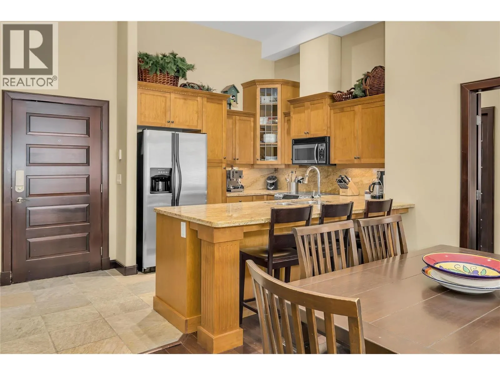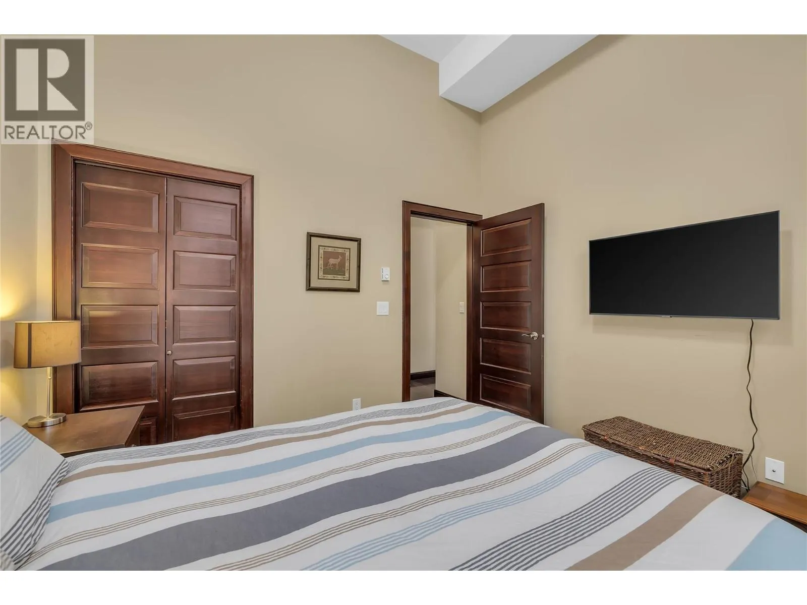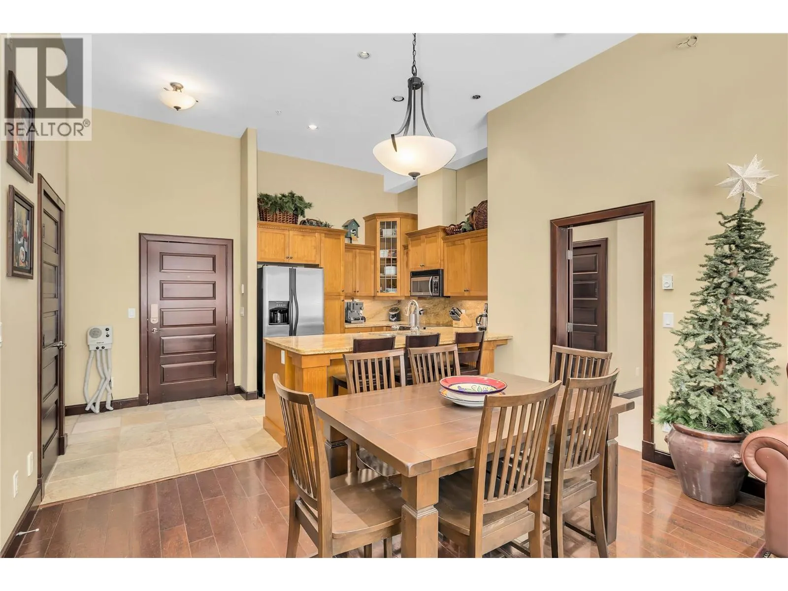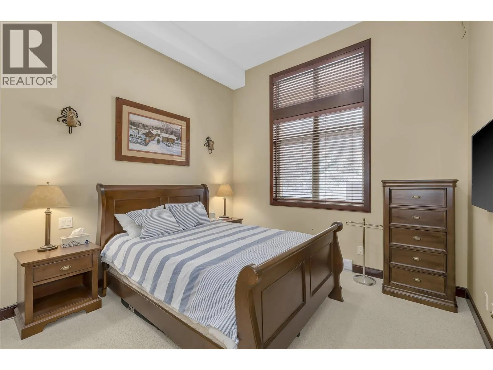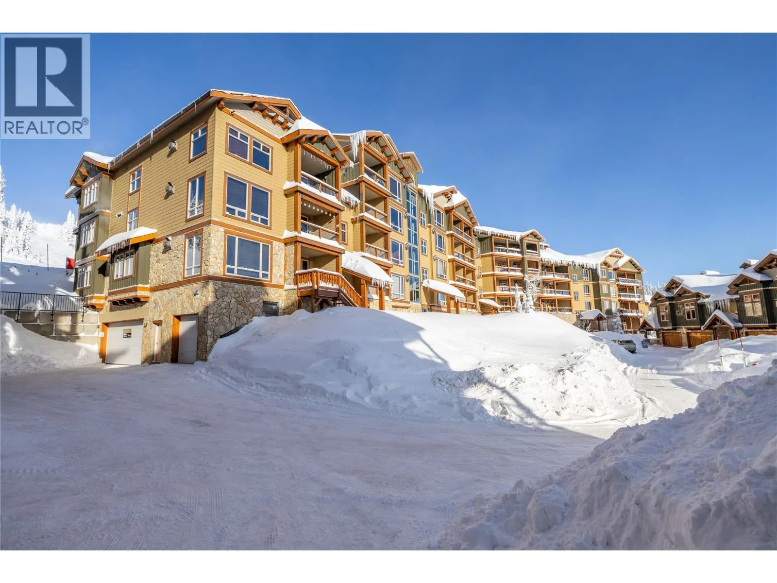 This beautifully appointed three bedroom, two bathroom condo boasts twelve foot ceilings and is fully furnished with exquisite furniture and decor, creating a cozy and inviting mountain retreat. Turn-key and year to go for this winter season. Located directly on the ""Sun Run"" with unbeatable ski access to four major chairlifts. Relax on your covered deck with a private hot tub overlooking the slopes, offering the perfect spot to unwind after a day on the mountain. Additional features include underground parking, making it easy to arrive and hit the slopes, in-unit laundry for added convenience, hardwood, granite, stainless appliances, maple cabinetry, beverage center with fridge, wine storage behind a custom iron gate, heated slate flooring in entryway and both bathrooms. GST paid and this unit has never been rented, it shows like new! Well run strata with full time building manager year round. Donât miss this opportunity to own a piece of Big Whiteâs finest ski-in/ski-out real estate! With direct flights from cities like Los Angeles, Toronto, and Montreal, and just an hour from Kelowna International Airport, Big White is more accessible than ever. Known for some of the best snow in North America, this resort offers a winter wonderland experience. Best of all, this property is fully exempt from the Foreign Buyer Ban, Foreign Buyers Tax, Speculation Tax, Empty Home Tax, and Short-Term Rental Ban, providing a rare opportunity for international buyers. LIVE WHERE YOU PLAY! (id:27476)