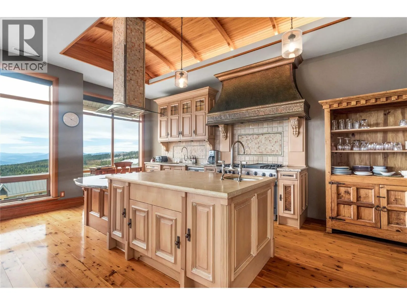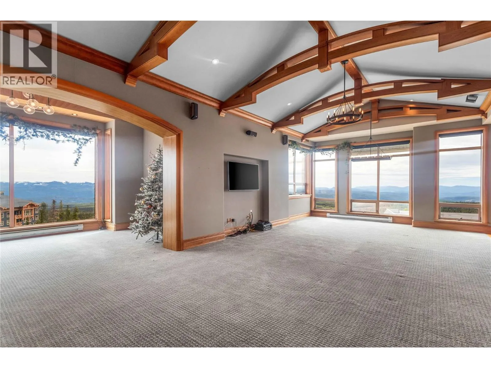 Located in the absolute best position at Big White Ski Resort, this exceptional top-floor, corner residence at Chateau Big White offers a location and view that are unmatched and truly unrivaled. Situated directly above the Plaza unload ramp in the heart of the Village, the condo enjoys spectacular panoramic views of the Monashee Mountains, ski runs, Main Village, and the resortâs iconic fireworksâviews that cannot be duplicated anywhere else. Purpose-built for the original owner/developer, this 3,500+ sq ft residence is one of the largest condo units at Big White. Floor-to-ceiling windows flood the home with light and showcase the resortâs most dynamic vantage point. The chefâs kitchen features a Wolf griddle, 48â Ultraline/Viking gas range with double ovens, and a Sub-Zero refrigerator. With four bedrooms and four bathrooms, including an oversized primary suite with a massive ensuite and walk-in closet, the layout comfortably accommodates family and guests. Two wood-burning fireplaces create a warm alpine atmosphere, and this is the only pet-permitted unit in the building. Included is 1,180 sq ft of strata lot in Parkade 1, currently configured as three parking stalls and 665 sq ft of storage, with flexibility for alternative uses. Offering true ski-in/ski-out access and immediate Village amenities, this is a rare opportunity to own the premier condo at Big White. (id:27476)