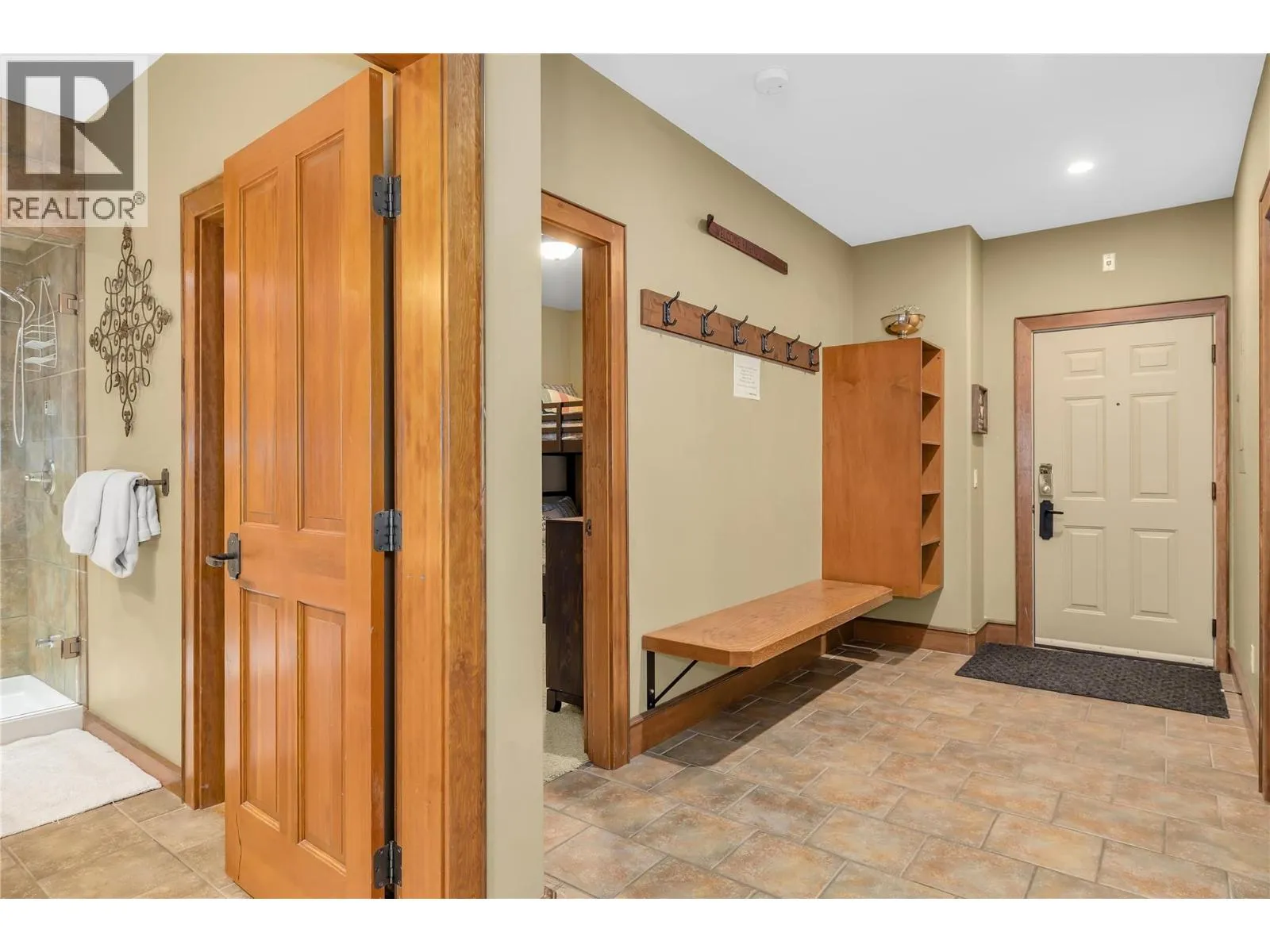 Welcome to your dream mountain retreat in the heart of Happy Valley! This beautiful two bedroom, two bathroom main floor unit offers an unparalleled living experience with stunning features and amenities. As you step into this fully furnished haven, you'll be greeted by breathtaking views of the Monashees, right from the comfort of your private hot tub. The attached heated garage ensures convenience and warmth during the snowy winter months, and the large island kitchen, adorned with tile counters and a built-in wine rack, is a chef's delight. The attention to detail is evident with custom spyglass hardware and geothermal heated floors throughout. Cozy up by the fireplace in the spacious living area, equipped with stainless steel appliances and a washer and dryer for your convenience. This property boasts a private entrance, ensuring a sense of exclusivity and seclusion. With close proximity to the gondola, tube park, skating rink, local school, snowmobiling trails, helicopter rides, and cross-country skiing, there's never a dull moment. The great ski in/out access adds to the appeal for winter sports enthusiasts. Immerse yourself in the Happy Valley lifestyle, with the added excitement of a ""proposed"" golf course nearby. Whether you're seeking adventure on the slopes or tranquility in a scenic setting, this property offers the perfect blend of both. Exempt from Foreign Buyer Ban, Foreign buyers tax, speculation tax, empty home tax, and short term rental ban. (id:27476)