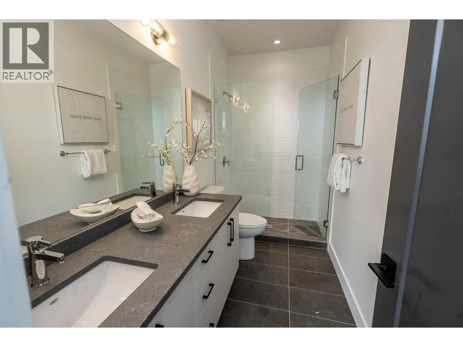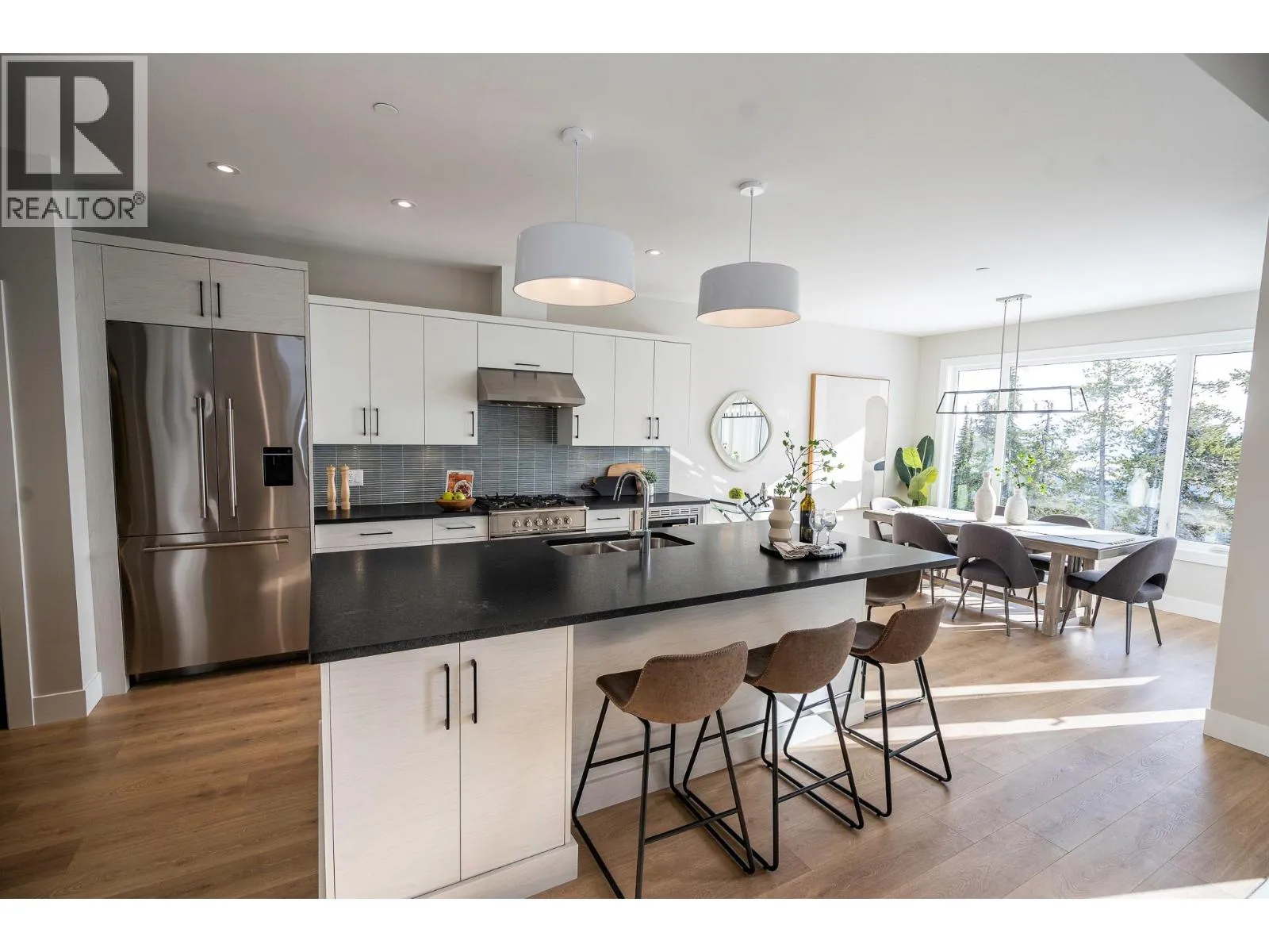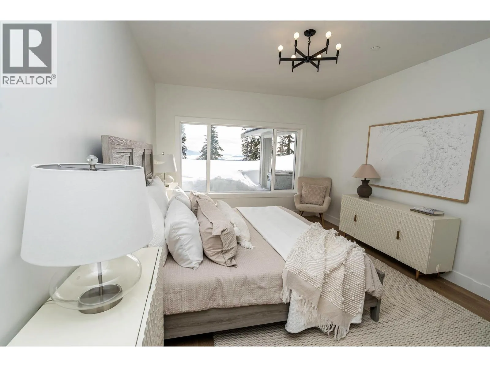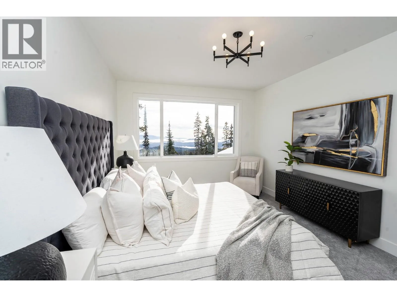 LAST REMAINING UNIT - DON'T MISS YOUR CHANCE!! This stunning, custom-designed home sits on a quiet cul-de-sac and showcase breathtaking, unobstructed views of the Monashee Mountains. Inside, youâll love the open, thoughtful layout and high-end finishes throughout. The main level features a sleek chefâs kitchen, a spacious living room with vaulted cedar ceilings and stone fireplace, a dining area, and access to the covered deck with with gas BBQ hook ups.. The next level below offers three bedrooms, including a primary suite with 4-piece ensuite and walk-in closet, plus a full bathroom and laundry. The walkout basement expands the living space with a second primary suite, a den/flex room, large rec room with wet bar and fireplace, an additional full bathroom, and a private patio featuring an INCLUDED hot tub - a perfect place to unwind after a day on the slopes. With low strata fees, no rental restrictions, allowance for 2 pets, a double garage, and all appliances included, this is the ultimate mountain retreat or income property. This home is now fully complete and ready for immediate occupancy, so you can enjoy the remainder of the ski season at beautiful Big White! (id:27476)
