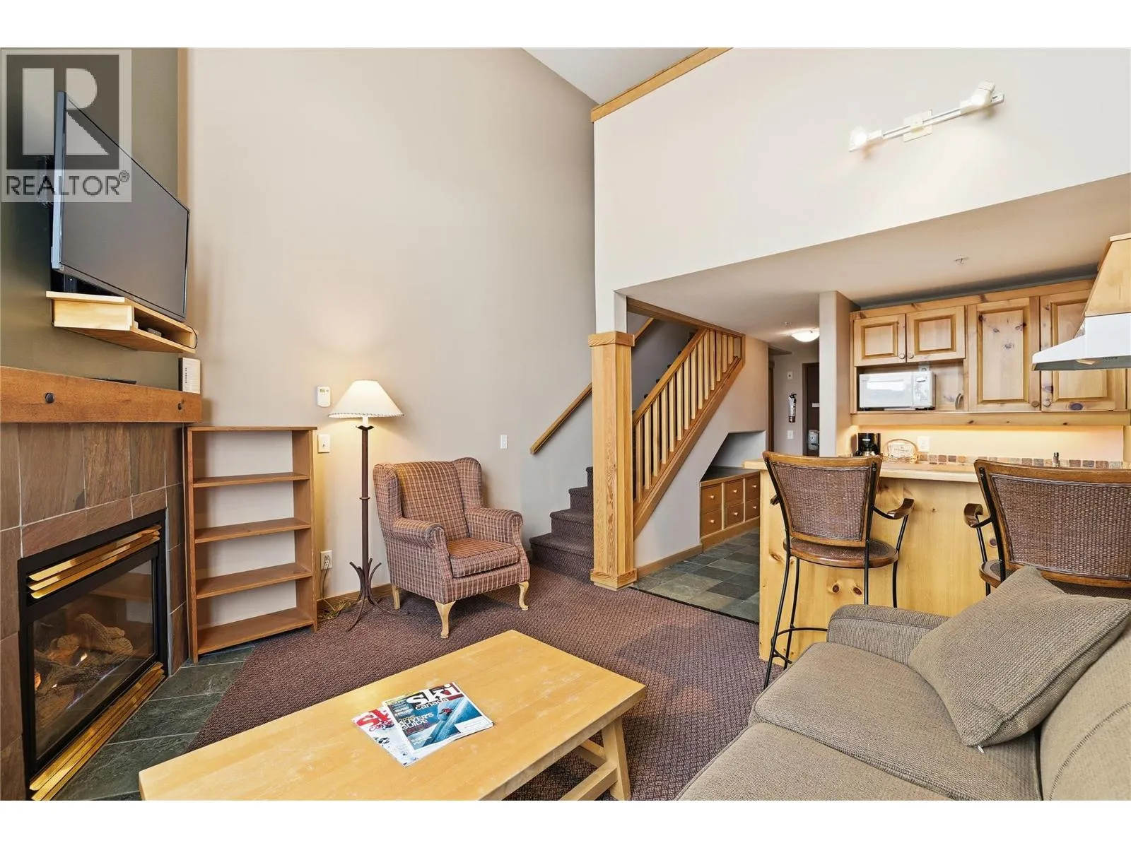 Experience the best of Big White from this prime village location at Chateau Big White. Just steps from shops and restaurants, you can also ski directly from your front door to the Plaza Chair for effortless access to the slopes. This one-bedroom loft offers a spacious feel at an affordable price point. Featuring vaulted ceilings and a cozy fireplace, itâs an inviting retreatâperfect as a weekend getaway or an attractive rental investment. The building also offers convenient amenities including underground parking, secure ski and snowboard storage, and a shared hot tub to relax in after a day on the mountain. (id:27476)