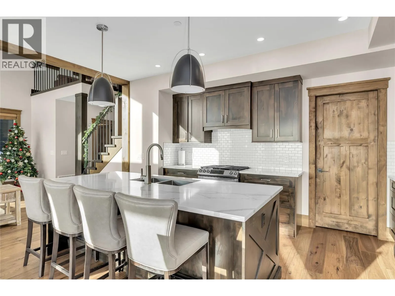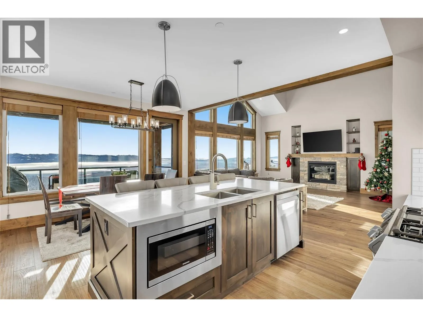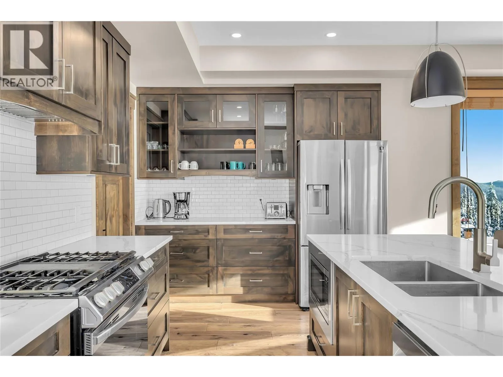 Discover the ultimate alpine escape at this exquisite, custom-built chalet nestled in the prestigious Feathertop Estates at Big White Ski Resort. With true ski-in, ski-out access right from your back door, youâre steps away from world-class slopes and breathtaking, unobstructed views of the Monashee Mountains. This is luxury mountain living at its finest, designed for the discerning traveler who values comfort, style, and unparalleled natural beauty. This four bedroom, three bathroom with a cozy loft, comfortably accommodates multiple families or groups, ensuring both privacy and communal gathering spaces. The open layout showcases impeccable craftsmanship and thoughtful design, with every detail centered around maximizing the captivating mountain vistas. The chaletâs kitchen is a chefâs dream, featuring a spacious island, pot filler, and premium appliancesâideal for creating memorable meals and hosting friends and family. Whether relaxing in the private hot tub under starlit skies, enjoying movie night in the custom theater, or unwinding in the fully furnished games room, every moment here is designed for relaxation and pleasure. The oversized, heated two-car garage fits two full-sized trucks and all your ski equipment, with ample driveway parking for additional vehicles. With easy access to Kelowna Airport, including direct flights from major cities like Montreal, Toronto, and Los Angeles, this Big White chalet is more than a vacation; itâs an investment in an extraordinary lifestyle. (id:27476)