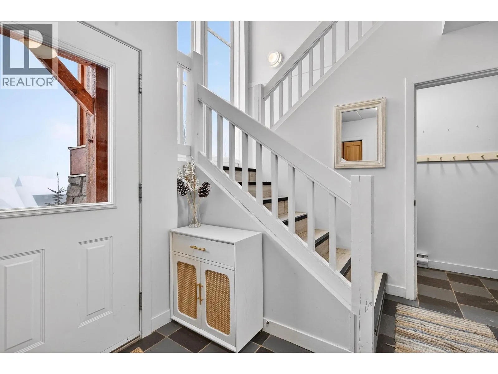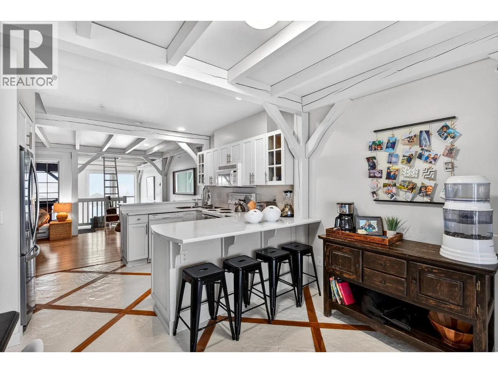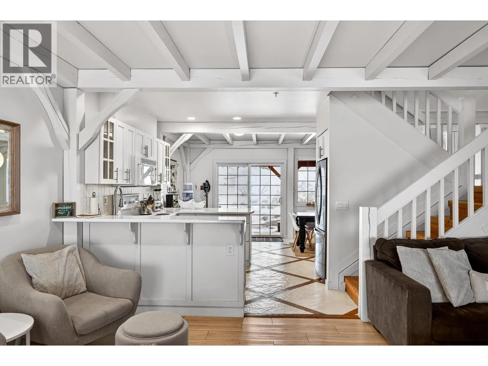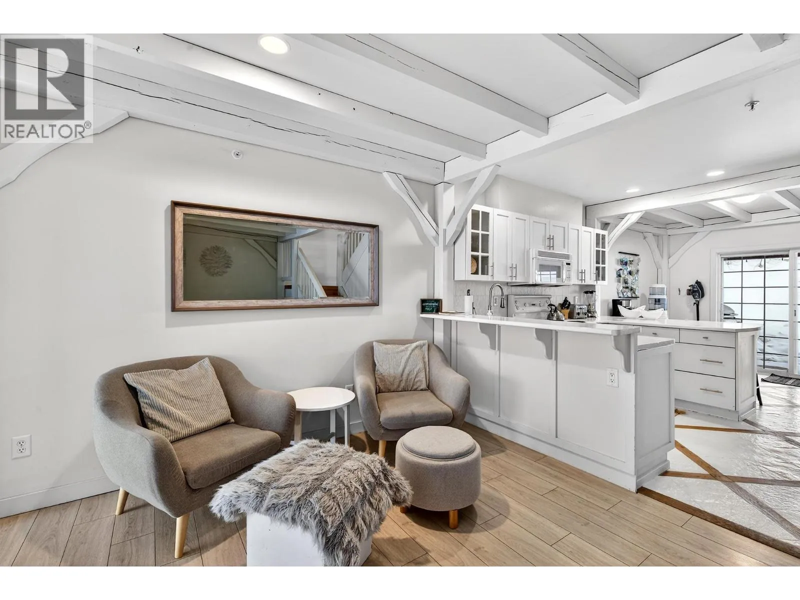 This stunning townhome at Black Bear II showcases exceptional post-and-beam architecture with a whitewashed finish that sets it apart from anything else on the mountain. Spanning three levels, this three bedroom, three bathroom home complete with a loft comfortably sleeps 8 to 16, making it ideal for families, friend groups, or savvy investors seeking strong rental revenue. The main floor is designed for gathering, featuring a cozy living room with gas fireplace, kitchen with dual breakfast bars, and a dining area that seats eight. Step outside to the covered ground-level patio perfect for the BBQ or head to the front balcony where a private hot tub awaits with sweeping views of the valley and surrounding mountain range. The upper levels offer an oversized primary suite, two additional generous bedrooms, and thoughtful storage throughout â including a spacious boot room at the entry, dedicated ski lockers, and owner lock-off storage for those who choose to rent. Two underground parking stalls are located directly in front of the unit door for seamless convenience. With effortless ski-in, ski-out access and just a short walk to the Village, this property delivers the complete Big White experience. Whether you're carving turns by day and unwinding in the hot tub by night, or maximizing your investment with rental income, this is a must-see mountain retreat. (id:27476)
