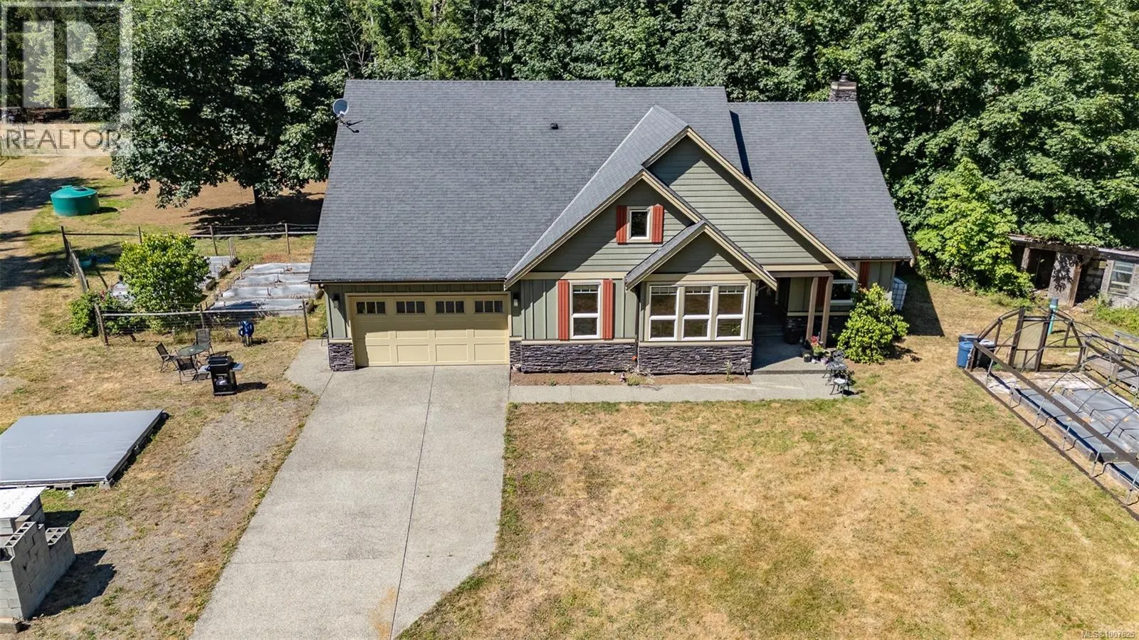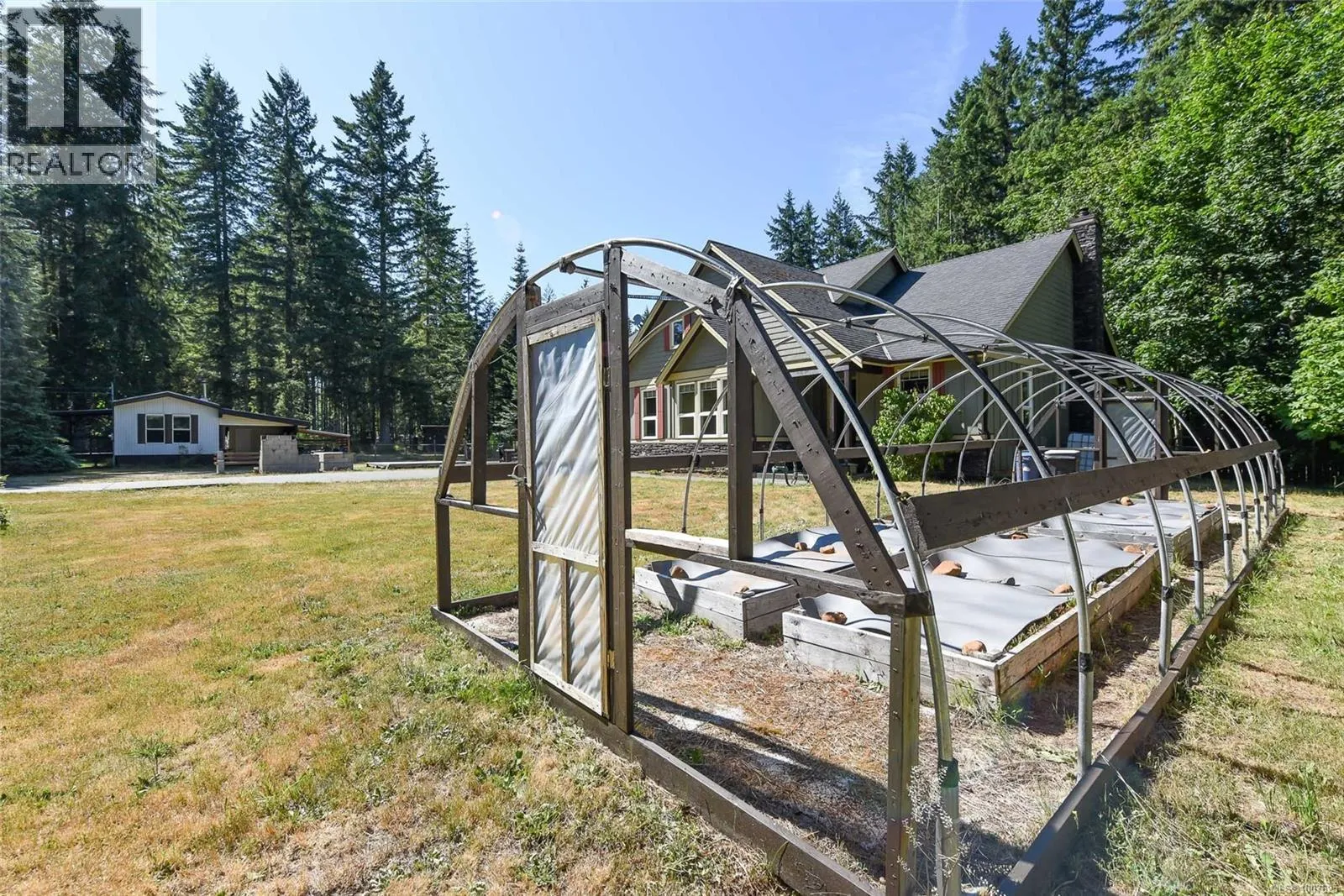 TWO HOMES ON 5 ACRES priced well below assessed value! The sprawling 2010 built rancher offers the perfect blend of comfort and privacy. The main home features 3 bedrooms, 2 bathrooms, 9-foot ceilings, cherry wood cabinetry, and heated floors in both bathrooms and laundry, with a brand new hot water tank for added peace of mind. The spacious secondary residence, with 3 bedrooms and 1 bathrooms, offers versatility for extended family, guests, or potential rental income. A 1200 sq ft detached shop with two over-height bay doors provides ample space for hobbies or storage. Outdoors, enjoy a greenhouse, raised garden beds, fencing for dogs or goats, full hook up for RV and pad with total privacy surrounded by mature trees. With a double garage, easy access to the outdoors, and quick possession available, this property is a rare find that offers endless possibilities. (id:27476)