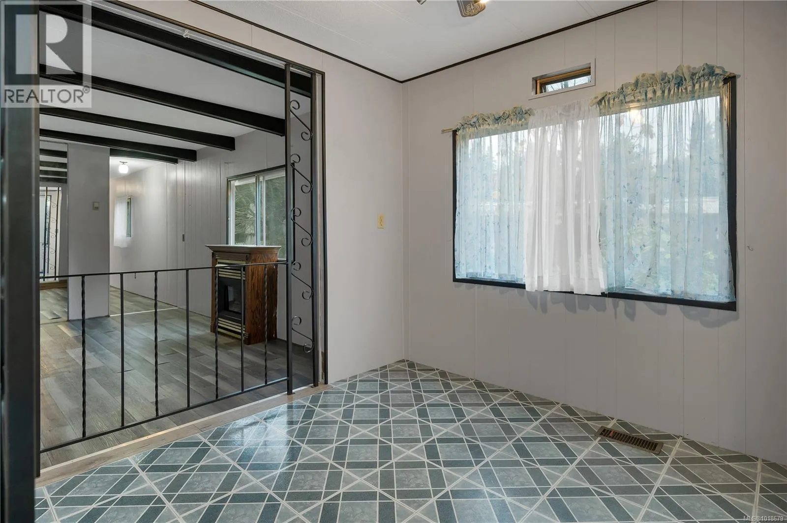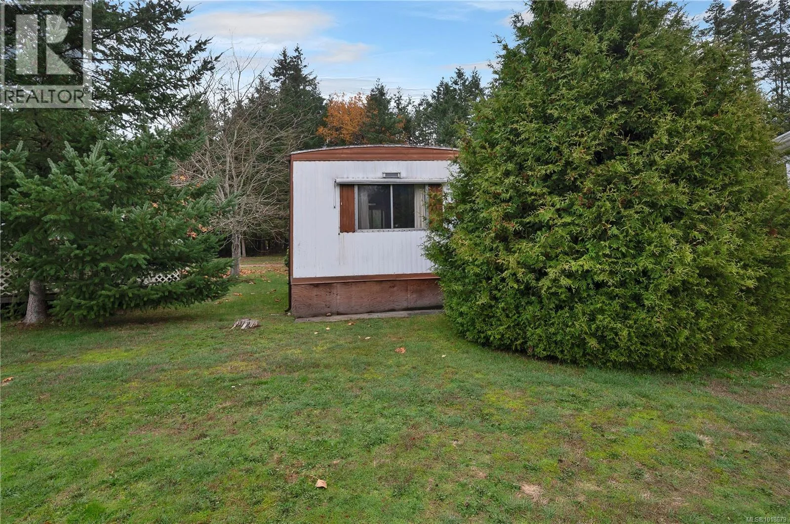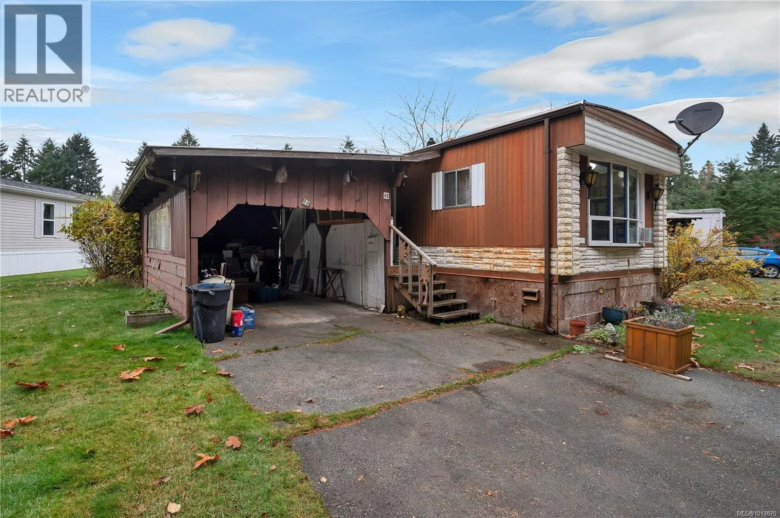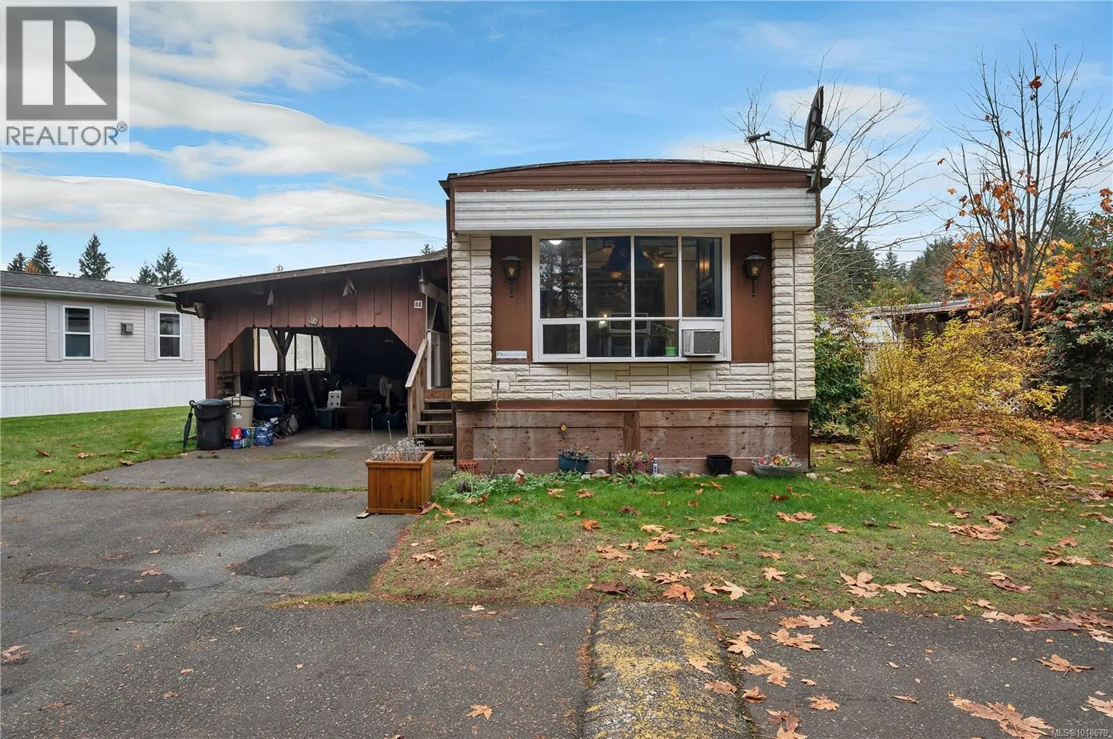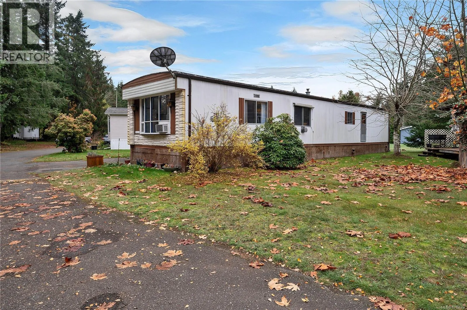 Welcome to relaxed coastal living. This 2-bedroom, 1-bath home is just a short walk to Oyster River trails, Saratoga Beach, the golf course, and everyday conveniences. The floor plan offers a spacious front kitchen with plenty of storage, a raised dining area with charming iron railings, and a cozy living room warmed by a propane fireplace for winter comfort. The primary bedroom is located at the back for privacy, with the second bedroom conveniently positioned in between. Recent updates include a new furnace, new hot water tank, newer oven and cooktop, an updated bathroom with a Bath Fitter tub surround, full re-skirting in 2019, and the roof was recently resealed with a liquid rubber treatment. Outside, enjoy additional storage behind the carport and ample yard space for gardening or outdoor projects. This 55+ park offers low pad rent of $570, which includes garbage pickup. One small pet is allowed with park approval, and rentals are not permitted. Vacant and move-in ready â bring your ideas and make it your own. (id:27476)