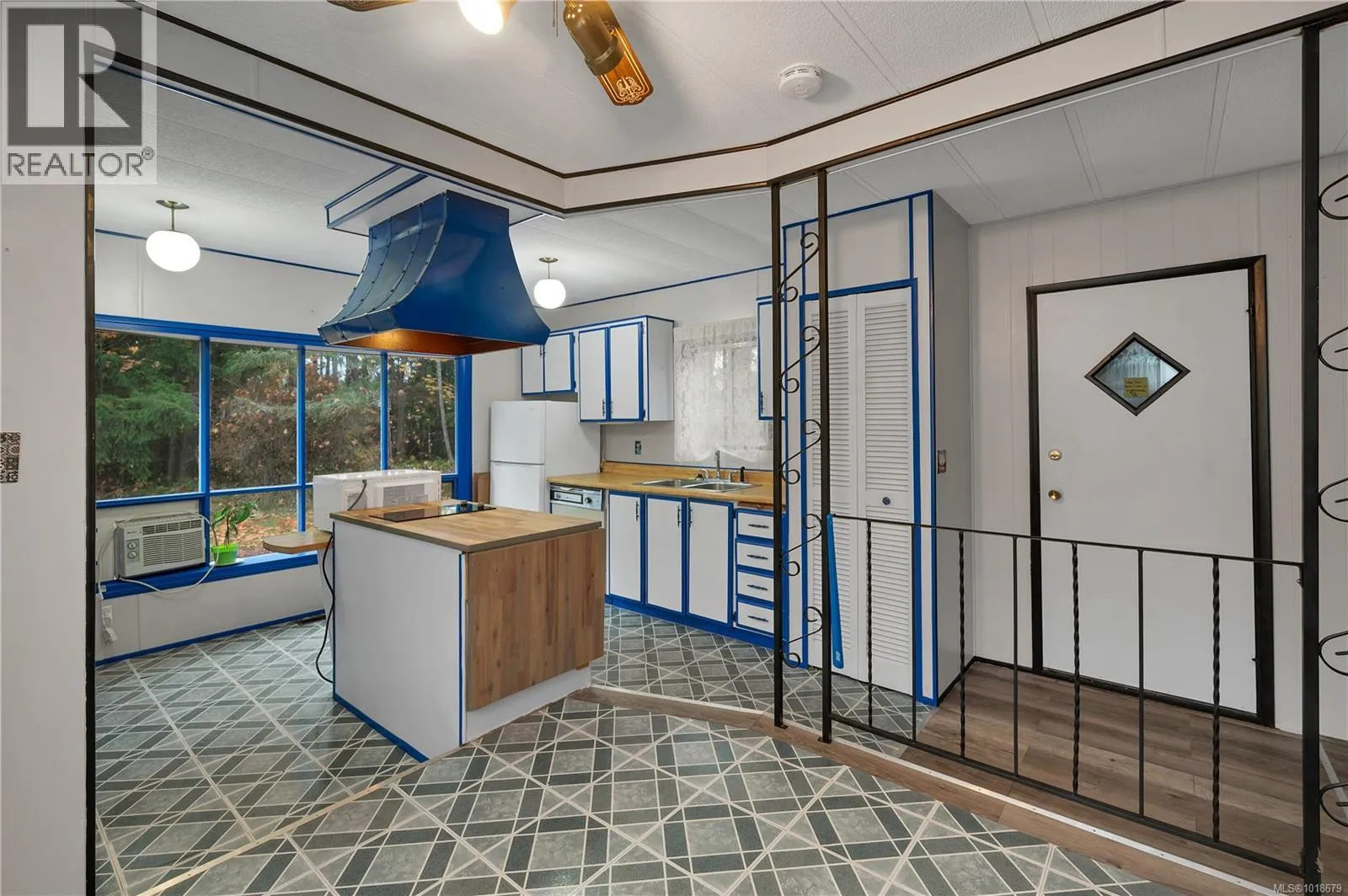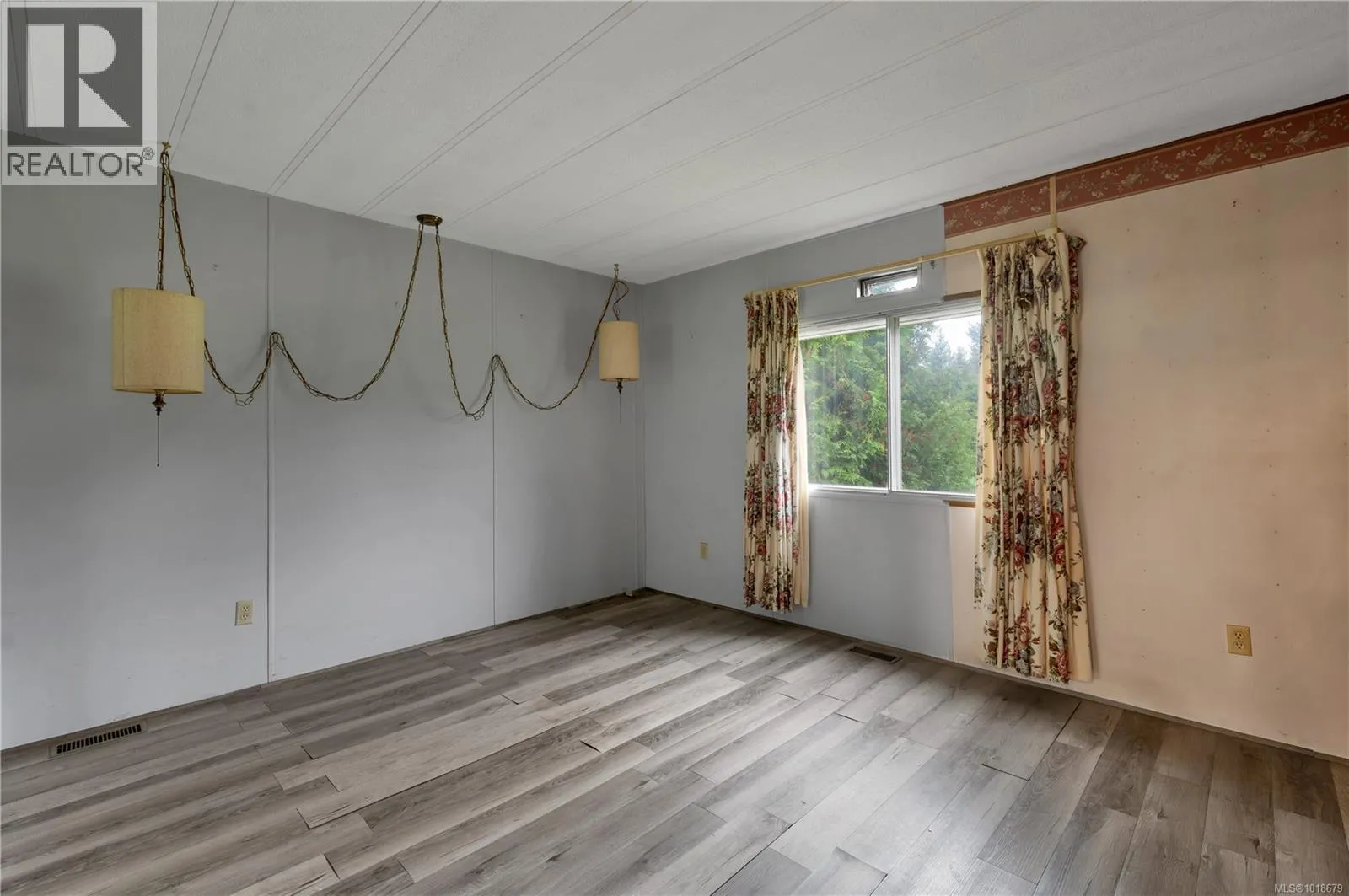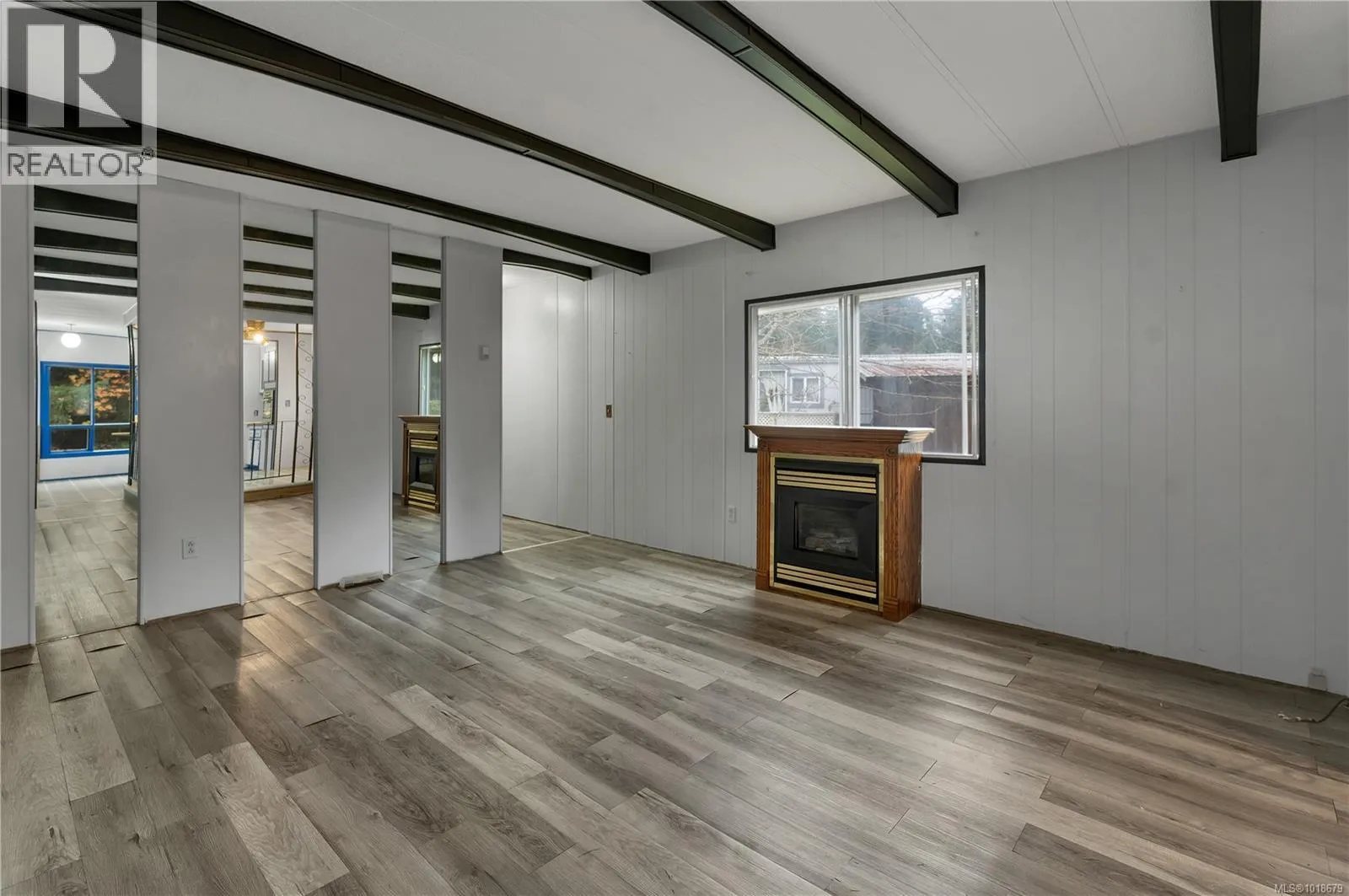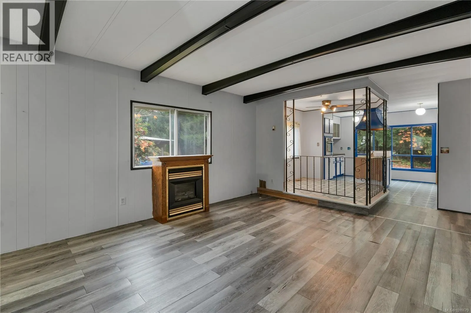 Welcome to relaxed coastal living. This 2-bedroom, 1-bath home is just a short walk to Oyster River trails, Saratoga Beach, the golf course, and everyday conveniences. The floor plan offers a spacious front kitchen with plenty of storage, a raised dining area with charming iron railings, and a cozy living room warmed by a propane fireplace for winter comfort. The primary bedroom is located at the back for privacy, with the second bedroom conveniently positioned in between. Recent updates include a new furnace, new hot water tank, newer oven and cooktop, an updated bathroom with a Bath Fitter tub surround, full re-skirting in 2019, and the roof was recently resealed with a liquid rubber treatment. Outside, enjoy additional storage behind the carport and ample yard space for gardening or outdoor projects. This 55+ park offers low pad rent of $570, which includes garbage pickup. One small pet is allowed with park approval, and rentals are not permitted. Vacant and move-in ready â bring your ideas and make it your own. (id:27476)