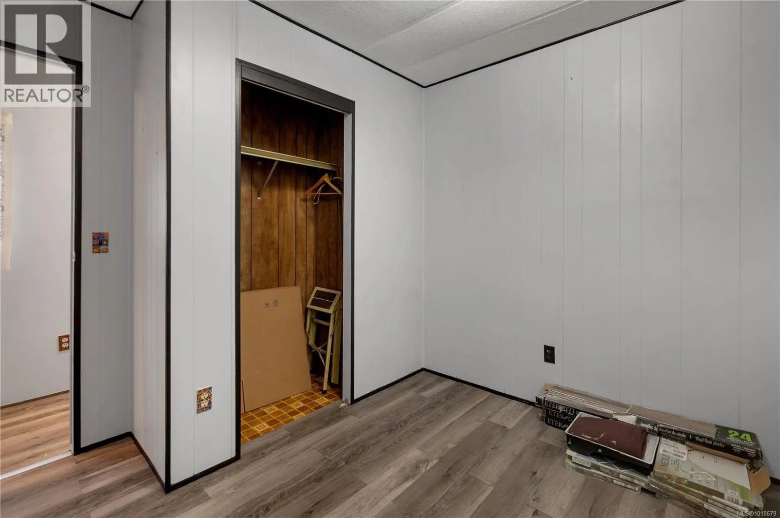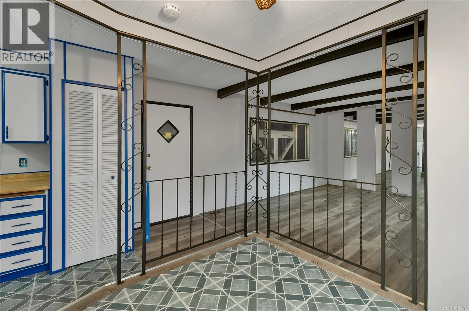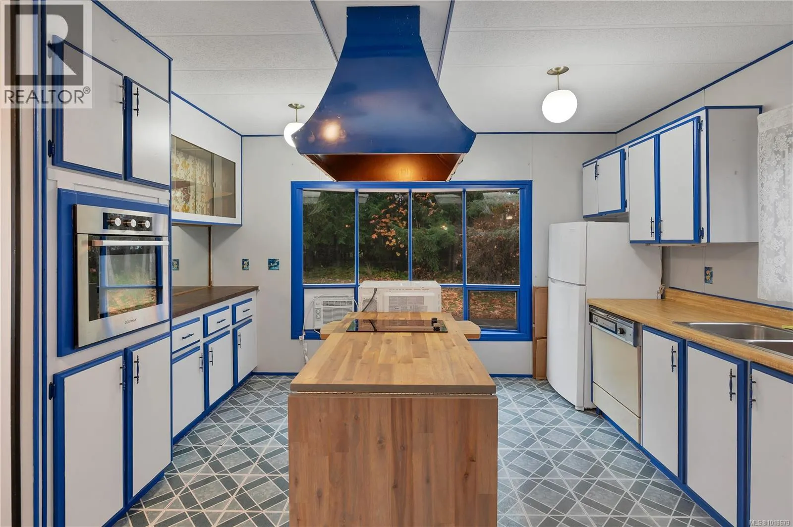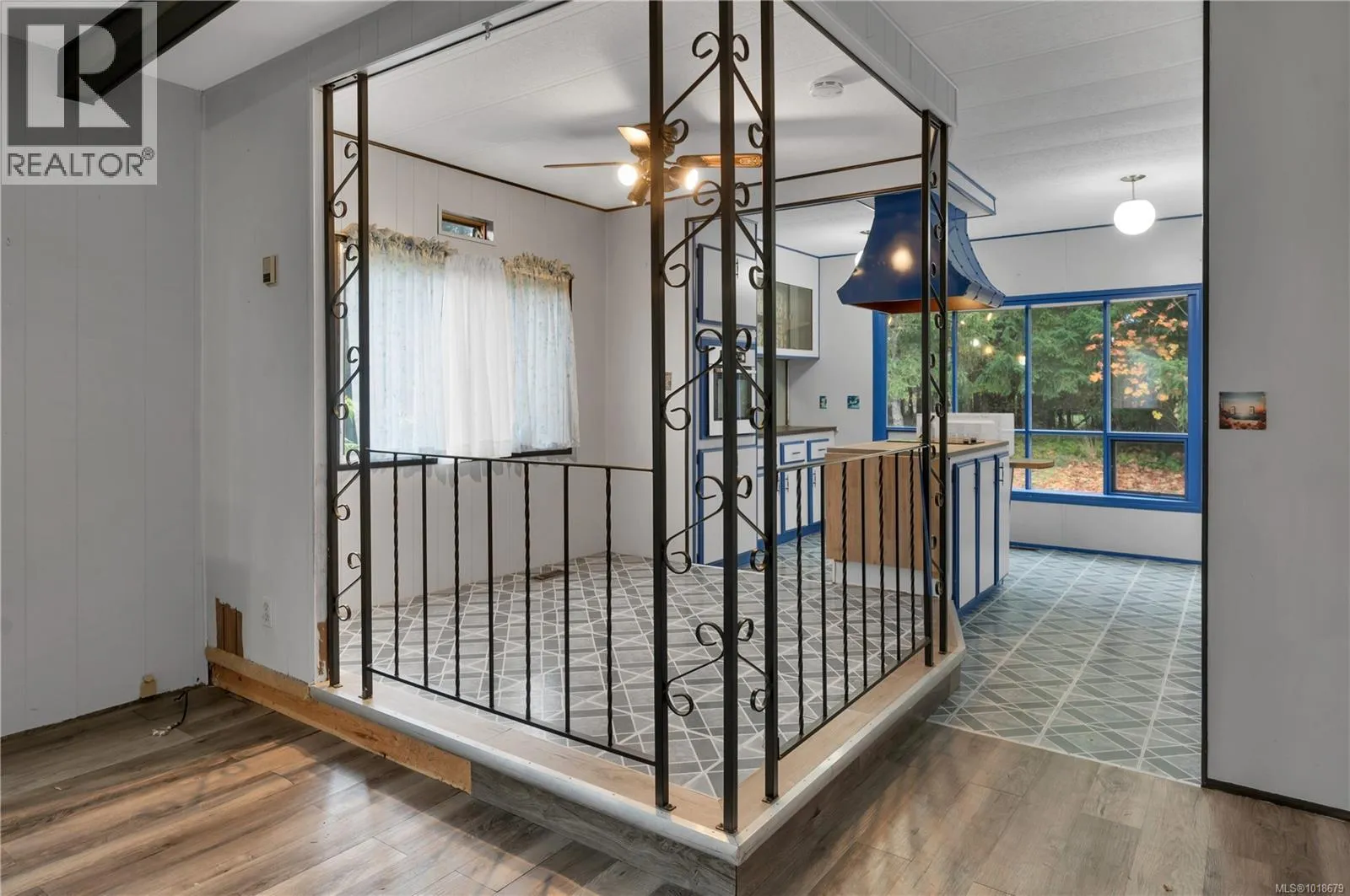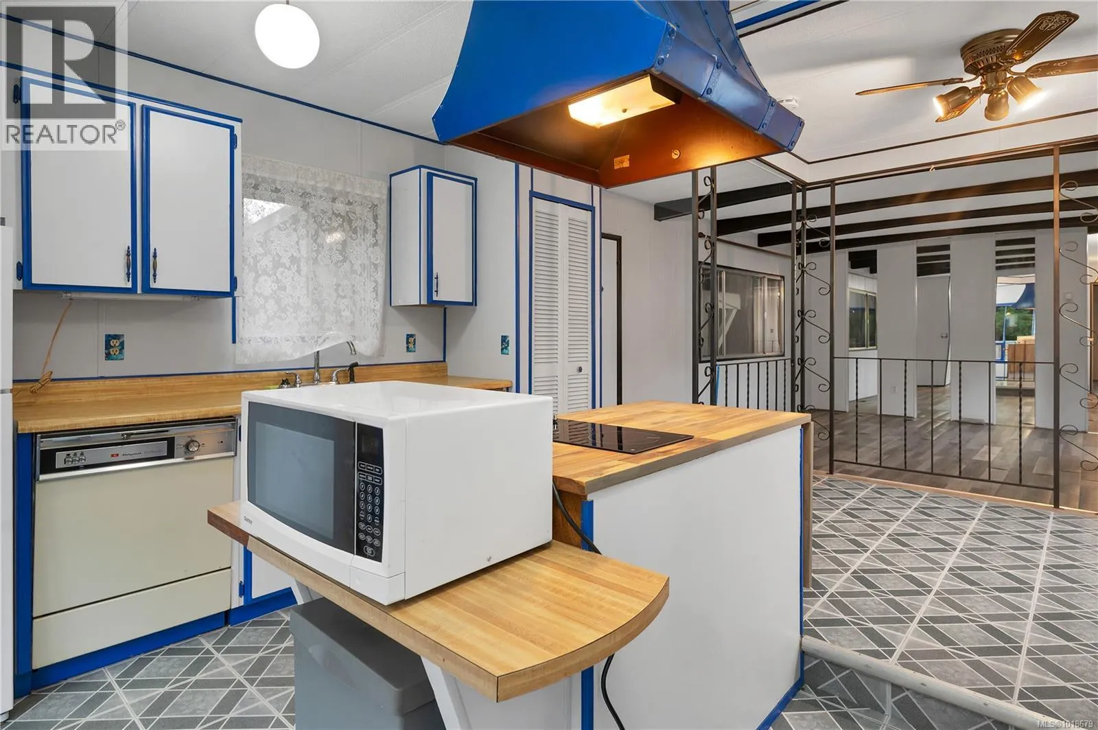 Welcome to relaxed coastal living. This 2-bedroom, 1-bath home is just a short walk to Oyster River trails, Saratoga Beach, the golf course, and everyday conveniences. The floor plan offers a spacious front kitchen with plenty of storage, a raised dining area with charming iron railings, and a cozy living room warmed by a propane fireplace for winter comfort. The primary bedroom is located at the back for privacy, with the second bedroom conveniently positioned in between. Recent updates include a new furnace, new hot water tank, newer oven and cooktop, an updated bathroom with a Bath Fitter tub surround, full re-skirting in 2019, and the roof was recently resealed with a liquid rubber treatment. Outside, enjoy additional storage behind the carport and ample yard space for gardening or outdoor projects. This 55+ park offers low pad rent of $570, which includes garbage pickup. One small pet is allowed with park approval, and rentals are not permitted. Vacant and move-in ready â bring your ideas and make it your own. (id:27476)