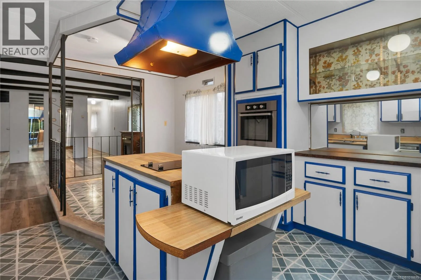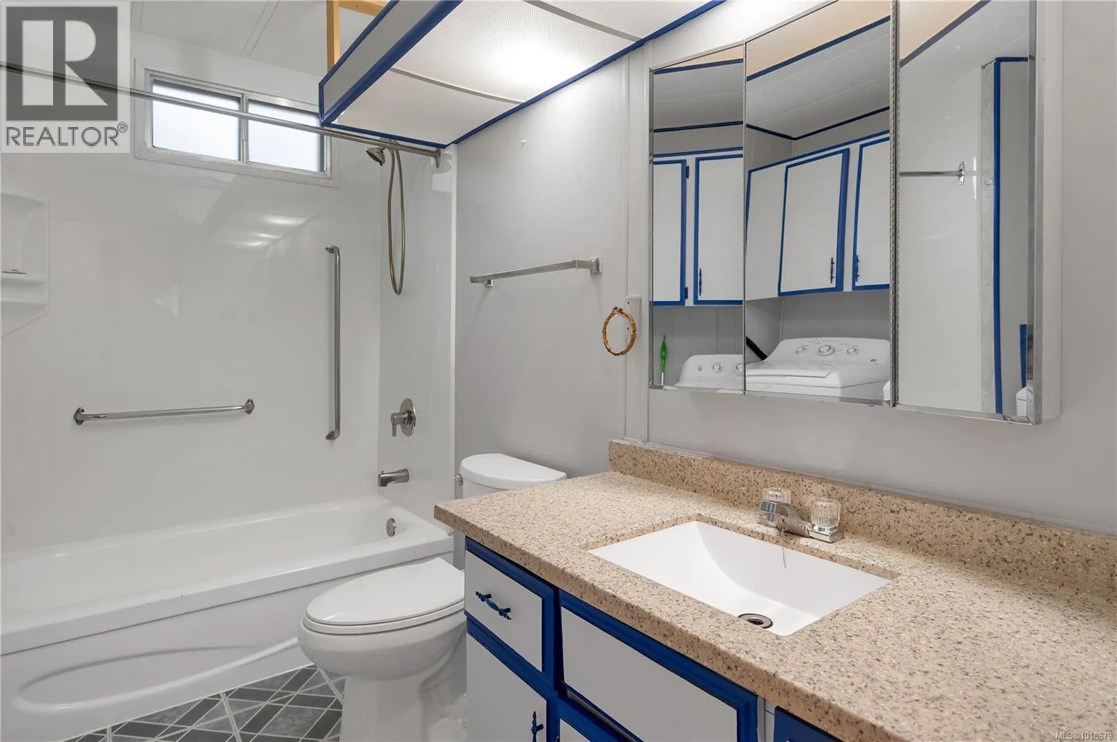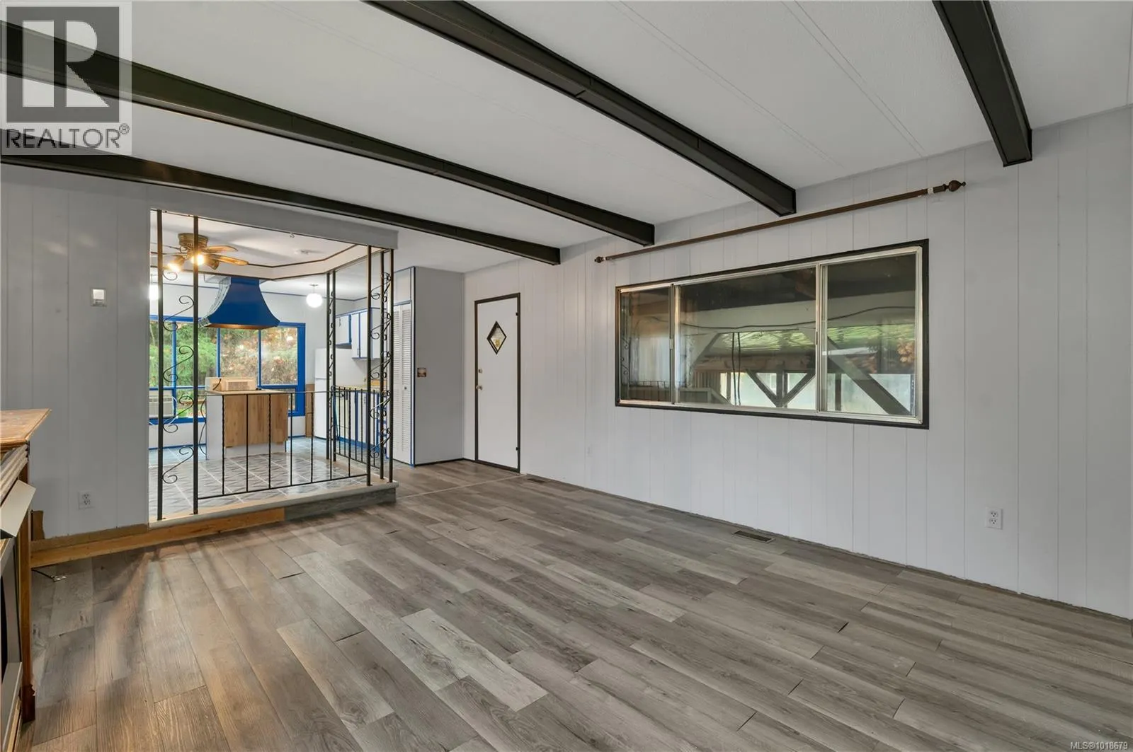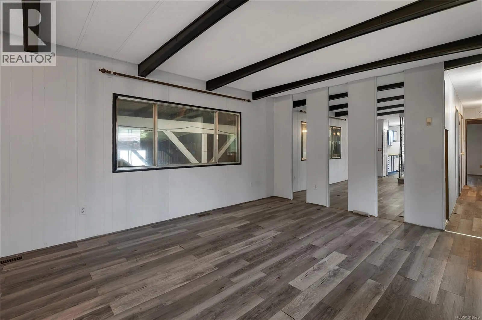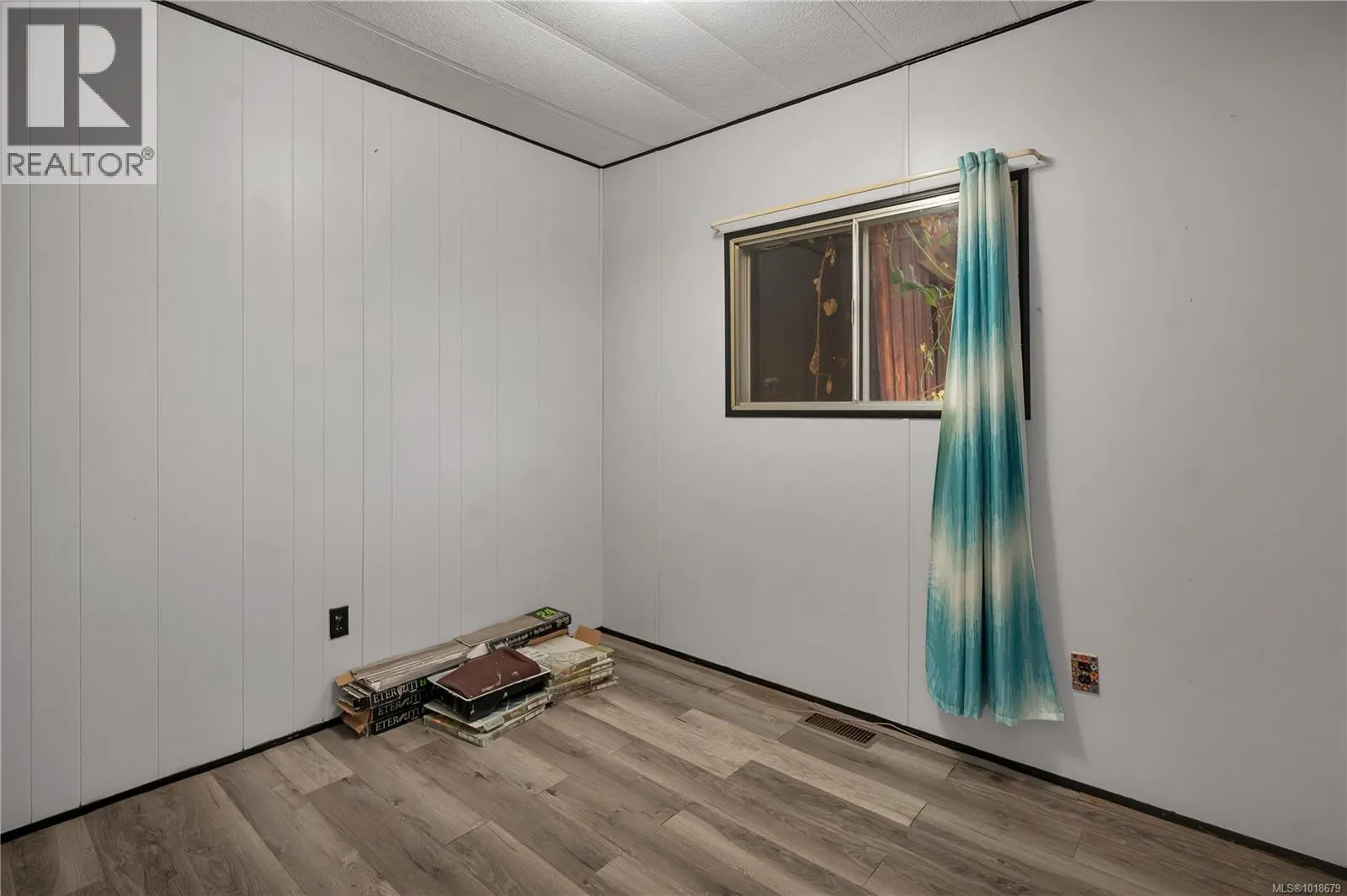 Welcome to relaxed coastal living. This 2-bedroom, 1-bath home is just a short walk to Oyster River trails, Saratoga Beach, the golf course, and everyday conveniences. The floor plan offers a spacious front kitchen with plenty of storage, a raised dining area with charming iron railings, and a cozy living room warmed by a propane fireplace for winter comfort. The primary bedroom is located at the back for privacy, with the second bedroom conveniently positioned in between. Recent updates include a new furnace, new hot water tank, newer oven and cooktop, an updated bathroom with a Bath Fitter tub surround, full re-skirting in 2019, and the roof was recently resealed with a liquid rubber treatment. Outside, enjoy additional storage behind the carport and ample yard space for gardening or outdoor projects. This 55+ park offers low pad rent of $570, which includes garbage pickup. One small pet is allowed with park approval, and rentals are not permitted. Vacant and move-in ready â bring your ideas and make it your own. (id:27476)