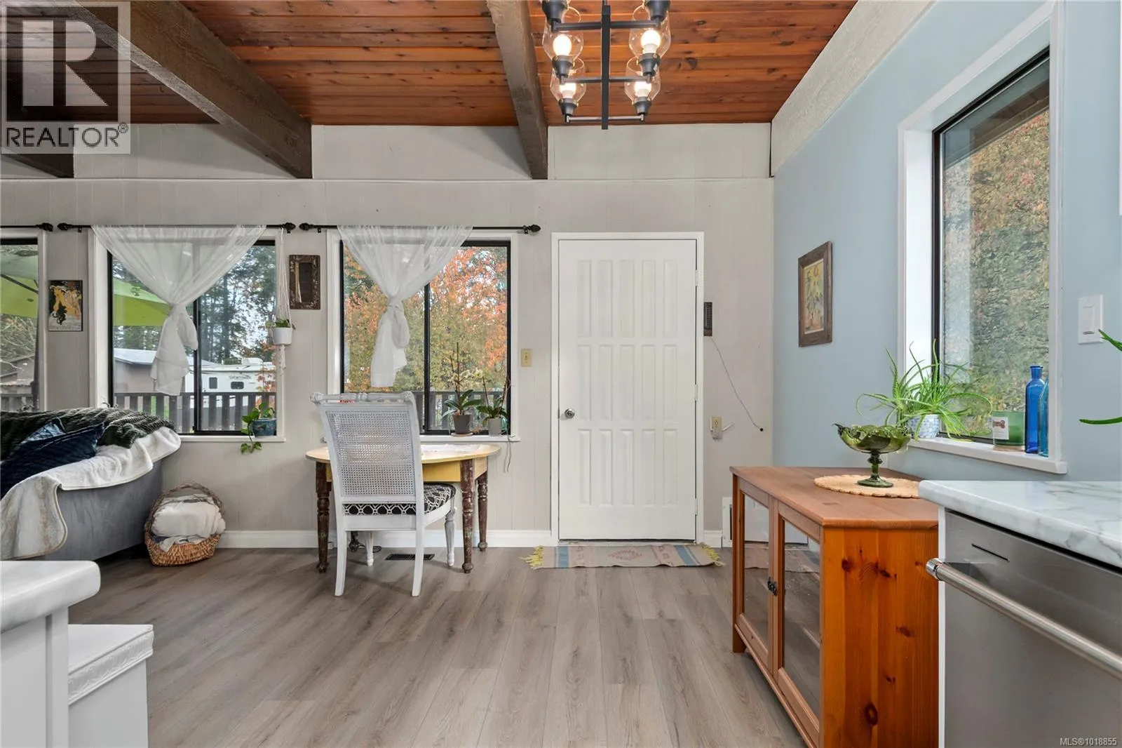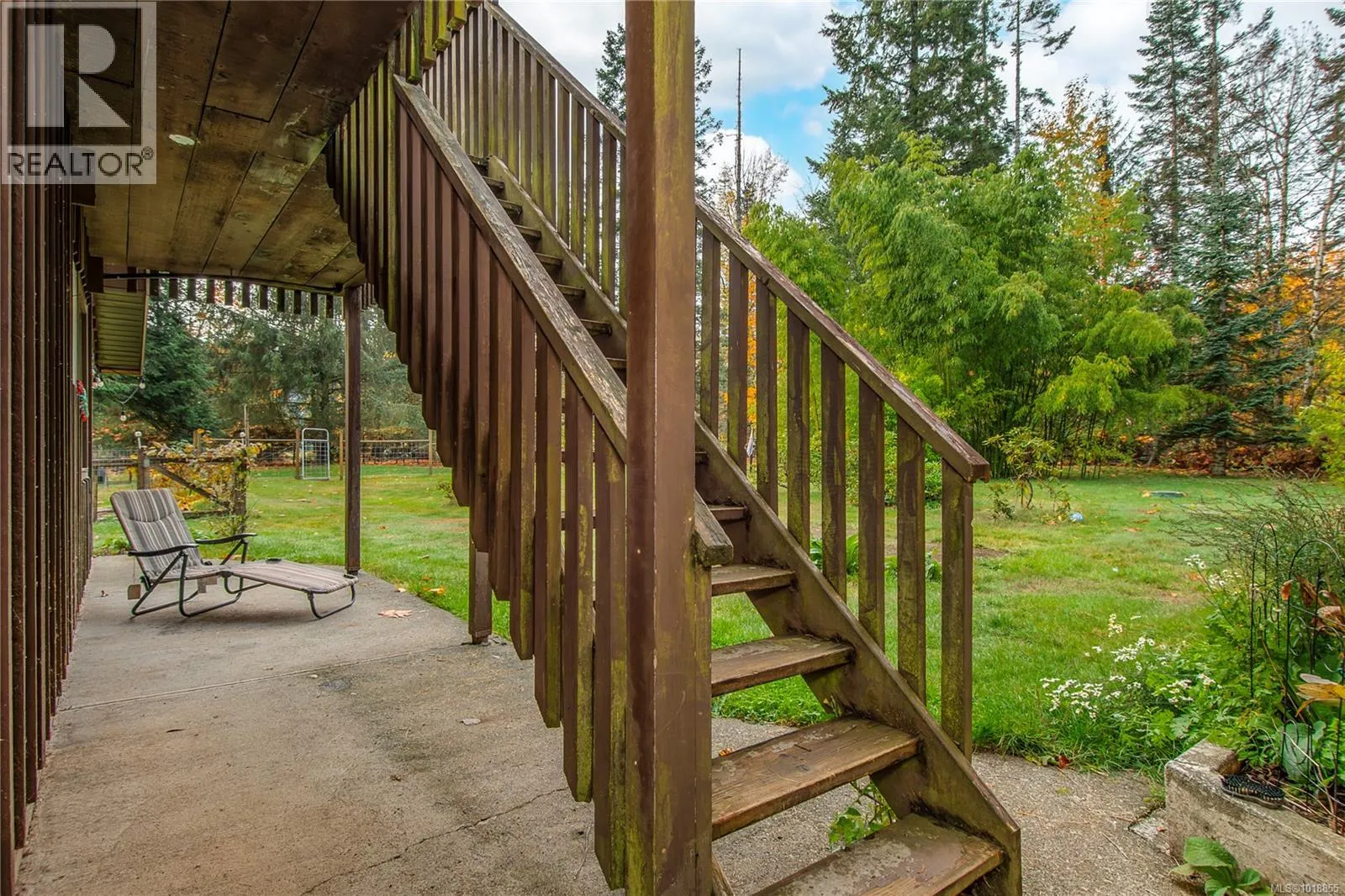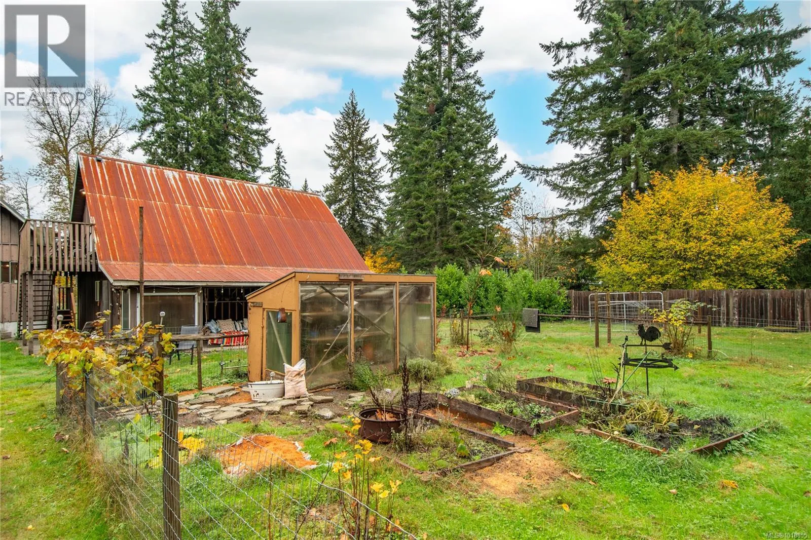 Looking for space, versatility, and a taste of farm life? Tucked amid 1.68 acres of calm countryside, this homestead offers a main house, two shops, a studio suite and much more. The 1,322 sqft main home carries a warm, rustic spirit with 3 bedrooms, 2 bathrooms, a woodstove that anchors the living space, and doors that open to a sunlit deck, perfect for morning coffee, evening gatherings, or watching the seasons shift across your land. Upstairs, the primary bedroom has vaulted ceilings and its own balcony to enjoy the songbirds and hum of the Oyster River. The second building brings purpose and possibility with an 800 sqft garage, workshop and bath below and a 397 sqft studio suite with a kitchenette, 3 piece bath, and a balcony overlooking the property above. The land itself is thoughtfully designed for farm life and outdoor living with space for horses or harvests. You have a chicken coop and run, a small animal barn once home to alpacas, a fenced vegetable garden, and a natural creek offering an ambient soundtrack for your day. You have a secondary shop paired with full RV hookup creating what feels like its own parcel. This is the kind of place that invites you to dig in, lay down roots, and stay awhile. (id:27476)