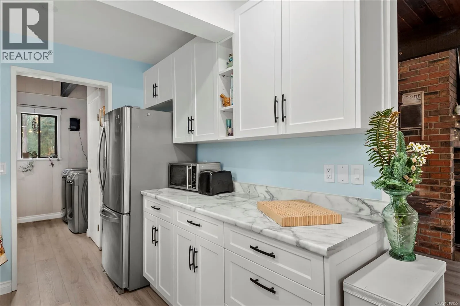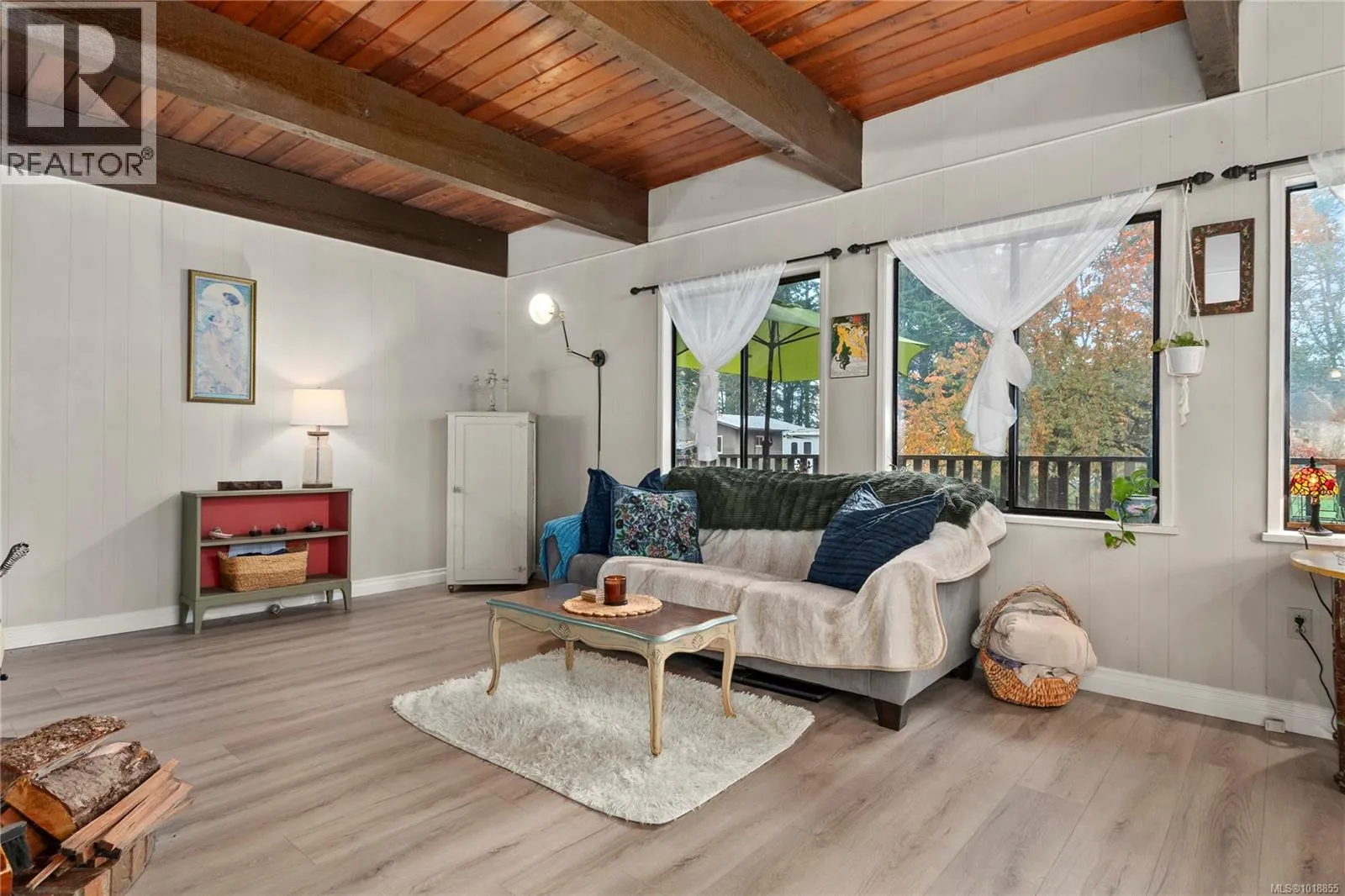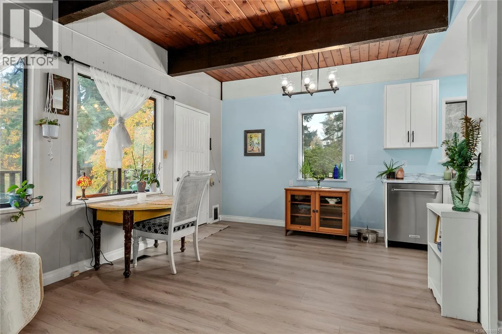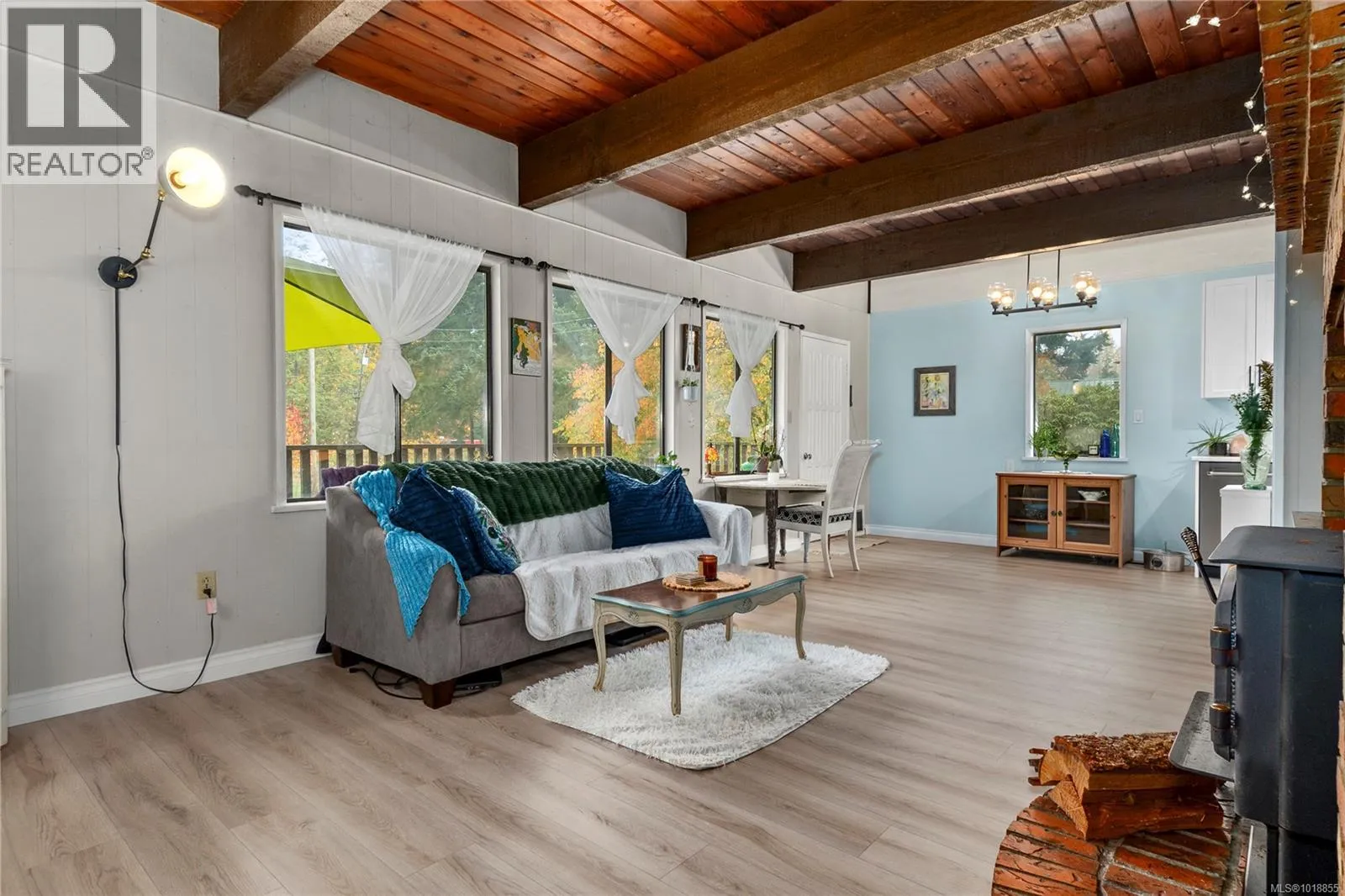 Looking for space, versatility, and a taste of farm life? Tucked amid 1.68 acres of calm countryside, this homestead offers a main house, two shops, a studio suite and much more. The 1,322 sqft main home carries a warm, rustic spirit with 3 bedrooms, 2 bathrooms, a woodstove that anchors the living space, and doors that open to a sunlit deck, perfect for morning coffee, evening gatherings, or watching the seasons shift across your land. Upstairs, the primary bedroom has vaulted ceilings and its own balcony to enjoy the songbirds and hum of the Oyster River. The second building brings purpose and possibility with an 800 sqft garage, workshop and bath below and a 397 sqft studio suite with a kitchenette, 3 piece bath, and a balcony overlooking the property above. The land itself is thoughtfully designed for farm life and outdoor living with space for horses or harvests. You have a chicken coop and run, a small animal barn once home to alpacas, a fenced vegetable garden, and a natural creek offering an ambient soundtrack for your day. You have a secondary shop paired with full RV hookup creating what feels like its own parcel. This is the kind of place that invites you to dig in, lay down roots, and stay awhile. (id:27476)