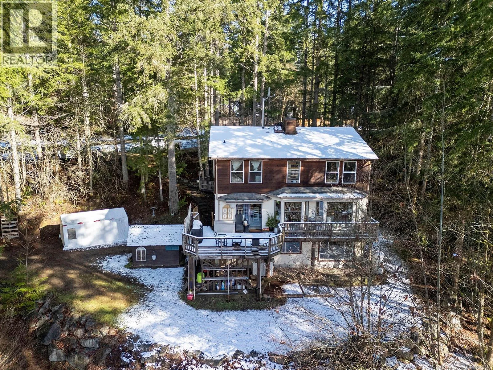 Set on 3.67 acres, this 3-level home offers the ideal blend of space, comfort, & natural beauty, complete with your own stunning pond & island. The thoughtfully designed floor plan provides room for everyday living & entertaining. The main level welcomes you with a den & a warm, inviting living room featuring fir hardwood floors & a cozy woodstove. Large windows frame picturesque views of the surrounding property, bringing the outdoors in. The bright, spacious kitchen is perfect for gathering & opens through sliding doors to an incredible deck, ideal for relaxing or hosting family & friends. Upstairs, youâll find three comfortable bedrooms, while the lower level offers a fourth bedroom, generous family room, abundant storage, & indoor workshop, perfect for hobbies or workspace. The property itself is equally impressive, offering privacy, usable acreage, marketable timber, a storage shed, small barn, & excellent potential to build your dream shop, with a power pole already in place. For more information, please contact Ronni Lister at 250-702-7252 or ronnilister.com. (id:27476)