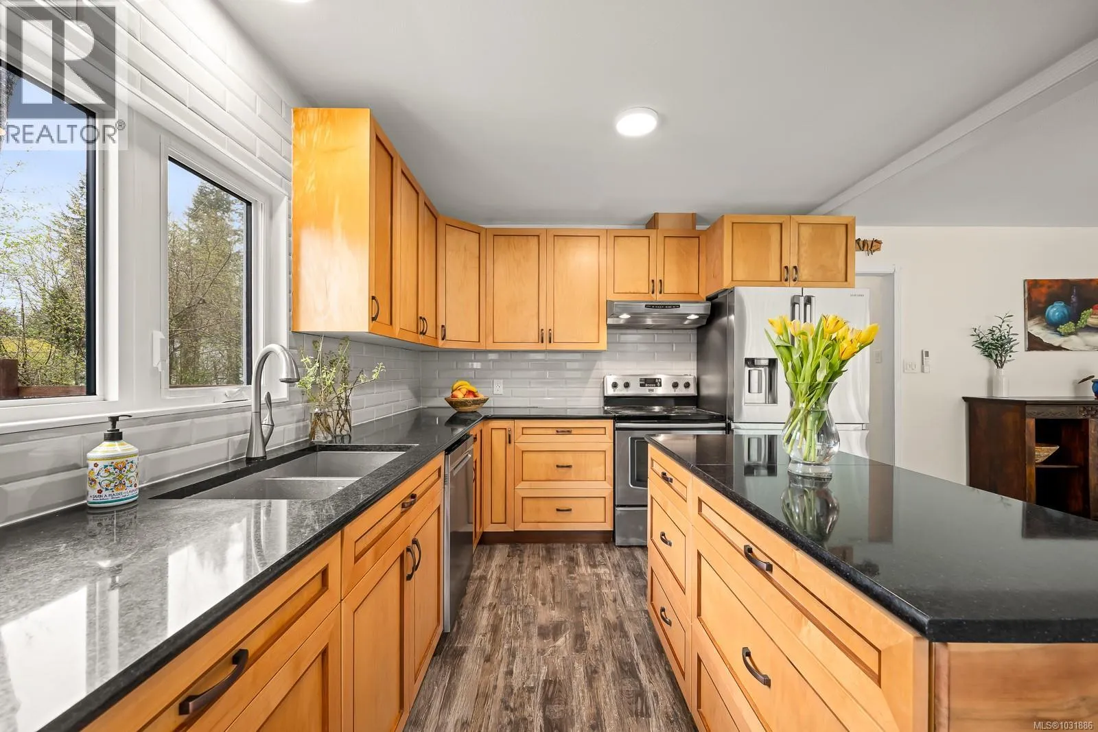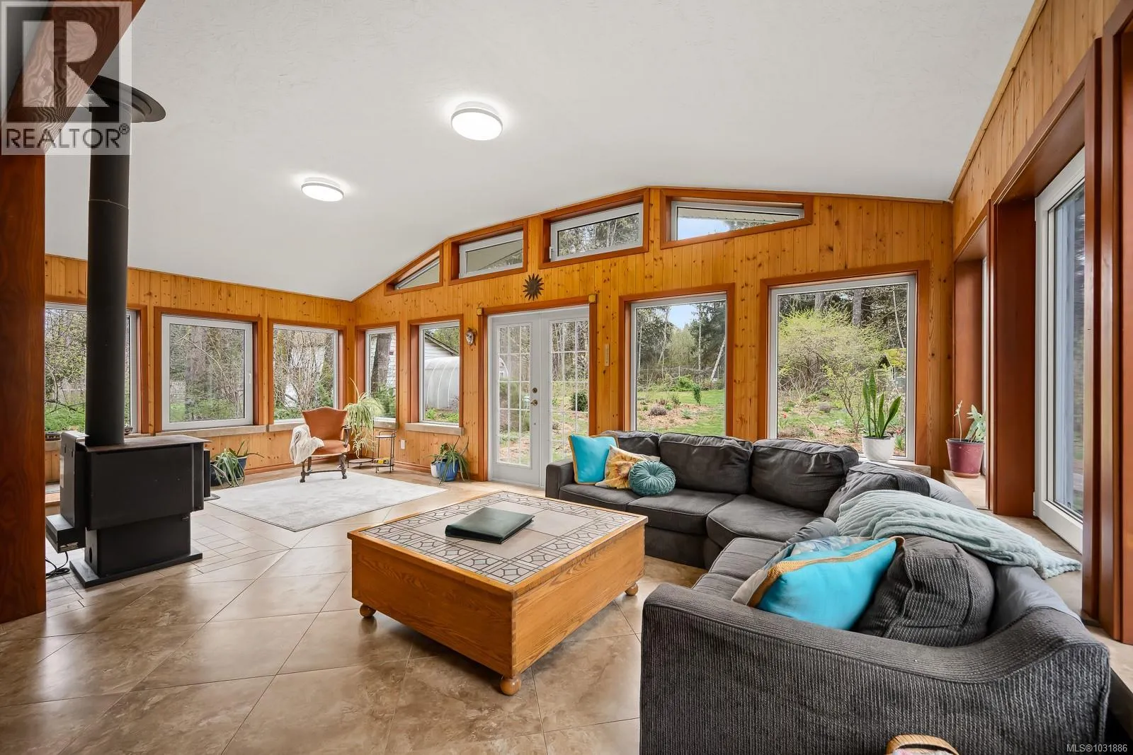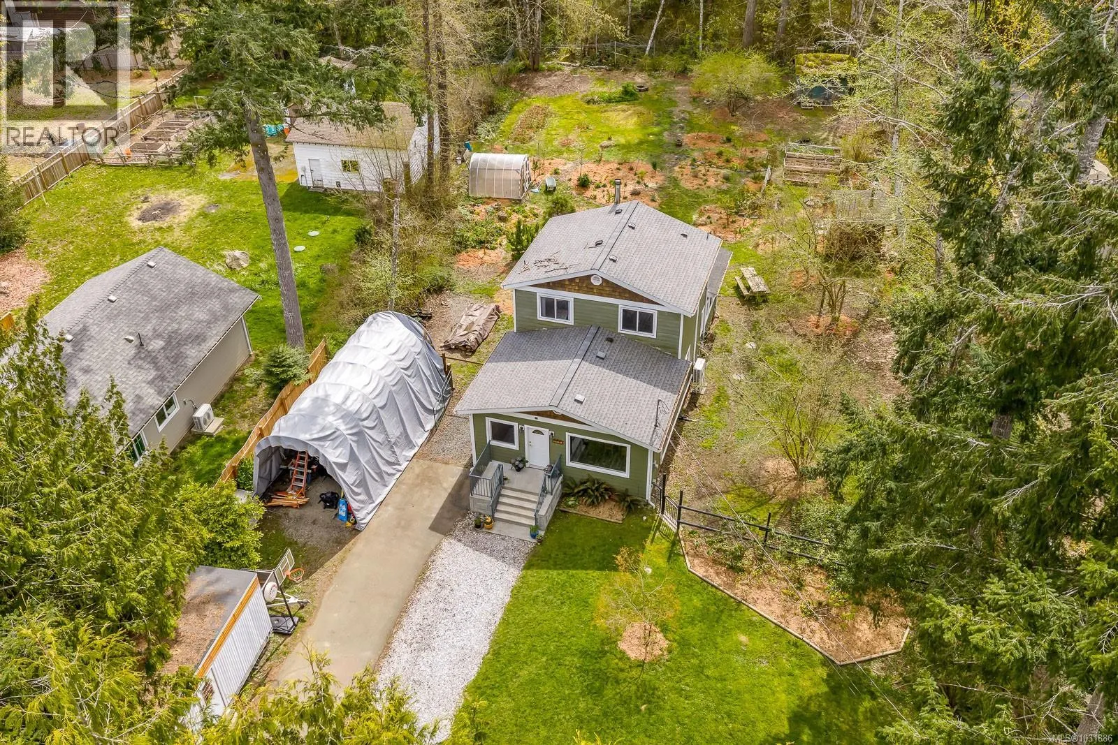 There's room to unwind on this private, park-like property on a quiet no-through road. The 4 bed, 2 bath home sits on a 0.58 acre lot, with a fully fenced backyard, detached sauna, gardens, and room for your outdoor projects. The south-facing living room has incredible natural lighting with 14 windows! â¦plus a vaulted ceiling, tile flooring, a woodstove and french doors that open onto the lush backyard. The recently remodelled kitchen features wooden cabinets, quartz countertops and is open to the spacious dining area. Recent updates include a heat pump, new roof, flooring, kitchen and hot water tank. With 2 beds on the main and 2 beds on the upper floor it has a versatile layout. Within a 5 min drive to Saratoga Beach, Miracle Beach, Bear Creek Nature Park, Oyster River walking trails. Within 10 min of Miracle Beach Elementary and many Black Creek amenities. Zoned CR-1, with loads of parking space, a large storage structure and room to build. (id:27476)