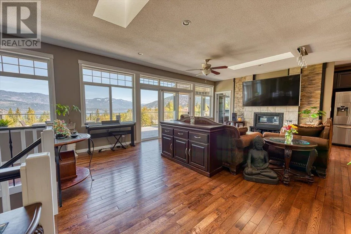 QUALITY BUILT HOME SHOWCASES BREATHTAKING SHUSWAP LAKE AND COPPER ISLAND VIEWS. This luxurious 4 bedroom, 3 bathroom home is located on a quiet street in a great neighborhood. Stunning home boasts close to 3000 sq. ft. of living space, with beautiful custom work throughout. Features include: Open concept kitchen and formal dining room, island with seating for three, high quality stainless steel kitchen appliances & quartz counter tops. Pantry, laundry and baking center are all in one room adjacent to the kitchen. An abundance of windows and skylights throughout the home maximize the light and views. Gorgeous oak hardwood flooring throughout the great room w/ an open oak stairway leading to the lower level and a stunning 2 sided tiled fireplace that is shared by the Den. So much attention to detail. Large Master bedroom features panoramic lake views, built in gas fireplace, walk-in closet, 5 piece en-suite w/ jetted tub and access to the deck from master bedroom. Beautifully terraced landscaped yard w/ large area suitable for a 30x30 shop & RV parking, wrap around paved driveway and plenty room to park all your toys! Oversized double car garage w/ double doors 9' x 8'. Relax, enjoy and soak in the views from the 900 sq ft of deck on 2 levels w/ partial covered on the upper deck. A real pleasure to view. (id:27476)