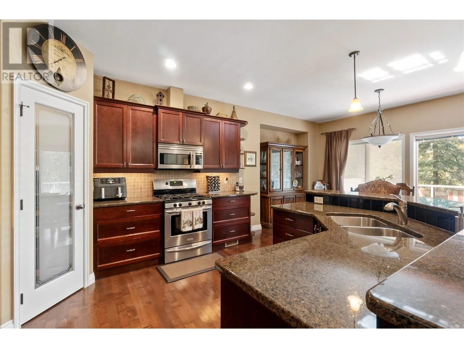 STYLISH COMFORT IN A PARKLIKE SETTING....This beautifully designed 3-bedroom plus den rancher with a fully finished basement offers the ideal blend of comfort, functionality, and style. Step into an inviting open-concept living, dining, and kitchen area that flows seamlessly onto a spacious covered deckâperfect for entertaining or relaxing while taking in the lush, private, parklike backyard. The thoughtfully laid-out kitchen features an island with an eating bar, granite countertops, a walk-in pantry, and stainless steel appliancesâincluding a gas stoveâfor the chef in the family. The dining area includes a charming alcove for your hutch or buffet, while the living room is enhanced by vaulted ceilings and a warm gas fireplace, creating a welcoming atmosphere year-round. The spacious primary bedroom, complete with a walk-in closet and a beautifully appointed ensuiteâis perfect for unwinding at the end of the day. The main floor also includes a bright office, a convenient powder room, and a laundry room with a built-in sink for added functionality. Car enthusiasts and truck owners will appreciate the impressive 30-foot-wide garage, offering both 21- and 24-foot-deep baysâideal for oversized vehicles or extra storage. Outside, the meticulously manicured yard with U/G sprinklers reflects the pride of ownership that truly sets this home apart. Close to Shuswap Lake Golf Course and the beach, this location is ideal for enjoying everything our four-season playground has to offer.â (id:27476)