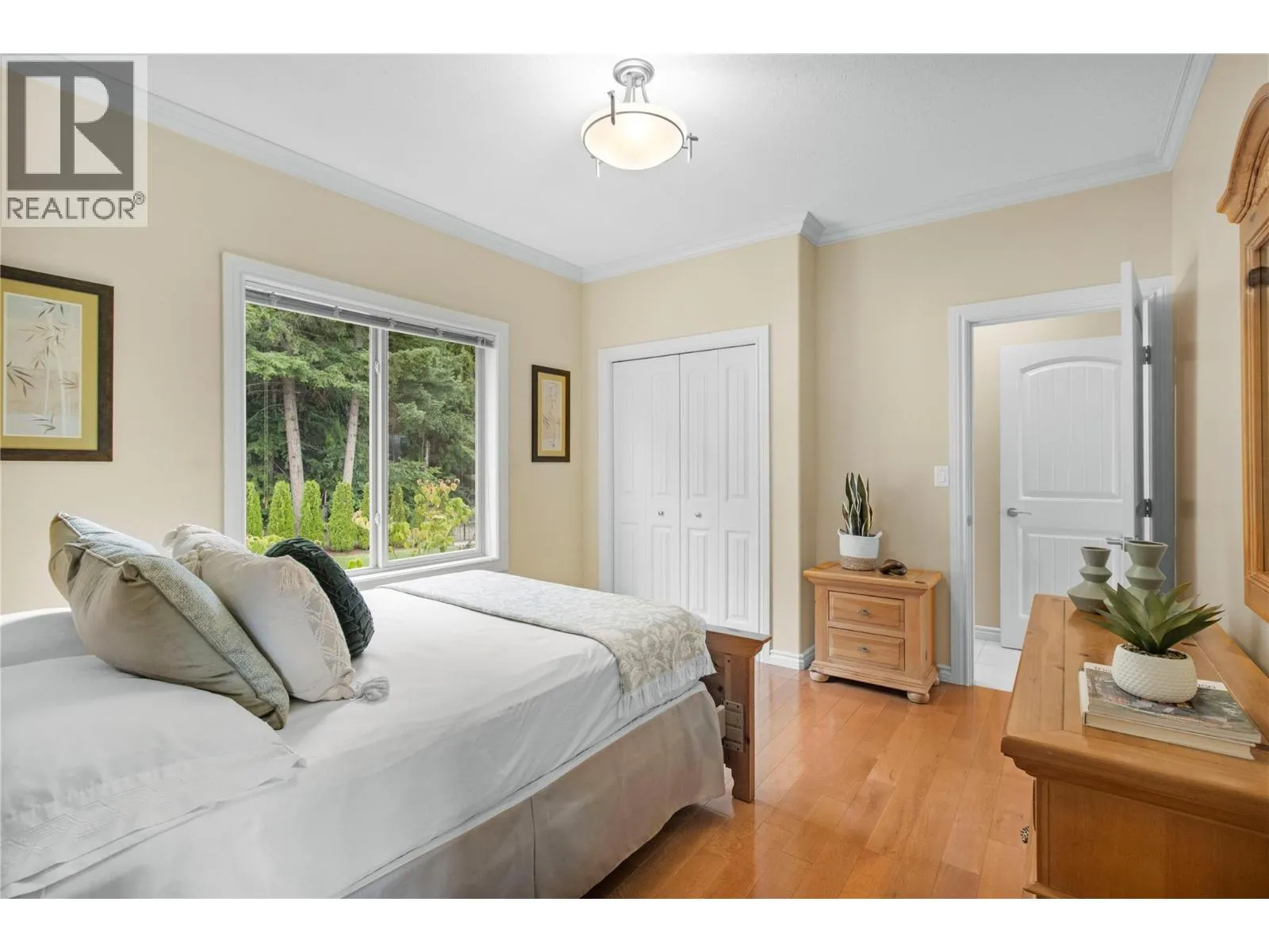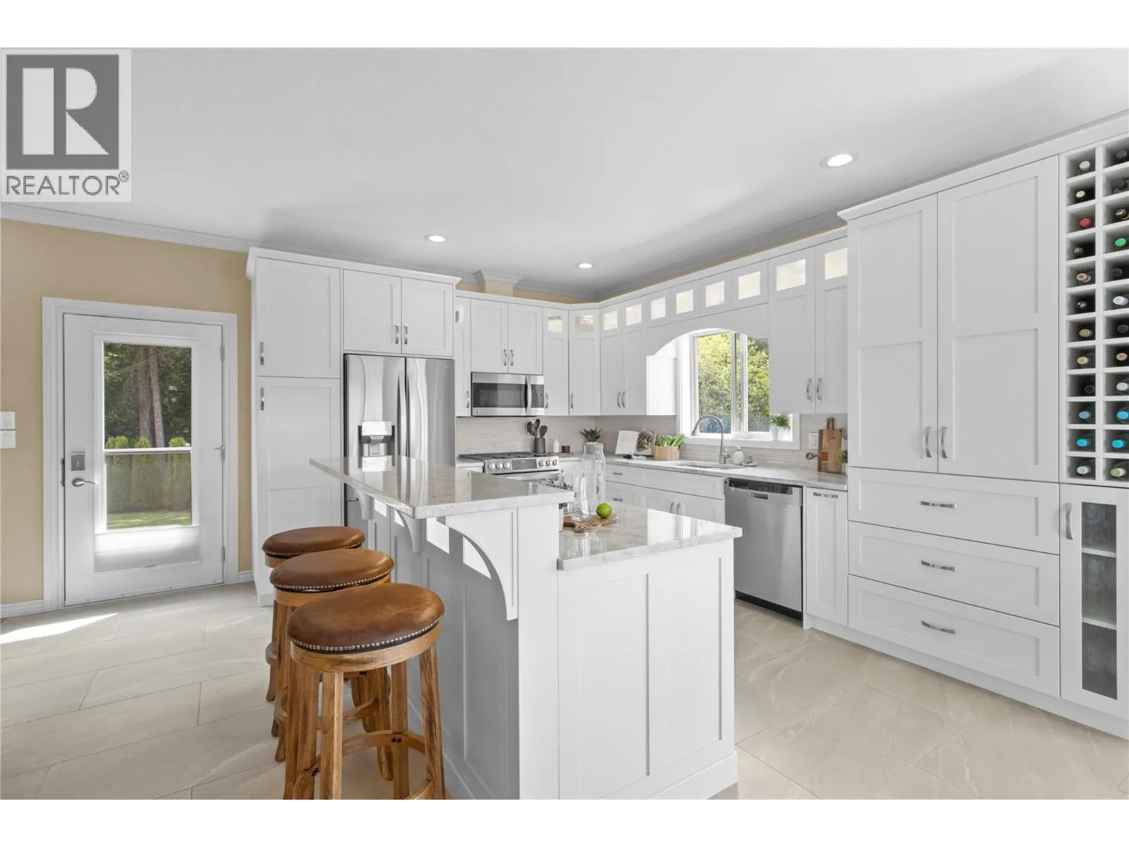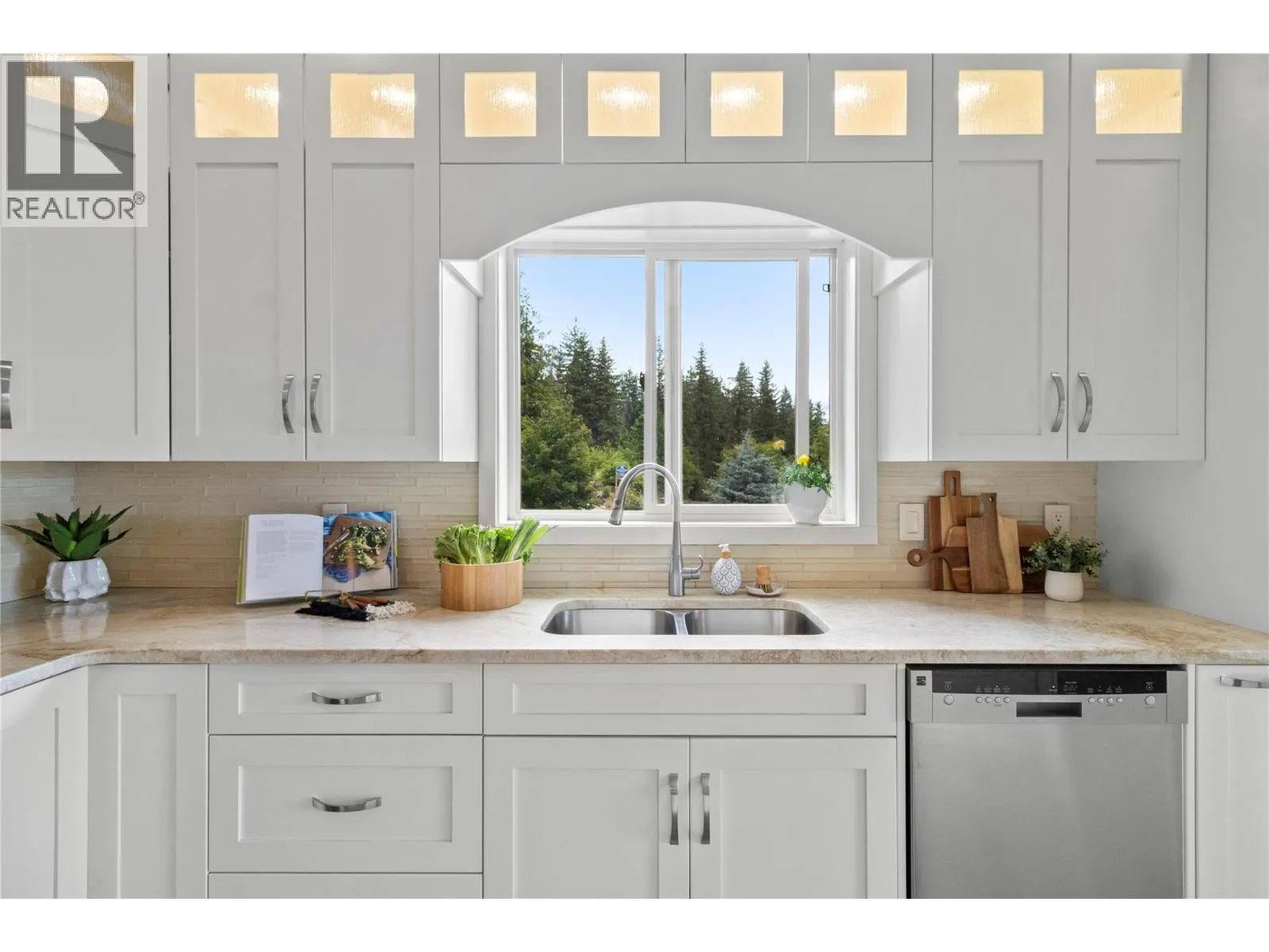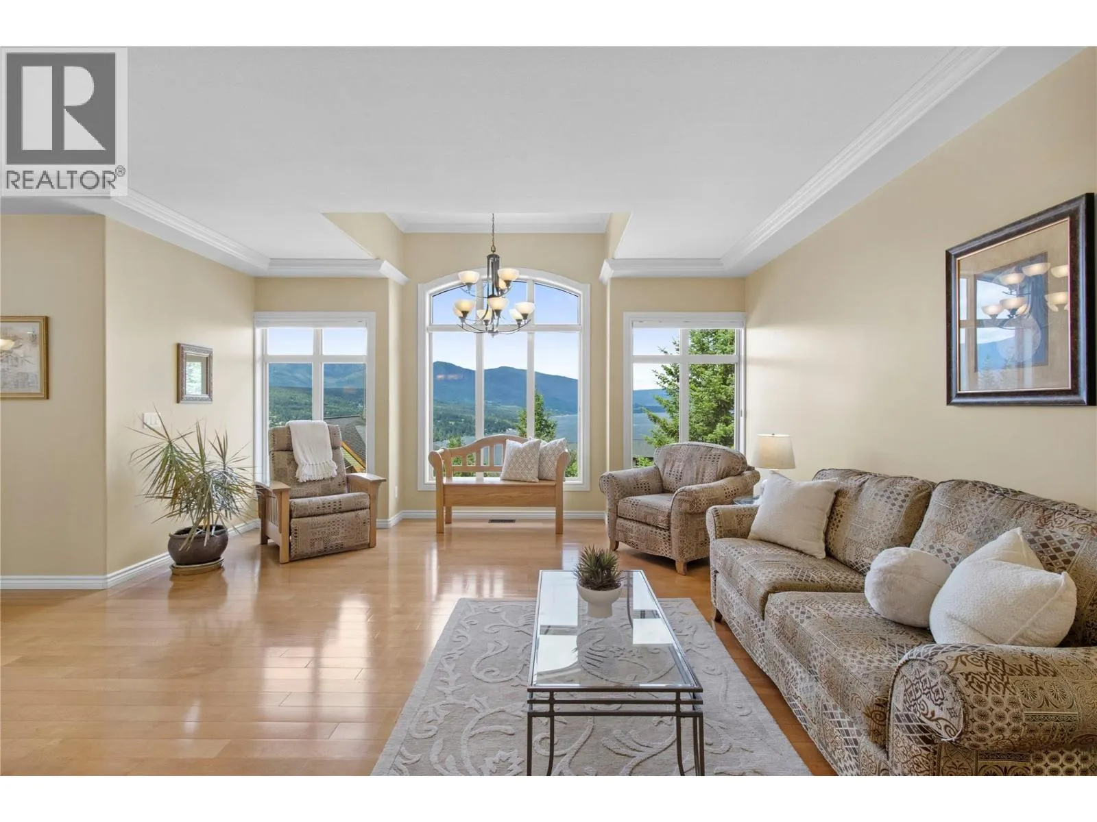 3659 McBride Road, if you have ever wanted to live in a home that feels like a castle at the top of the hill with views stretching as far as you can see, then don't miss this one. Custom construction with lots of remodelling and updates, including a new MiTec kitchen and Taj Mahal granite.(Ask for the full update list.) Currently set up with 4 bedrooms and 3 baths plus multiple family rooms and den and office spaces, including 2 gas fireplaces and one electric. There is a lot of flexibility for your needs. An oversized .57 acre lot is completely and beautifully landscaped with gardens and water features, which you can enjoy from the back terrace overlooking the yard and backing onto parkland. And the lawn cuts are all taken care of by your very own Auto mower included. There is an incredible trail system of hiking trails and more almost on your doorstep. And not far down the road to beach access and boat launches and marinas. The McArthur Heights subdivision is well known, and if you know of it, you know why everyone loves it. The incredible lake views, the oversized lots with RV parking, and room to expand and put in a pool or shop if you wanted. The hardest thing is deciding where to spend your time with so many great lake views from the front balconies and off the master bedroom even, or the backyard with its tranquility and park-like landscaping. Check out the 3D tour. (id:27476)