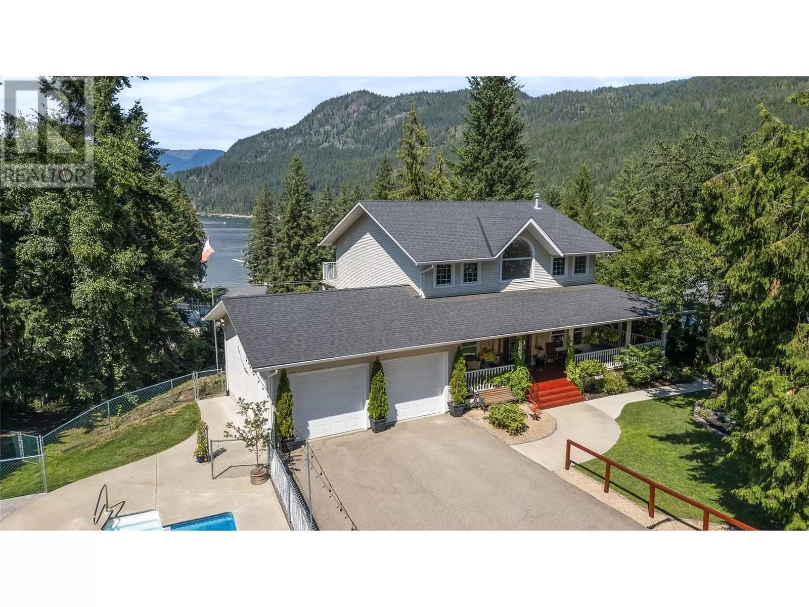 Lakeviews, steps to the beach, marina, boat launch, convenience store & walking distance to restaurants. Room for all the family in this 4 bed, 4 bath home. Inviting covered front porch entry with 2 story open foyer, open concept kitchen, dining and living room space with stone gas fireplace. The formal living room could be multipurpose den/music room or a formal dining space also a generous private office to work from home. 2 p bathroom, separate laundry room and Pantry/storage room with outdoor access. From the living space French doors to the entertainers deck with space to relax, a cooking area amazing views of Shuswap Lake. Upstairs find 3 bedrooms, including Primary bedroom with its own private deck & 5 p en-suite, soaker tub 2 additional bedrooms and a full 4 p bathroom. On the walk out lower level options an Income Producing fully equipped in-law suite with 1 bedroom, den, full kitchen, laundry & a separate entrance or extra space for guest or your family. Enjoy a dip in the refreshing heated in ground swimming pool, with an stamped concrete patio, gazebo & pool house all separately fenced to relax and enjoy the hot sunny days. Oversized paved driveway with room for your RV's and additional vehicles. All of this on a 0.75 acre fenced lot with fruit trees and plenty of room for an active family in a welcoming environment! Excellent location See IGuide for tour, all measurements taken from IGuide. Call today to view. (id:27476)