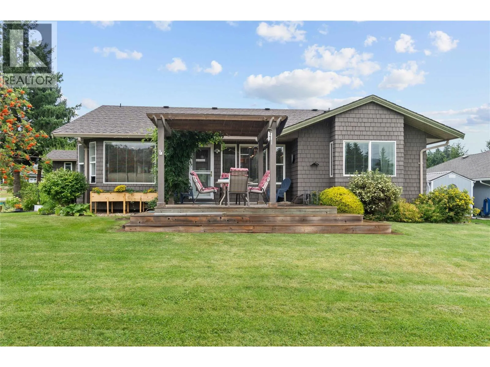 Welcome to this beautiful 2-bedroom plus den, 2-bathroom rancher nestled in the desirable Shuswap Lake Estates community. Backing directly onto the golf course, this home offers peaceful views and a lifestyle of comfort and convenience. Inside, you'll find a bright, open layout with skylights in the kitchen, main bathroom, and front entry that fill the space with natural light. The kitchen opens to both a dining area and living space, creating an ideal flow for entertaining or everyday living. The den provides a perfect flex space for a home office, hobby room, or guest area. Step outside and enjoy the outdoors from any of the three lovely decks, perfect for morning coffee or evening relaxation. The fully irrigated yard is easy to maintain, and the powered garden shed adds extra functionality. A crawl space offers additional storage, while the double garage provides ample room for vehicles or tools. Located just minutes from shopping, dining, and Shuswap Lake beaches, this property combines quiet living with easy access to amenities. Whether you're downsizing or looking for a comfortable, single-level home in a sought-after neighborhood, this one checks all the boxes. (id:27476)