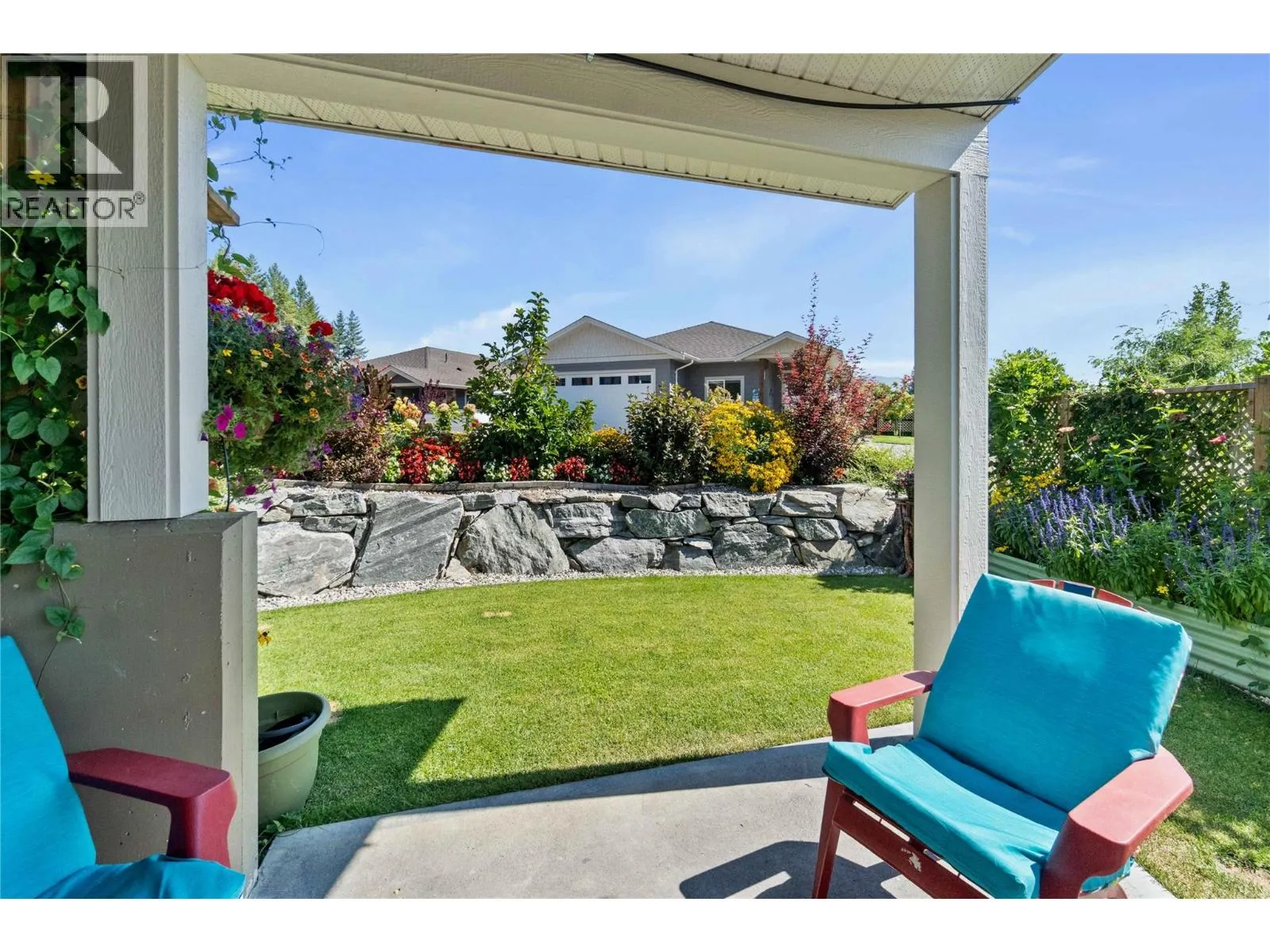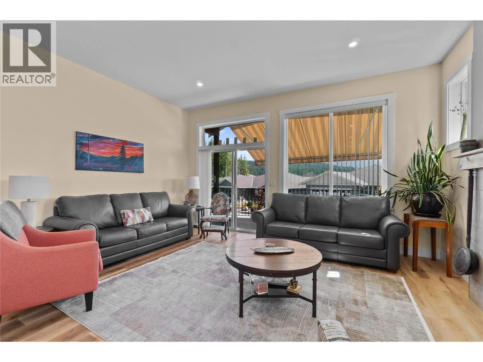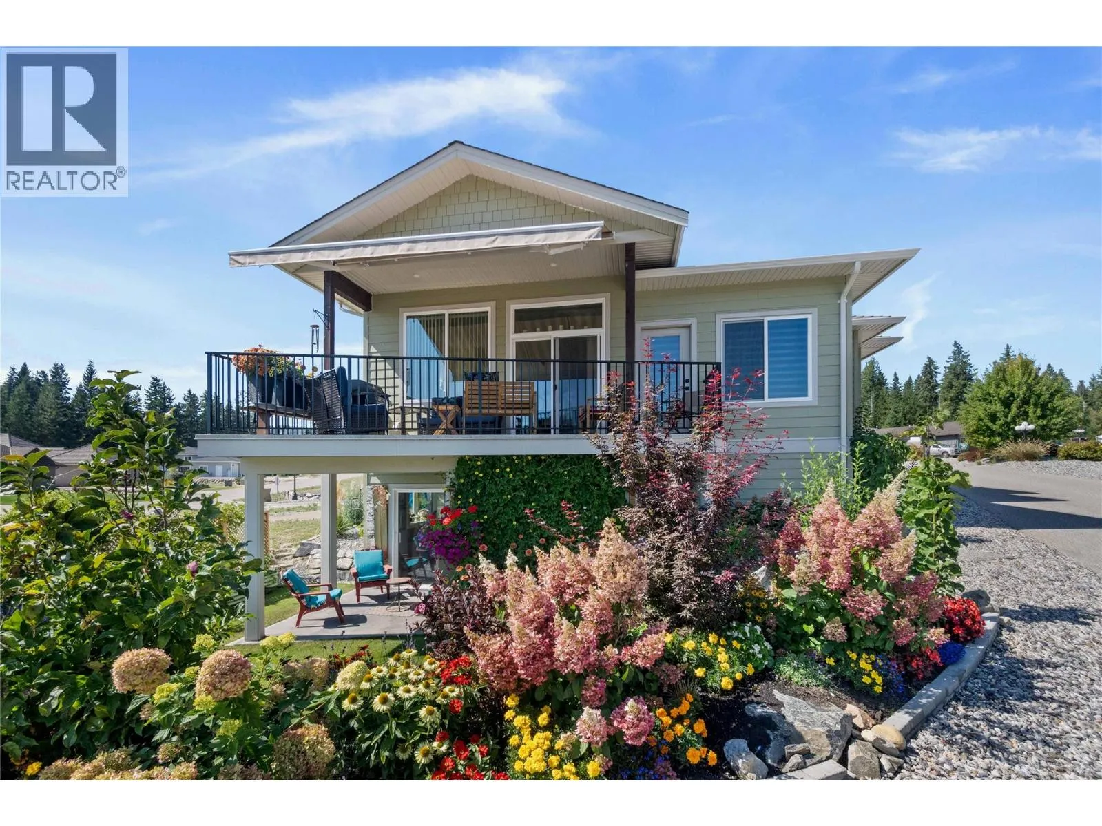 Like-New Home in Sought-After Blind Bay Community. Welcome to this immaculate 3-bedroom, 3-bathroom home located in the desirable Autumn Ridge, a newer 55+ bare land strata development in Blind Bay. Nearly new, this home offers all the modern conveniences in a bright, open-concept layout. The main living area features a spacious kitchen with a large island, stone countertops, and stainless steel appliancesâperfect for entertaining. The adjoining dining area easily accommodates a full-size table, and the living room boasts a cozy gas fireplace and access to a covered deck with a motorized awning for added shade. Convenient main floor laundry is tucked away in the mudroom off the double garage. The primary bedroom, just off the living room, includes a luxurious 5-piece ensuite, generous walk-in closet, and direct access to the covered deck. The lower level offers a large rec room with patio doors leading to the private backyard, a versatile hobby room with ceiling ventilationâideal for crafts or paintingâa guest bedroom, and an additional 4-piece bathroom. Enjoy a low-maintenance lifestyle close to golf, public beaches, hiking trails, shopping, and dining in this well-kept community. (id:27476)