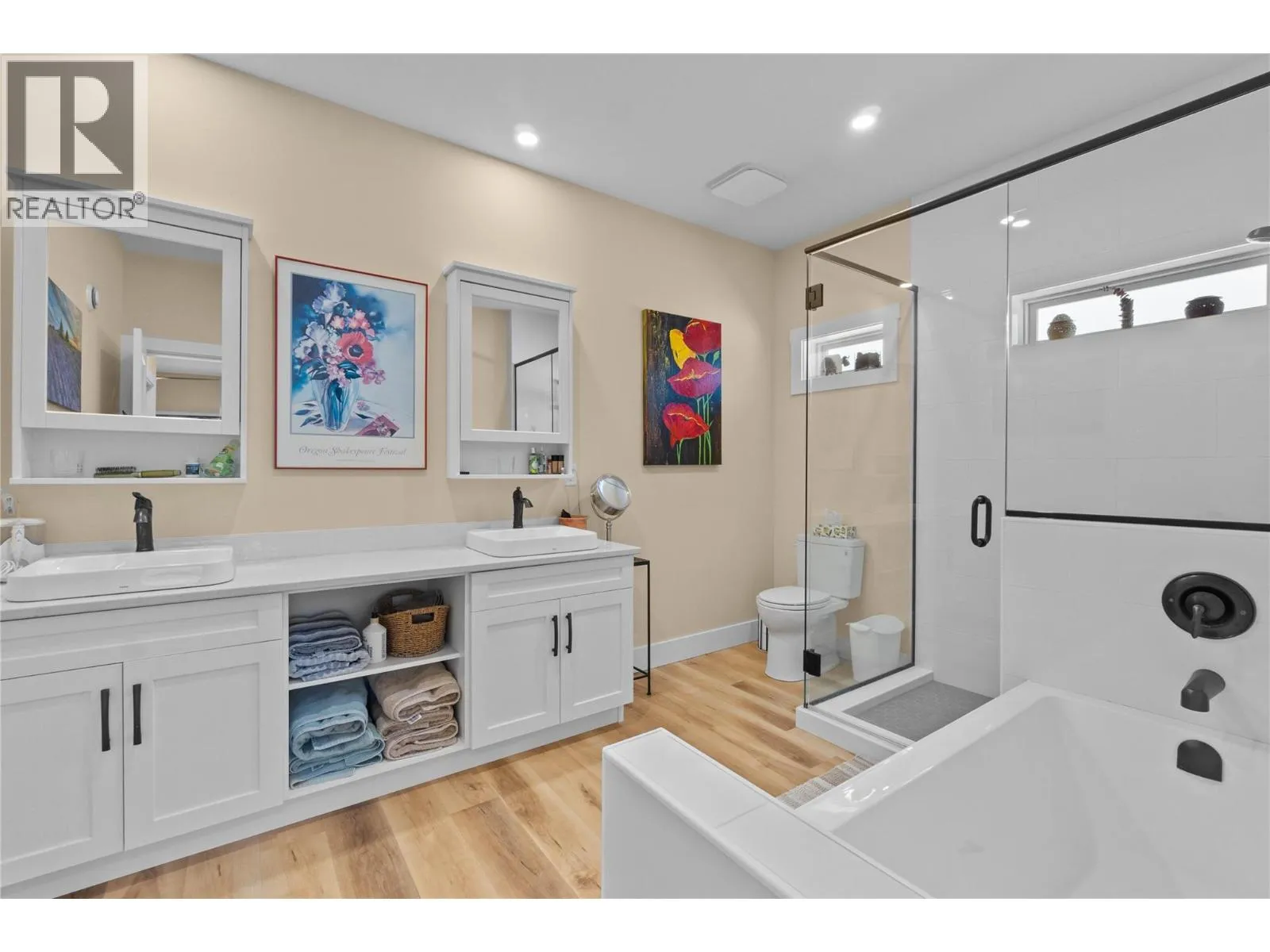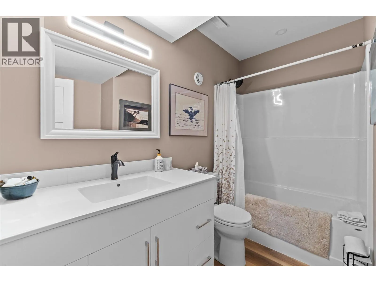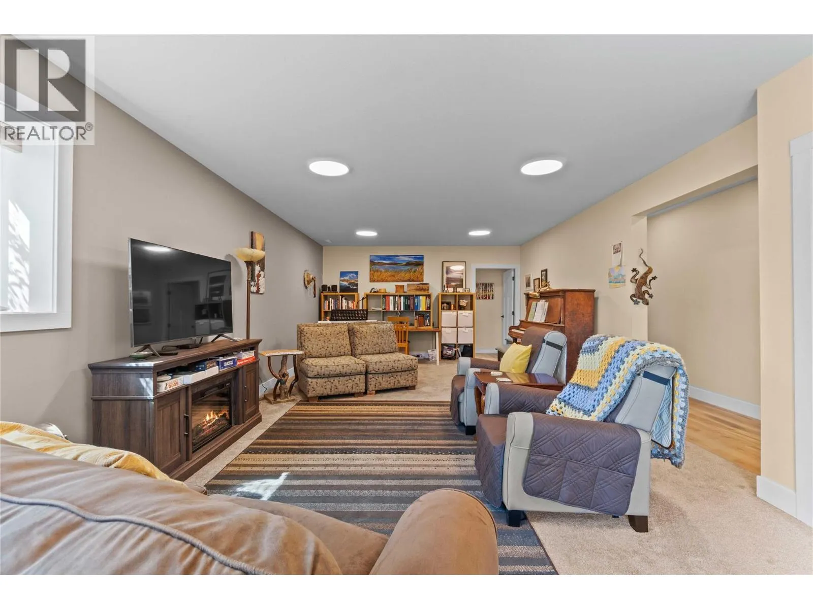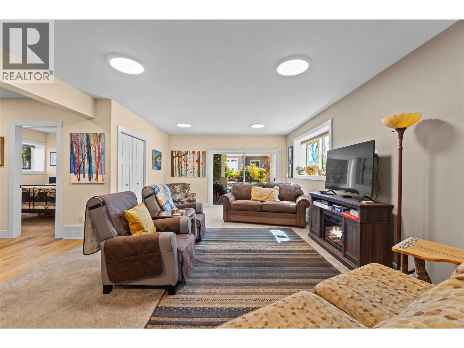 Like-New Home in Sought-After Blind Bay Community. Welcome to this immaculate 3-bedroom, 3-bathroom home located in the desirable Autumn Ridge, a newer 55+ bare land strata development in Blind Bay. Nearly new, this home offers all the modern conveniences in a bright, open-concept layout. The main living area features a spacious kitchen with a large island, stone countertops, and stainless steel appliancesâperfect for entertaining. The adjoining dining area easily accommodates a full-size table, and the living room boasts a cozy gas fireplace and access to a covered deck with a motorized awning for added shade. Convenient main floor laundry is tucked away in the mudroom off the double garage. The primary bedroom, just off the living room, includes a luxurious 5-piece ensuite, generous walk-in closet, and direct access to the covered deck. The lower level offers a large rec room with patio doors leading to the private backyard, a versatile hobby room with ceiling ventilationâideal for crafts or paintingâa guest bedroom, and an additional 4-piece bathroom. Enjoy a low-maintenance lifestyle close to golf, public beaches, hiking trails, shopping, and dining in this well-kept community. (id:27476)
