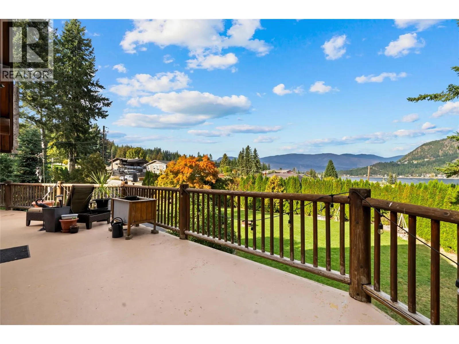 Take the time to consider this spacious 3500 square foot custom log home on the large .42 of an acre fully fenced yard in the heart of Blind Bay to be your new home. This grand home offers plenty of space indoors and out, with 4 bedrooms and 3 full bathroom, attached double garage, over 1200 square feet of decking, plus an additional kitchen for an in-law suite or potential rental income. The impressive great room features a two sided rock fire place that expands from the basement level to the top of the cathedral space. There is a custom hand carved Totem Pole that is framed by the floor to ceiling windows looking out to the lake and mountain views. Centrally located to all amenities, you are with in walking distance to beach access and local dining at the Bayside Marina, and a short drive to shopping and the local golf course. The large fenced yard has a insulated 20 x 10 shed with power for additional storage, or a he/she shed. New PEX plumbing was just installed, and updates over the past few years include furnace, AC unit, metal roof, hot water tank, and some flooring . (id:27476)