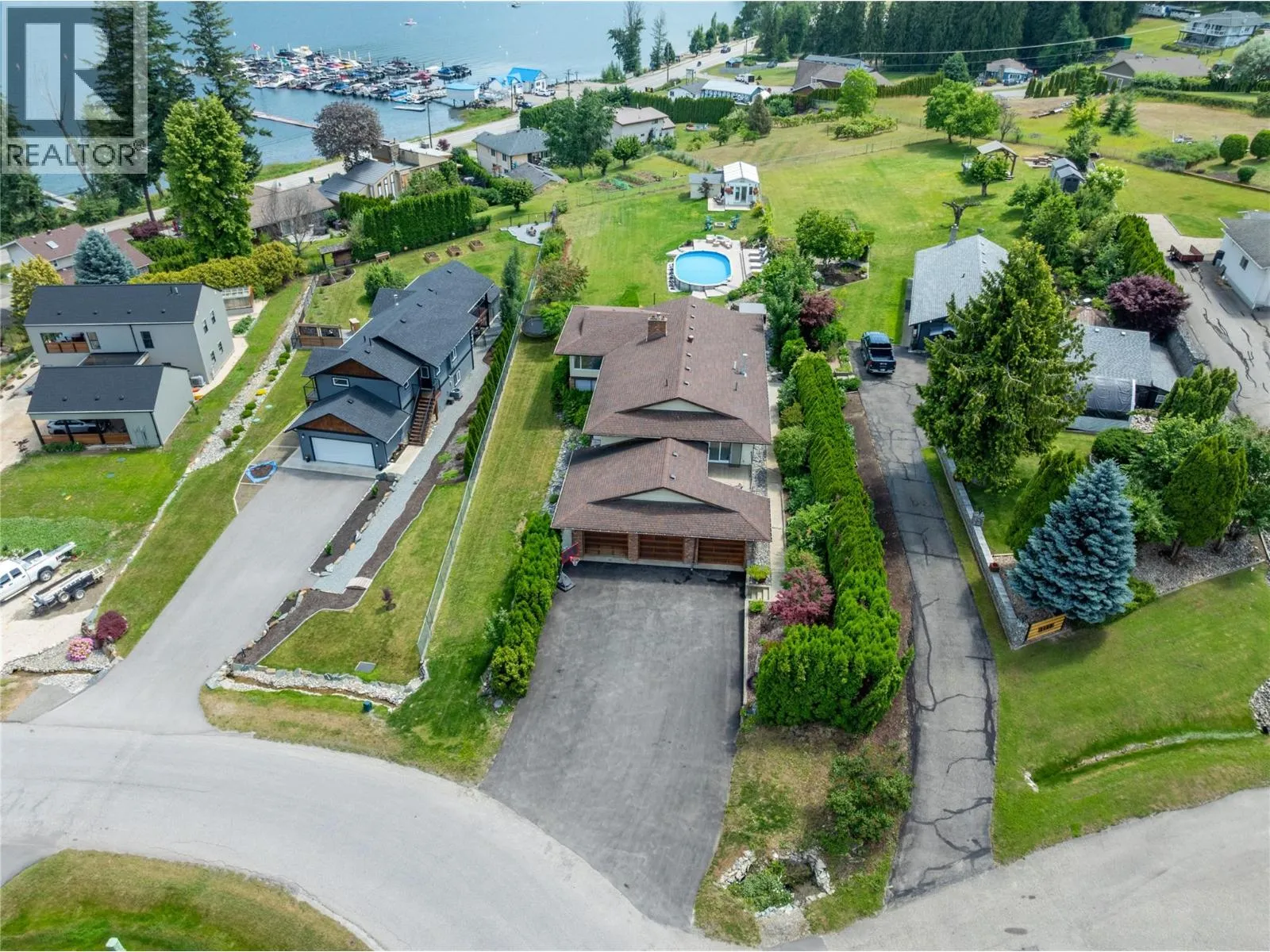 2484 Sunrise Blvdâif it sounds like an address out of a movie, thatâs because it could be. Nestled in one of the Shuswapâs most sought-after neighbourhoods, this home backs onto lakefront properties and offers panoramic lake views, just steps from public beaches and Bayside Marina, with boat launch, moorage, and a popular waterfront restaurant.Enjoy the full lake lifestyleâviews, water access, and year-round beautyâwithout the lakefront price tag.Beyond the amazing location, this property delivers even more: a rare, mostly flat, fully usable half-acre lot with lake, bay, and mountain views, plus all-day sun exposureâoffering the private, backyard resort vibe youâve been dreaming of.This 3,354 sqft home has 4 beds, 3 bath, and 2 kitchens, ideal for hosting guests or in-laws.The fully renovated upstairs kitchen is a chefâs dream, featuring Renaissance cabinetry, a huge quartz island, new appliances, gas double oven with pot filler, walk-in pantry, and a coffee bar. Updated flooring and lighting adds a fresh, modern feel. Outside: 18x33 pool, multiple decks, a hot tub for evening soaks, and a peaceful greenhouse. The home office includes wall-to-wall cabinetry and a cozy window seat.Additional features include HW on demand, new gas fireplace, and tons of storage.Value like this is hard to find, with a triple garage and a large, flat, newly paved driveway that gives you all the space you need to bring or collect the toys that make lakeside living.Check out the 3D tour and video. (id:27476)