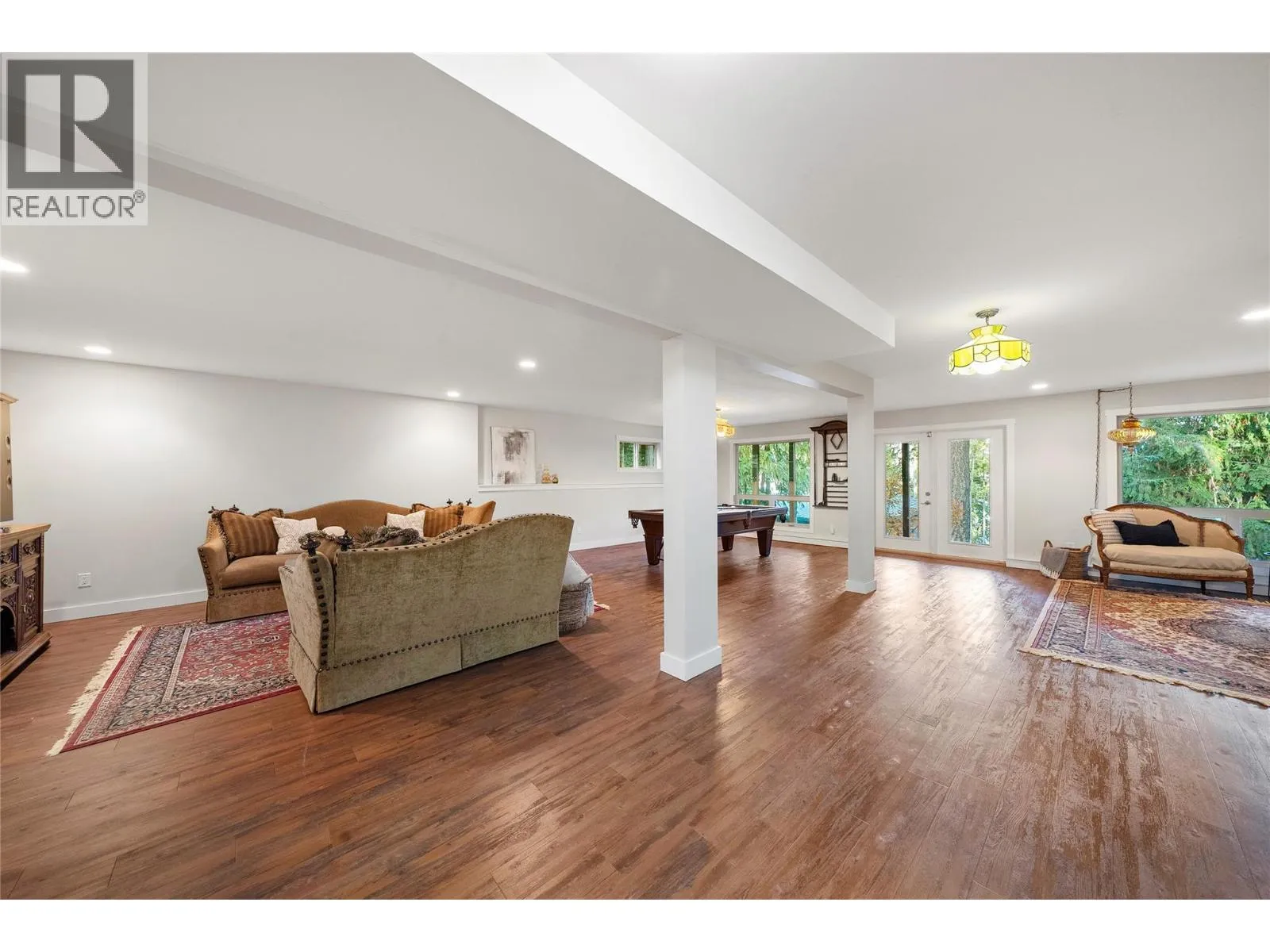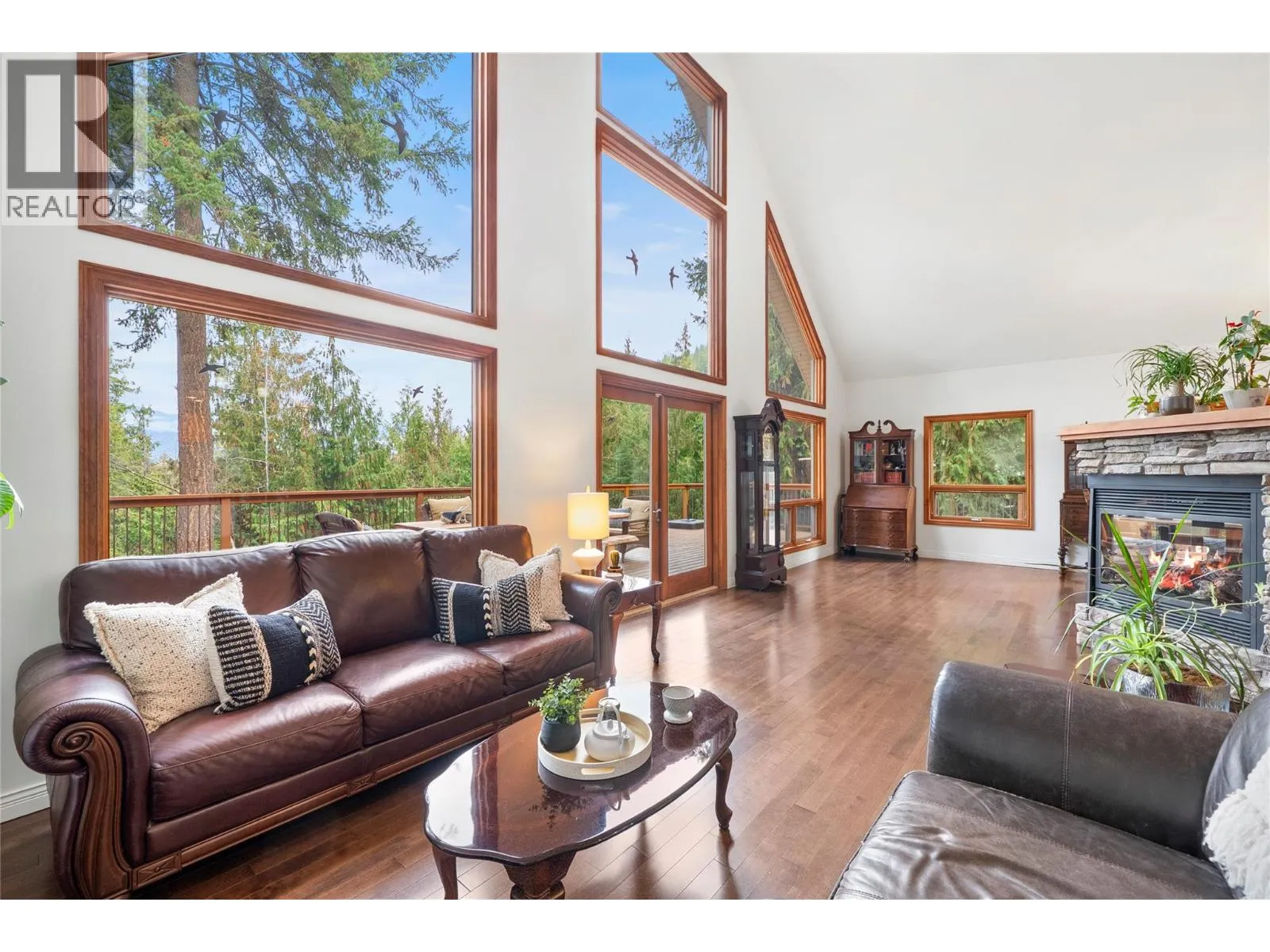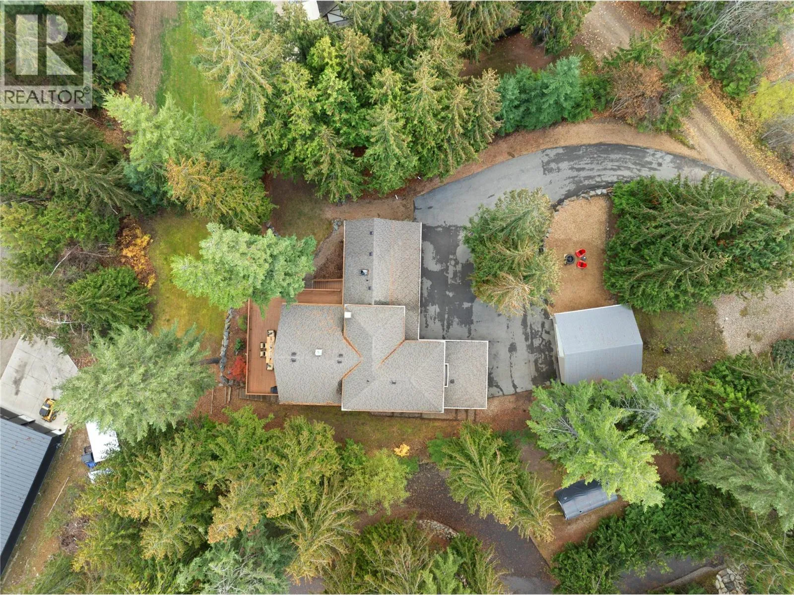 2611 Duncan Road, Blind Bay. The moment you wind down the private driveway and gaze at this chalet-style home, you know it has a feeling of character. Located in the wonderful, quiet, and peaceful neighborhood of McArthur Heights, this oversized .65-acre lot and large home have so much to offer. Double attached garage for your vehicles and a detached workshop for the hobbyist. This home features 5 beds and 4 baths plus a den. Large open downstairs entertaining room and pool table room. The main floor features an open A-frame plan with high ceilings and large picture windows to fully appreciate the wonderful nature of the backyard views and even a peek-a-boo lake view. A grand deck spans the main level plus wraps around one side of the home with stairs going down into the yard. Low-maintenance yard with a lawn area to enjoy the privacy and maybe do a bit of gardening. Inside the home, you can feel the warmth of the heated concrete floors. The kitchen is open plan with a large island and features updated appliances, including a wall oven and microwave Silestone counters, natural gas range, and lots of cabinet space. The 3-sided natural gas fireplace on the main floor gives both the living area and dining area spaces that great ambience. The second floor is a dedicated master suite and ensuite and walk-in closet. With additional bedrooms and bath on the main and downstairs, there is lots of room for family and guests with plenty of privacy and space. Check out the 3D tour. (id:27476)