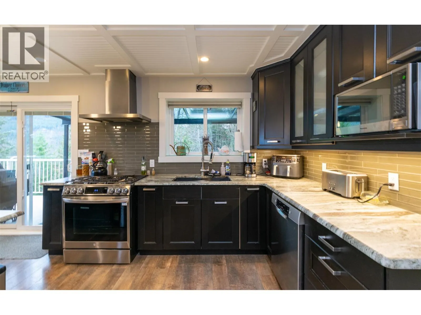 Looking for a home close to the lake with beautiful views, privacy, and ample space for your boat and RV? Look no further. This updated 1981 rancher with a walk-out basement has everything you need. The main floor features large windows showcasing an eagle-eye view of Shuswap Lake, anchored by a cozy new gas fireplace. You'll love the state-of-the-art eat-in kitchen, convenient main floor laundry, and a primary suite complete with an ensuite, walk-in closet, and direct deck access. The walk-out basement offers plenty of room for family and guests with three additional bedrooms, a full bathroom, a storage room, and a second gas fireplace. Step outside to your private oasis featuring a hot tub and a beautifully landscaped yard with custom stonework and a fire pit. The ultimate bonus: Next to the attached garage is an extra-tall shop with a secondary rear door, providing drive-through parking access to the backyard, which also has 15-amp hookup. Unbeatable location just minutes to beaches, boating, and hiking. The perfect recreational basecamp or year-round abode! (id:27476)