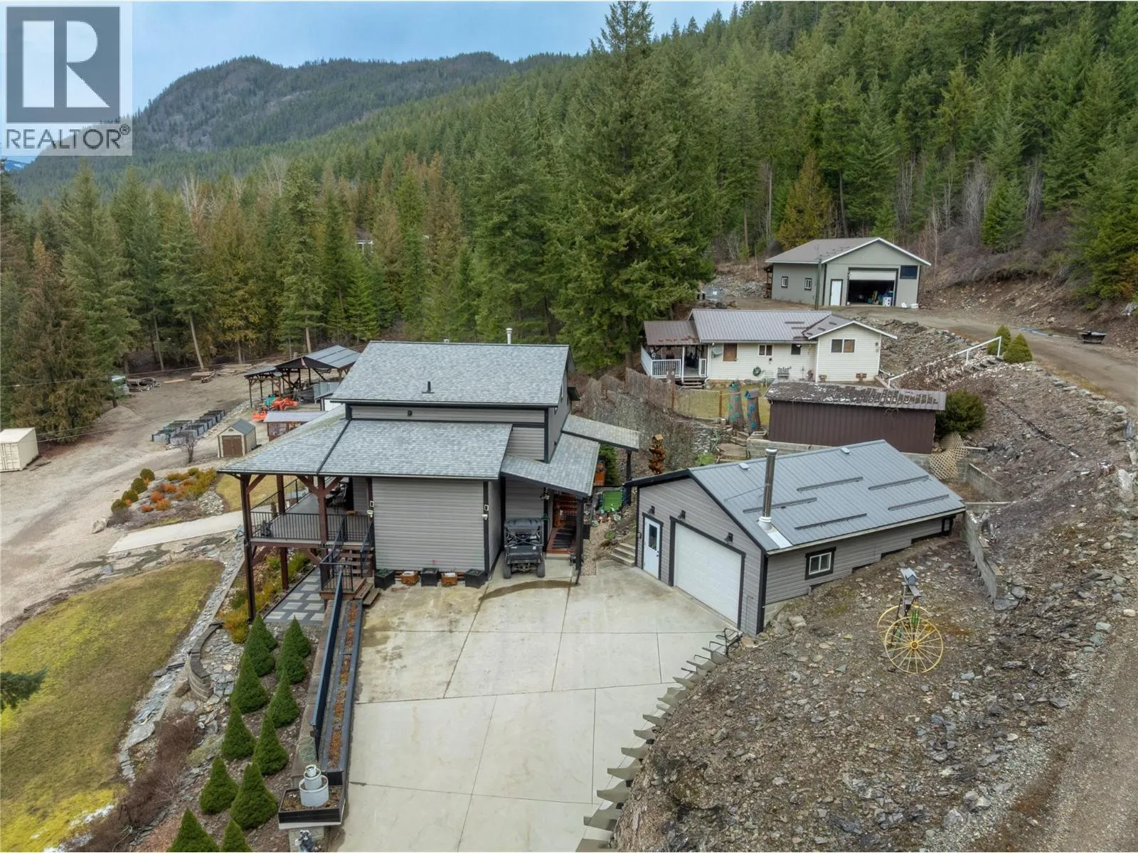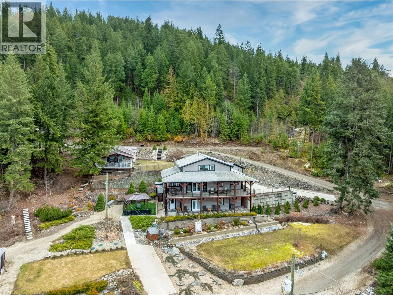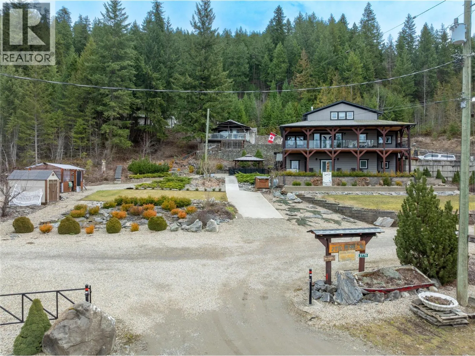 2770 Perris, When you got over 5 acres, a big house, a guest cottage, a detached garage, a big shop and a lakeview, you really have to consider what else is there? Because this place has it all! Custom built home in 2016, just a hop and skip across the road to the lake and public boat launch. Walking distance to the store and restaurants. This property has so much to offer in terms of a full time residence or your incredible Shuswap vacation home with plenty of room for your friends to bring their RV's and boats for a visit. This 5 bedroom 4 bath main home plus 2 bed 1 bath guest house is full of unique features and with a covered private balcony facing west the sunsets are something you won't get tired of. A brand new septic was professionally upgraded and installed in 2025. The basement has a kitchenette sink and Fridge perfect for guests. Roughed in floor heating in basement as well. 2 pole sheds one is 30x32 and 14x30. Fire Smart program done around the home and yard to make sure it's all up to date. Cabin has its own septic. Water is a lake intake shared by 3 homes and has a UV filtration system. Finding a property like this that has so much room and so many features and well looked after with all the toy storage and accommodation and close to the lake is a rare find. Cottage has tenants so 24 hours notice is needed. (id:27476)