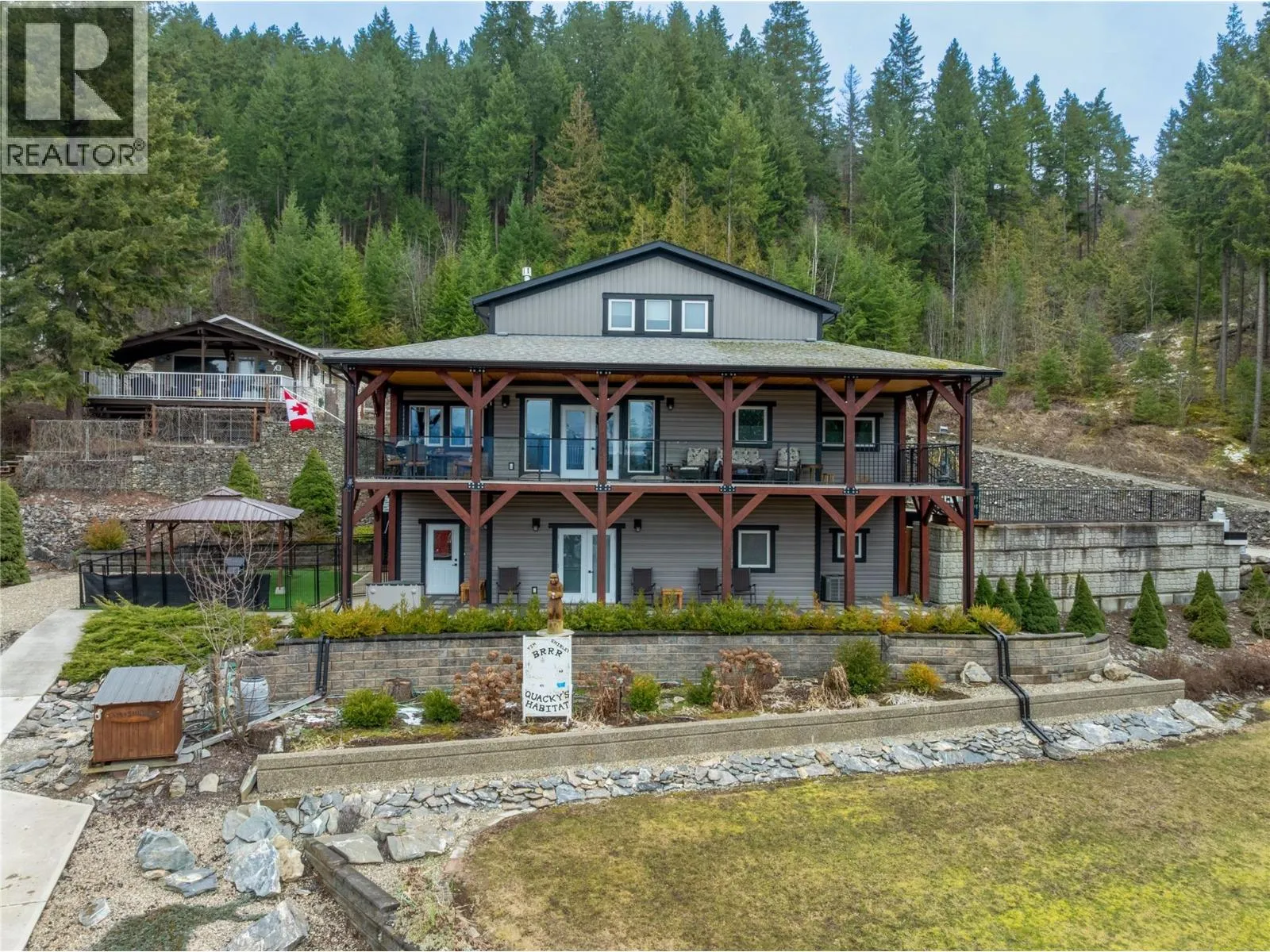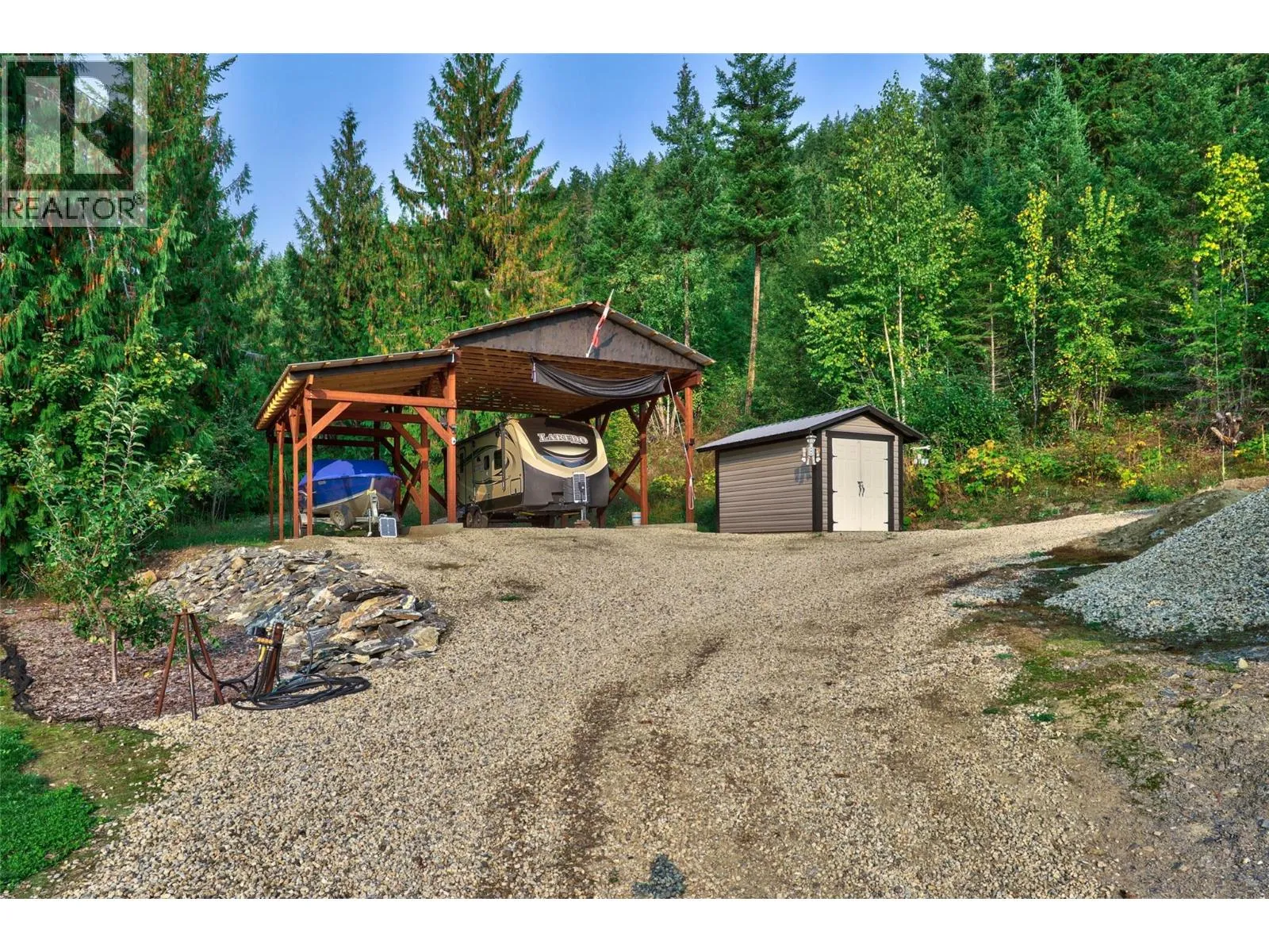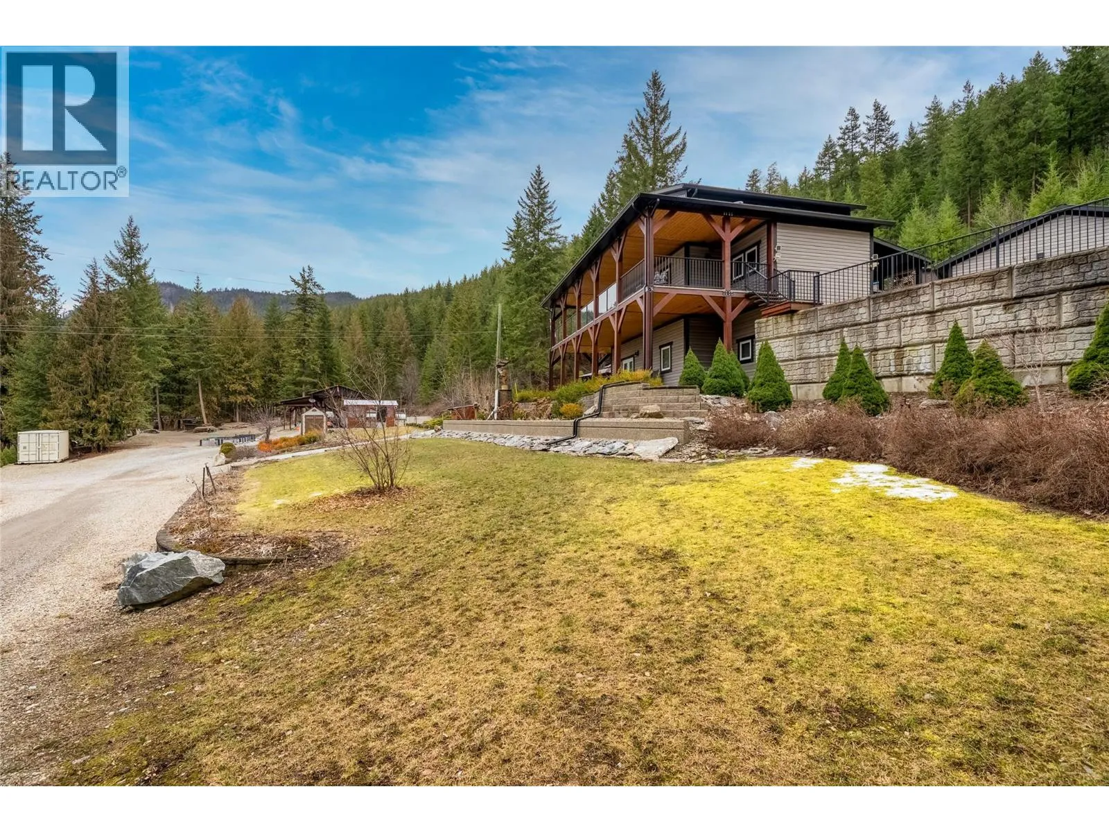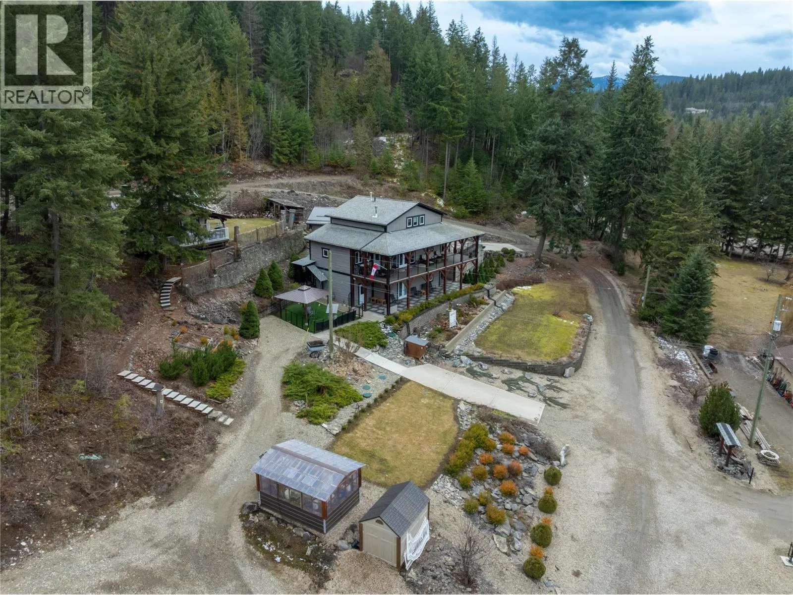 2770 Perris, When you got over 5 acres, a big house, a guest cottage, a detached garage, a big shop and a lakeview, you really have to consider what else is there? Because this place has it all! Custom built home in 2016, just a hop and skip across the road to the lake and public boat launch. Walking distance to the store and restaurants. This property has so much to offer in terms of a full time residence or your incredible Shuswap vacation home with plenty of room for your friends to bring their RV's and boats for a visit. This 5 bedroom 4 bath main home plus 2 bed 1 bath guest house is full of unique features and with a covered private balcony facing west the sunsets are something you won't get tired of. A brand new septic was professionally upgraded and installed in 2025. The basement has a kitchenette sink and Fridge perfect for guests. Roughed in floor heating in basement as well. 2 pole sheds one is 30x32 and 14x30. Fire Smart program done around the home and yard to make sure it's all up to date. Cabin has its own septic. Water is a lake intake shared by 3 homes and has a UV filtration system. Finding a property like this that has so much room and so many features and well looked after with all the toy storage and accommodation and close to the lake is a rare find. Cottage has tenants so 24 hours notice is needed. (id:27476)