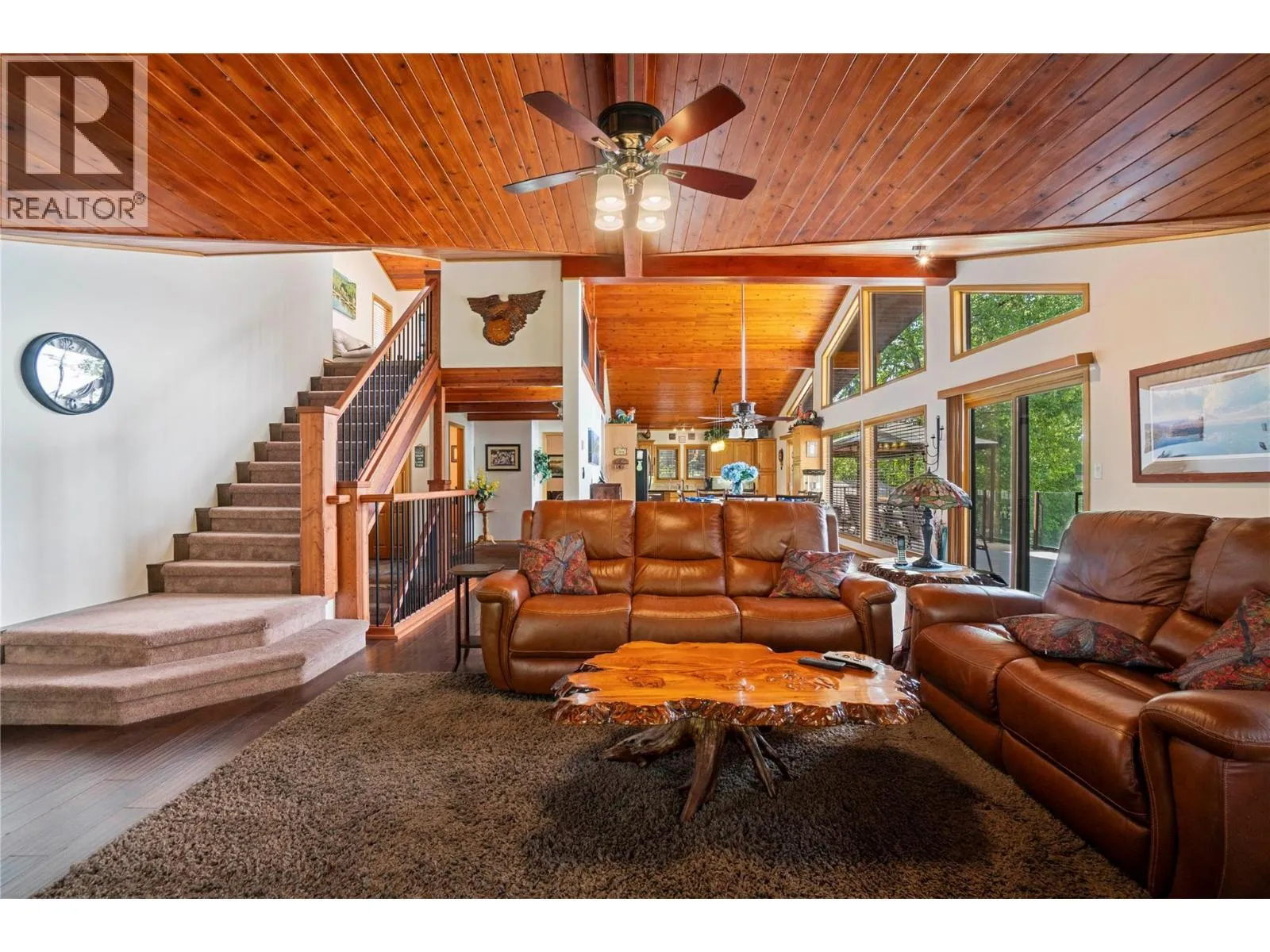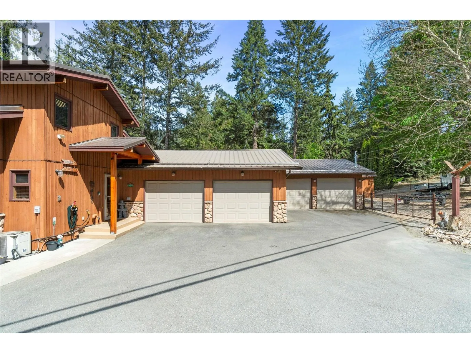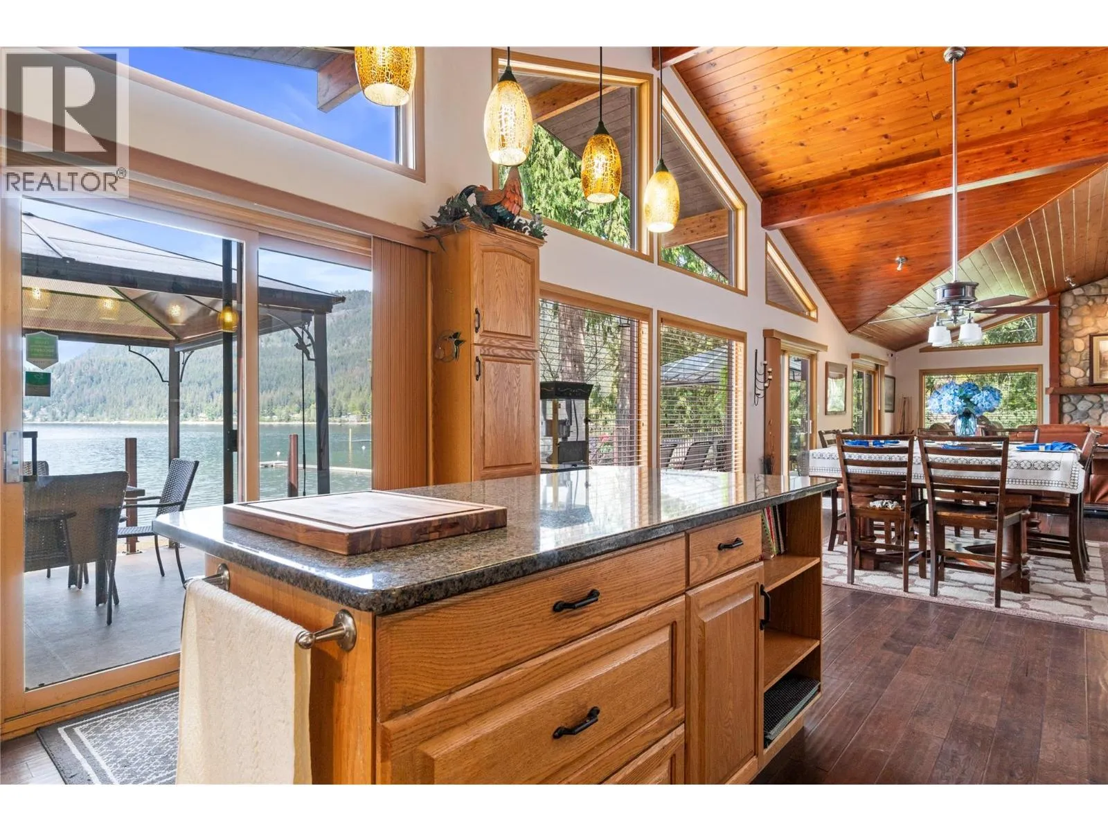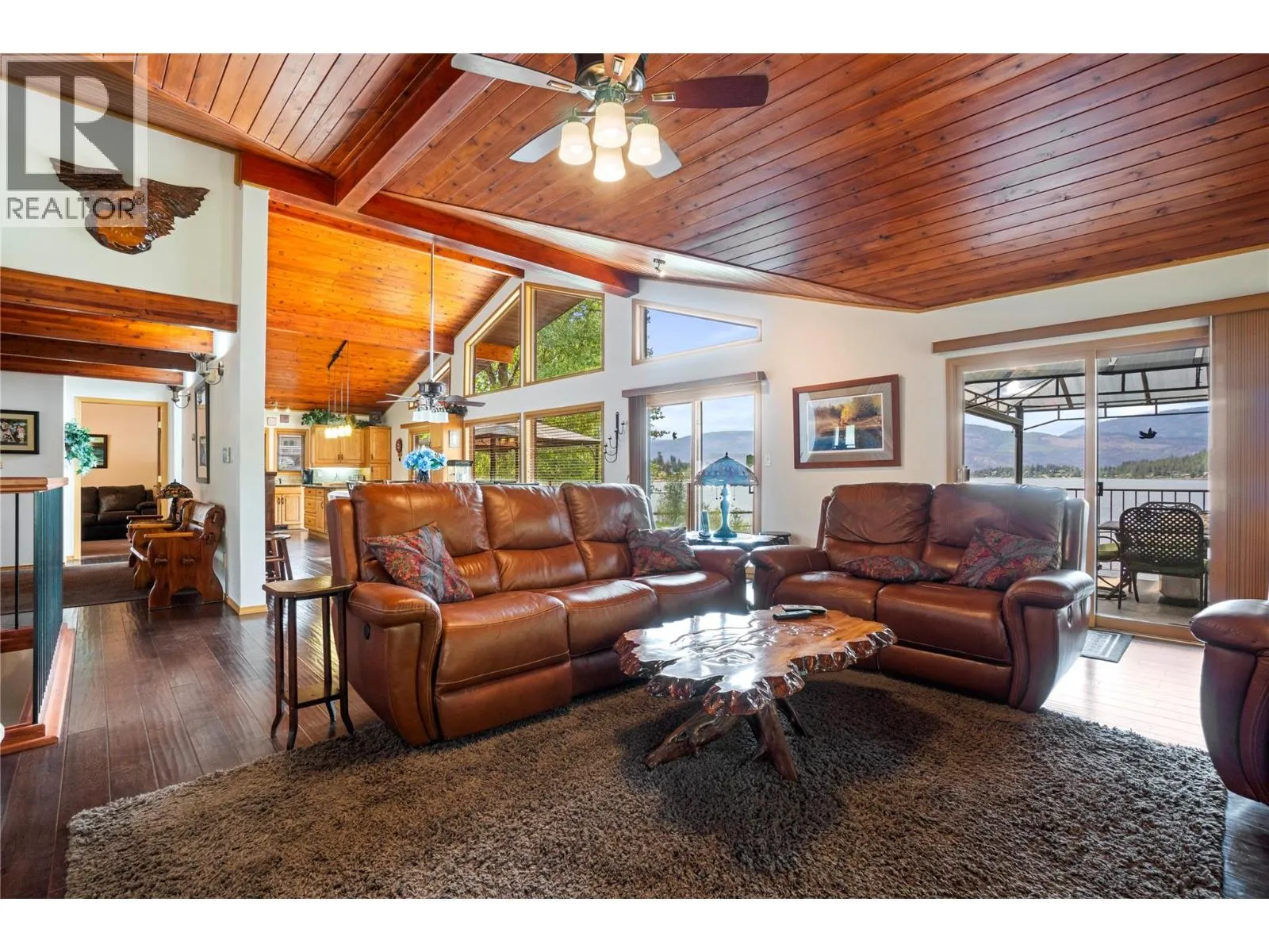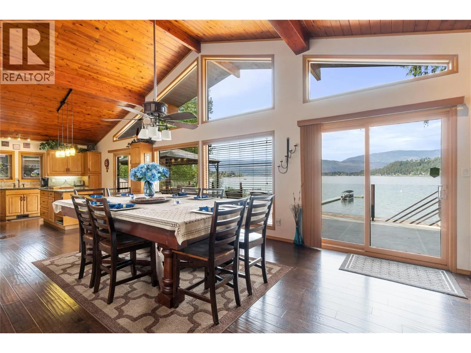 Conveniently located near local amenities, dining, and just 20 minutes to Salmon Arm, this Blind Bay waterfront property presents a rare opportunity to secure a prime position on Shuswap Lake, set along 121 feet of soft, weedless sandy beach with a registered 130-foot dock. Ideally positioned to capture views of Copper Island and the surrounding lake from nearly every room, including all bedrooms with sliding doors to the deck, along with the living room, kitchen and dining area featuring three access points to the expansive balcony. This well-cared-for 2,642 sq ft custom home offers vaulted cedar ceilings, handcrafted cedar doors, 4 bedrooms and 3 bathrooms, plus a 280 sq ft self-contained guest cottage. The main floor showcases engineered hardwood and an open, comfortable living space, with a kitchen appointed with granite countertops, oak cabinetry and quality appliances. A 1,408 sq ft four-bay drive-through garage with acrylic pebble flooring is complemented by two detached garages. The property includes lake intake water, private septic, parking for 6+ vehicles, and secure fenced storage for boat, trailer or RV, along with a detached boathouse and shed. Enjoy a lakeside fire pit, level grassy play area, pristine sandy beach and a spacious glass-railed balcony in an exceptional year-round waterfront residence. (id:27476)