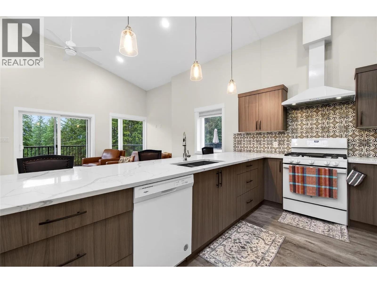 Beautiful built, energy efficient 2022 rancher with a basement. This bright home has lake and mountain views in the desirable Cedar Heights community of Blind Bay. The functional layout has the primary bedroom on the main floor, an open-concept kitchen with beautiful light, vaulted ceilings, a natural gas stove, quartz countertops and a covered deck. Downstairs the family room features a direct vent, free-standing gas stove, creating a cozy ambiance for gathering. Roughed-in plumbing ready for a wet bar installation in the family room, ideal for entertaining or make it an Air BnB! This Launch Construction home has 8-inch Insulated Concrete Form exterior walls that provide superior insulation, contributing to significant energy savings as well as Milgard energy-efficient windows featuring Low-E coated panes to enhance thermal performance and comfort. High-efficiency natural gas furnace and on-demand hot water system. Outside features Hardie plank siding and Integrity Installed Roof with limited lifetime warrantied IKO shingles ensure long-lasting protection. Attached heated garage with a 200-amp service panel; additional 100-amp panel in the basement. Roughed-in 60-amp breaker on the basement's exterior wall, suitable for a hot tub or RV. Walk to the beach through the trails, or up to the cedar heights centre. This home is in a wonderful location for both everyday living and vacation! (id:27476)