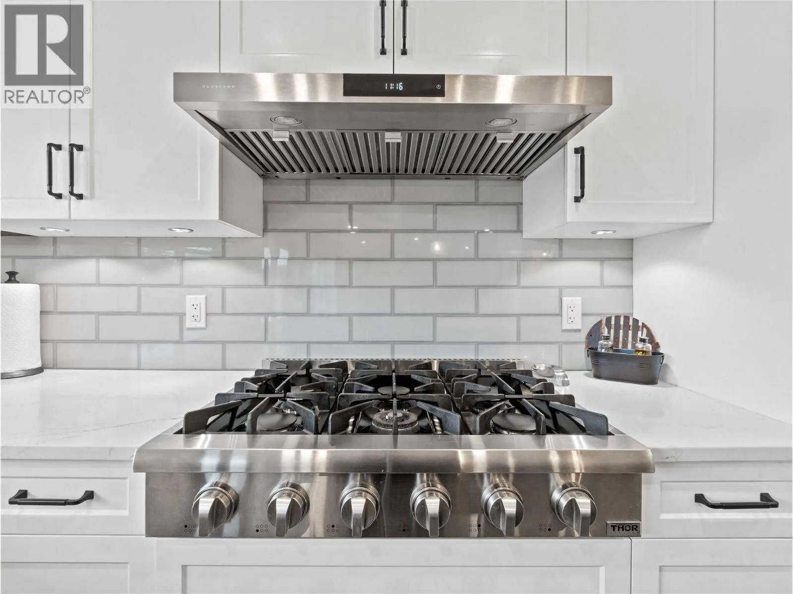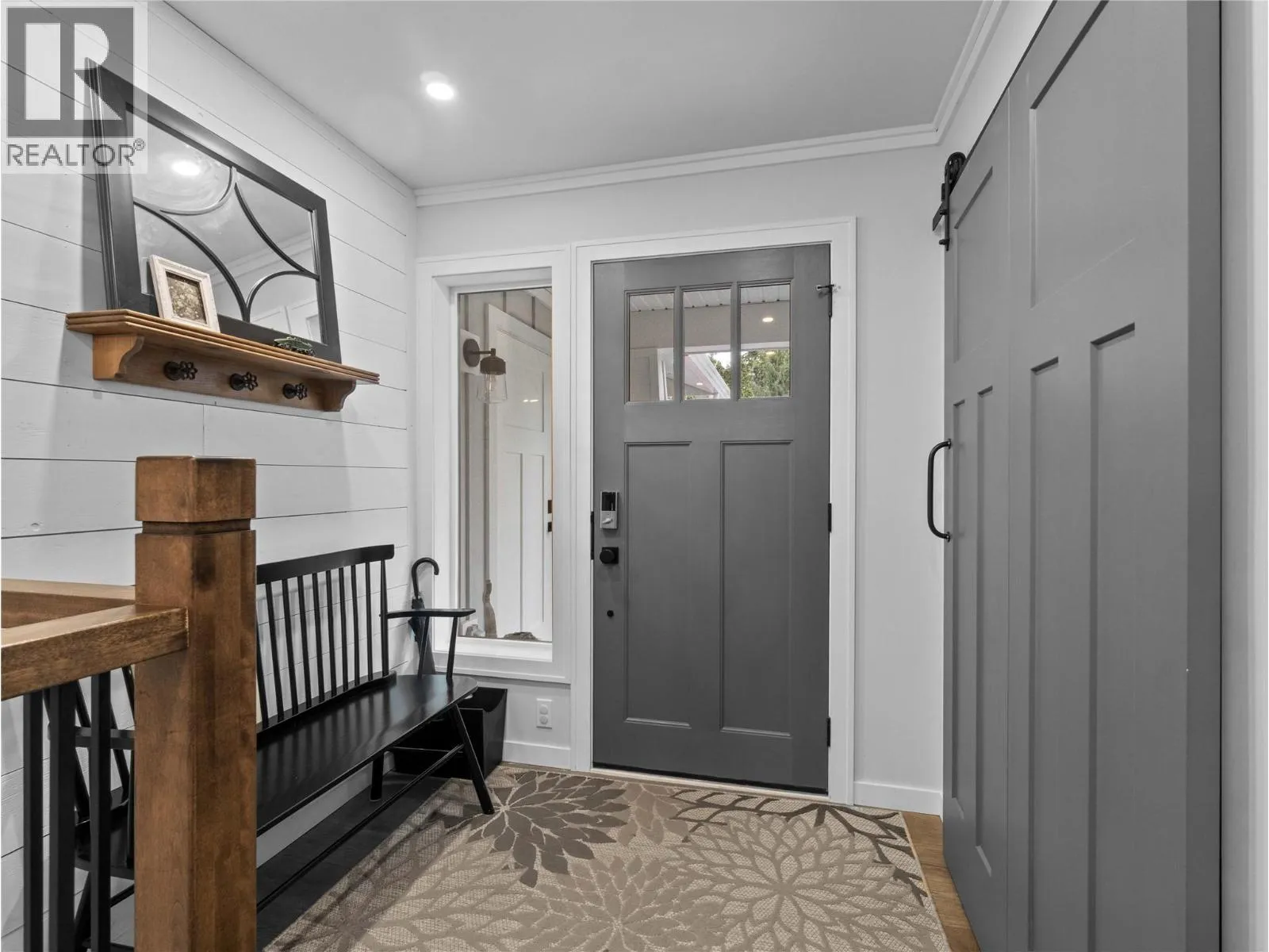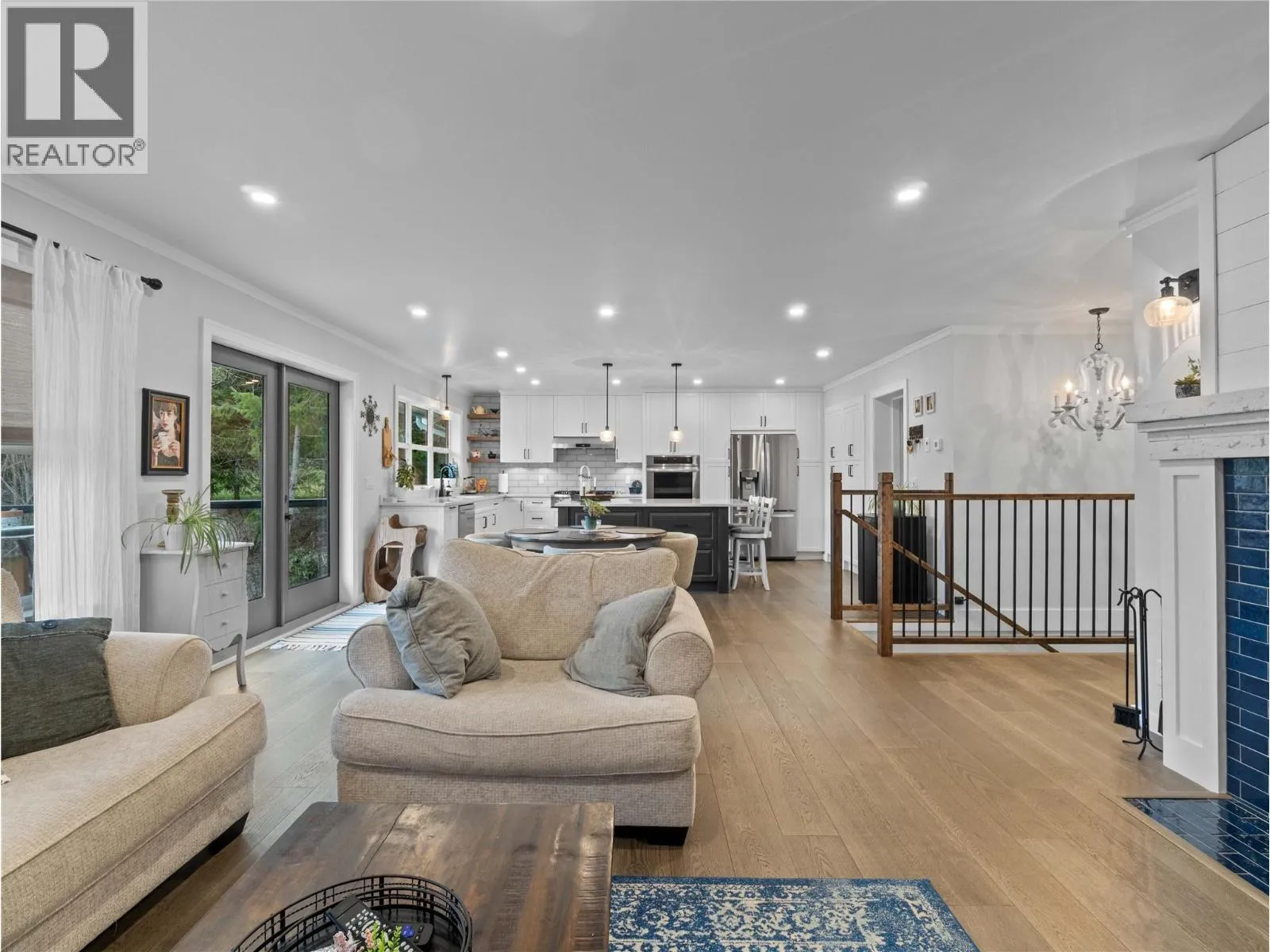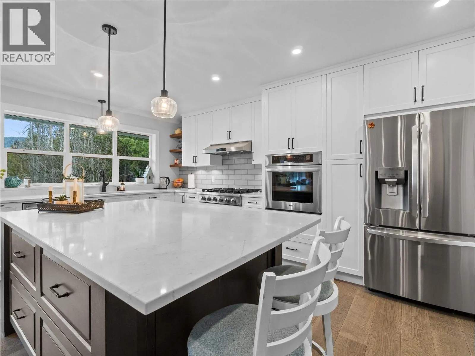 Step into this beautifully designed modern farmhouse, where style, function & flexibility come together on a stunning 0.51 acre landscaped property. From the inviting covered front porch to the thoughtfully finished interior, this home offers a warm & welcoming feel throughout. The heart of the home is the impressive kitchen, featuring stainless steel appliances including a wall oven & 6-burner gas range, large island & abundant pantry storageâperfect for both everyday living and entertaining. The open concept main living area is anchored by a striking tiled, wood-burning fireplace, while easy access to the spacious back deck (with gas BBQ hookup) creates seamless indoor-outdoor living. A generous mudroom & laundry space off the garage, complete with a sink and ample storage. The primary bedroom offers a peaceful retreat with a shiplap feature wall, closet featuring a built-in dresser, and a beautifully finished ensuite with a tiled walk-in shower. The lower level provides exceptional versatility, featuring a spacious rec room with a half bathroomâideal as a family room, home office, or additional bedroom space. A self-contained 2 bedroom, 1 bathroom suite with its own entrance, laundry & dedicated parking via laneway access. Outside, enjoy a private, beautifully landscaped yard complete with peach trees, strawberry patch & a storage shed. A truly special property with versatility & thoughtful finishes, this home is ready to suit a variety of lifestyles. (id:27476)