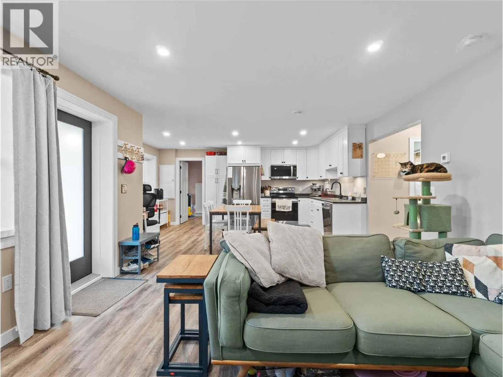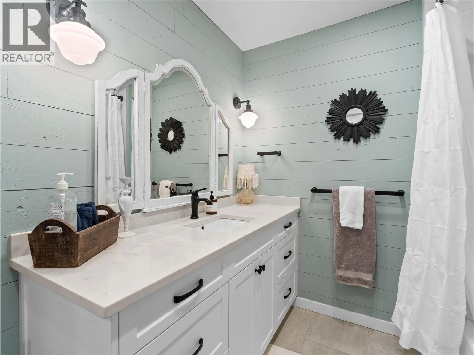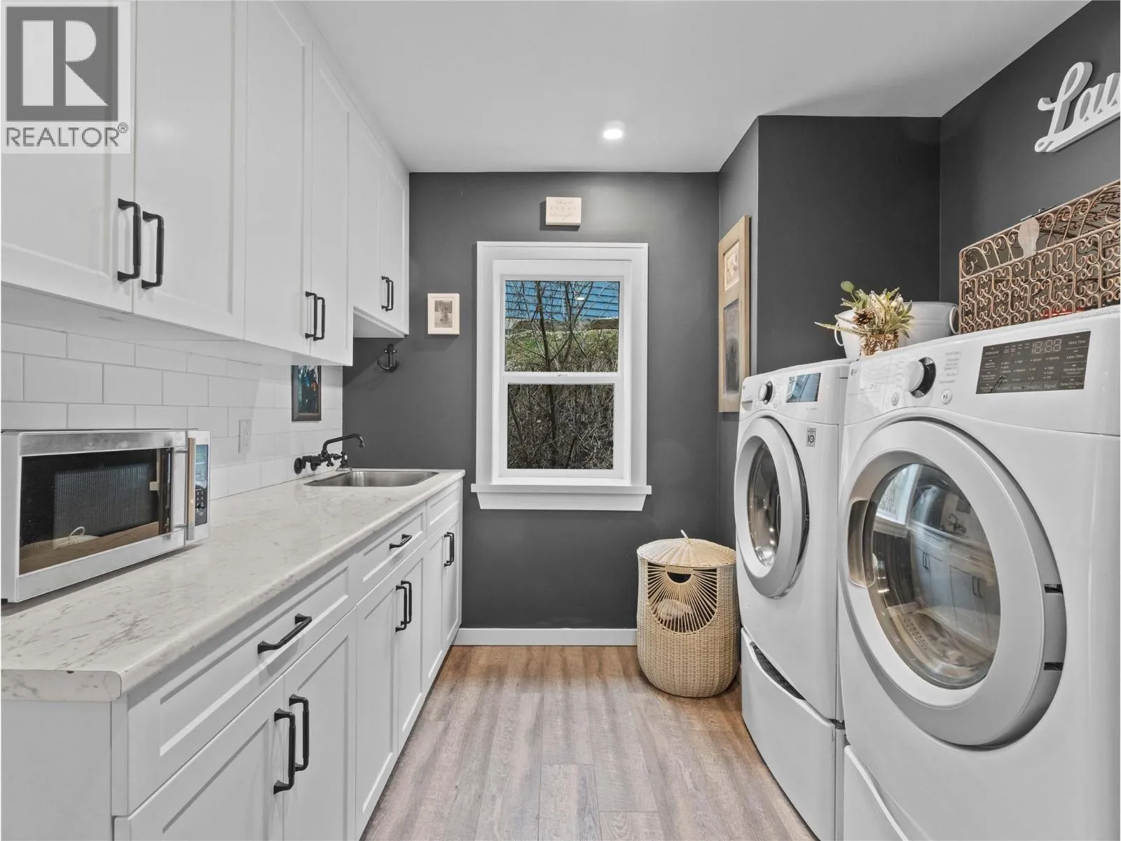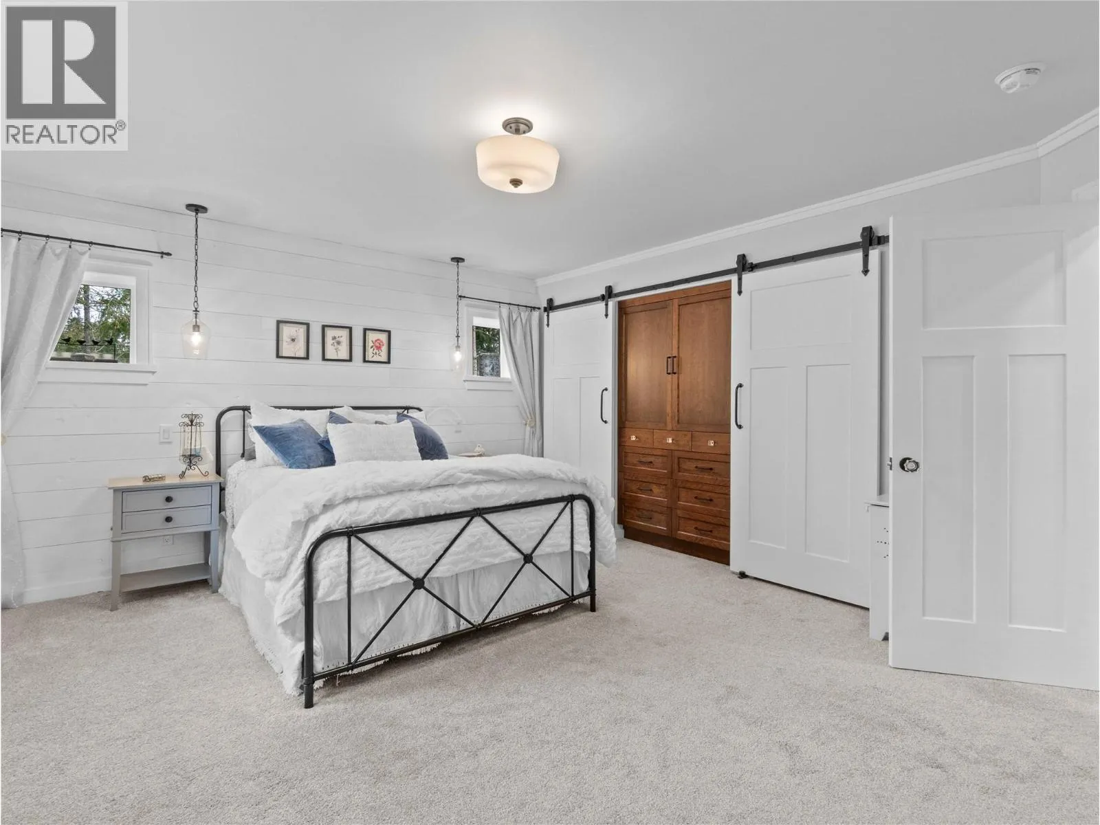 Step into this beautifully designed modern farmhouse, where style, function & flexibility come together on a stunning 0.51 acre landscaped property. From the inviting covered front porch to the thoughtfully finished interior, this home offers a warm & welcoming feel throughout. The heart of the home is the impressive kitchen, featuring stainless steel appliances including a wall oven & 6-burner gas range, large island & abundant pantry storageâperfect for both everyday living and entertaining. The open concept main living area is anchored by a striking tiled, wood-burning fireplace, while easy access to the spacious back deck (with gas BBQ hookup) creates seamless indoor-outdoor living. A generous mudroom & laundry space off the garage, complete with a sink and ample storage. The primary bedroom offers a peaceful retreat with a shiplap feature wall, closet featuring a built-in dresser, and a beautifully finished ensuite with a tiled walk-in shower. The lower level provides exceptional versatility, featuring a spacious rec room with a half bathroomâideal as a family room, home office, or additional bedroom space. A self-contained 2 bedroom, 1 bathroom suite with its own entrance, laundry & dedicated parking via laneway access. Outside, enjoy a private, beautifully landscaped yard complete with peach trees, strawberry patch & a storage shed. A truly special property with versatility & thoughtful finishes, this home is ready to suit a variety of lifestyles. (id:27476)