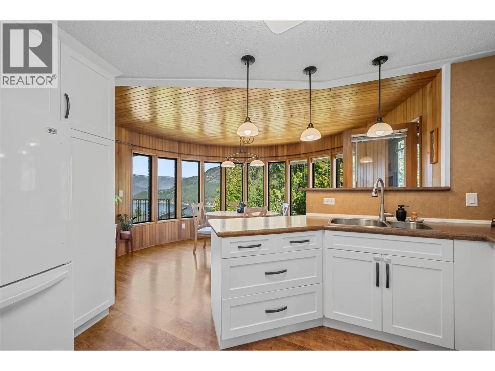 2631 Grandview Place, sometimes the house more than fits the street name and this one is the type of home you name the street after. A unique history is included in this home as it was a show home in the early days of the subdivision to show off the incredible lake views of Blind Bay and its' inspired unique half moon shape design was by the well known Shuswap builder Vic Young. Part of the appeal of this entry level home is its' versatility for many types of owners, it features 2 beds and 2 full baths and laundry on the main floor making it great for new family or great for those who want all living on one floor. A great level large driveway with plenty of parking, included in an oversized double heated garage. And a lower parking area as well. The home is 3 beds and 3 full baths and the end room downstairs has been utilised as another bedroom. Making it an easy 4th bedroom when needed. Lots of living space both downstairs and up with a gas fireplace on each floor. All the windows really allow you to appreciate those lake views. A mostly wrap around deck on the main floor gives you private, quiet places to sit and enjoy the views. The yard has beautiful mature landscaping and the lower parking area also features a great little grass and area for pets and kids and guest parking including an RV hook up. This home has been well cared for and well built and it really shows as this home is in a class of its own. Check out the 3D tour and video. Measurements taken by Matterport. (id:27476)