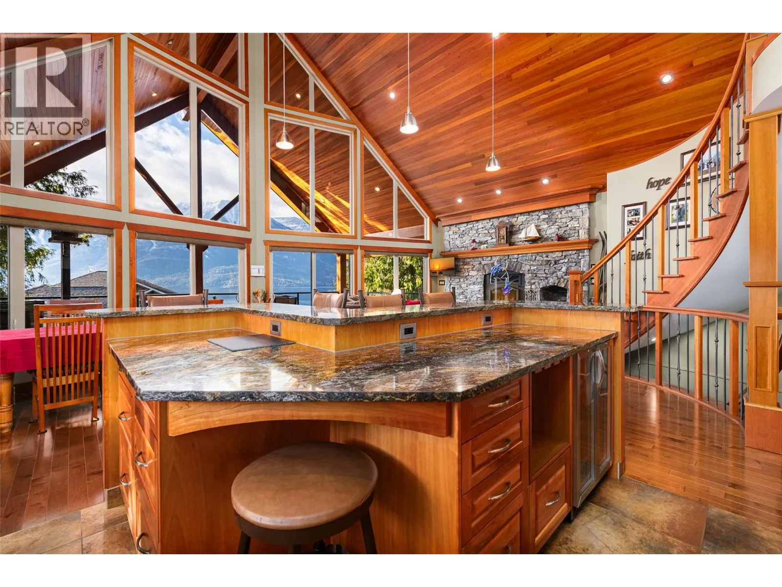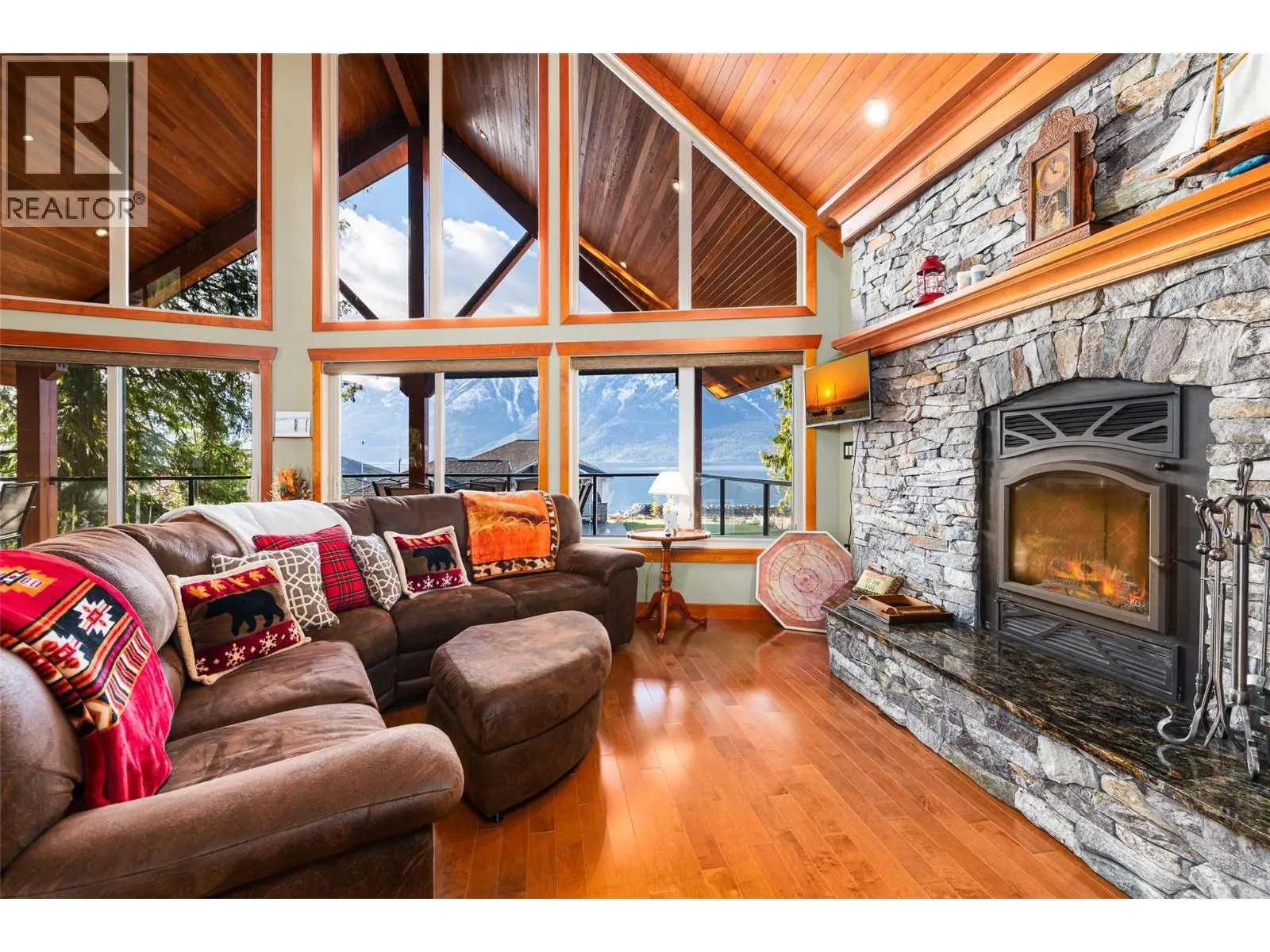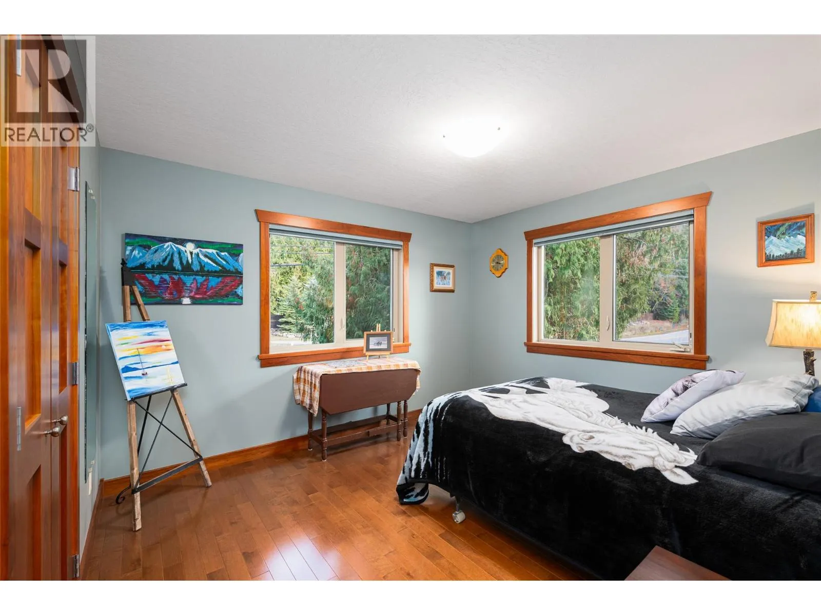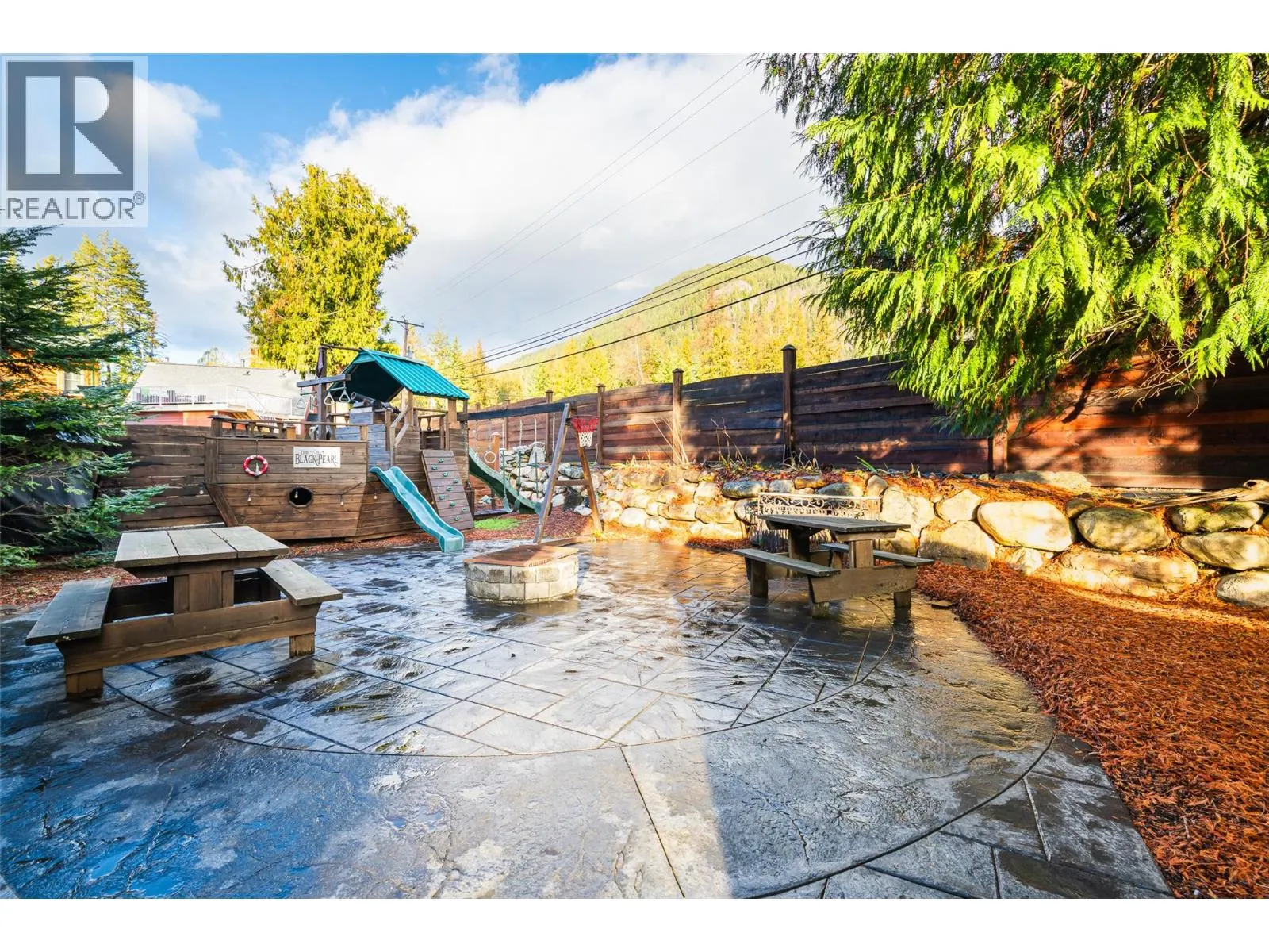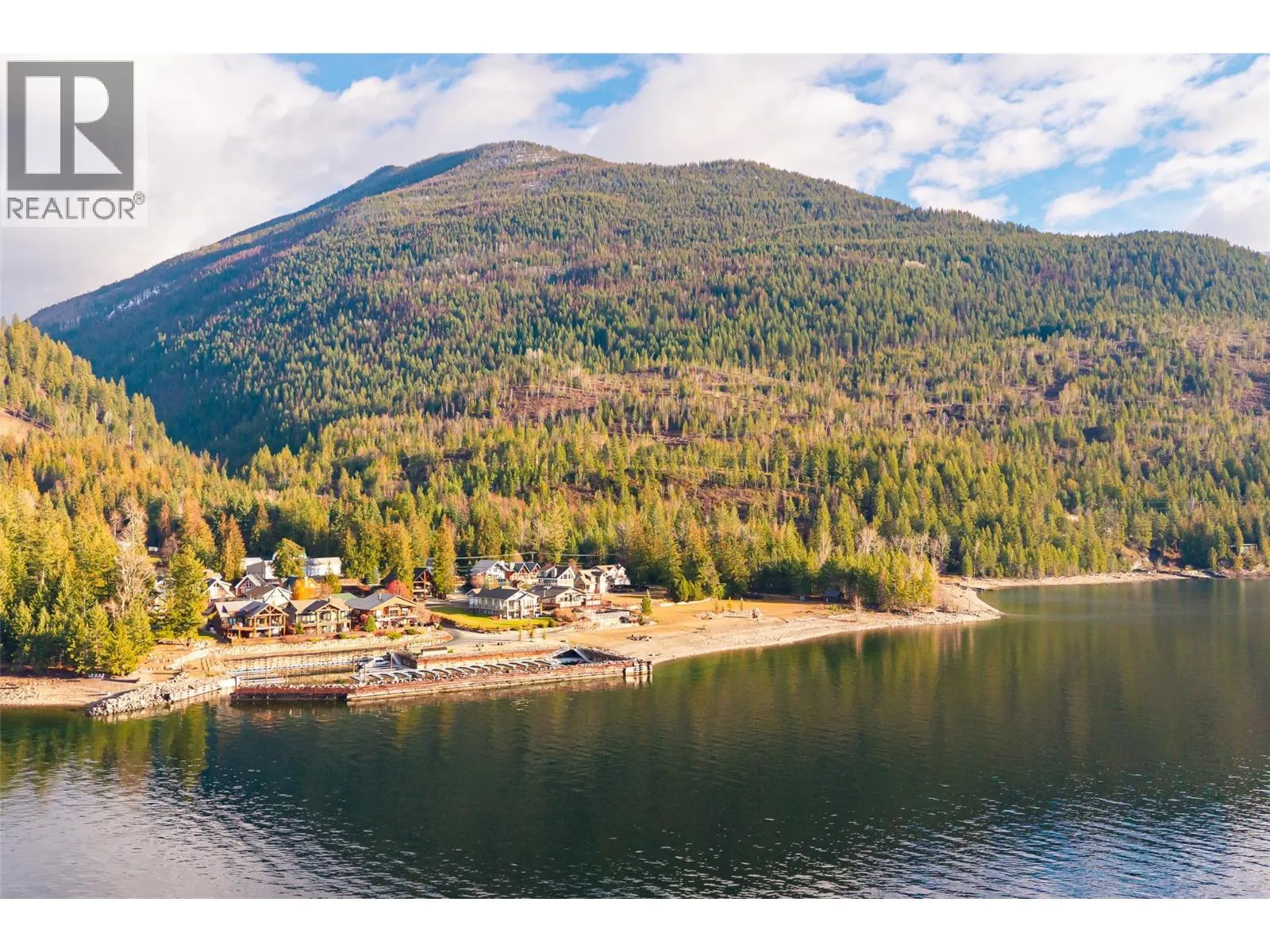 Incredible opportunity to live in the gated waterfront community. Being a shareholder in the Mountain Shores Resort & Marina Cooperative Association provides you with the use of the waterfront beach, the swimming pool, the private marina & fueling station and all other amenities that are exclusive to the Shareholders in this development. Step inside this stunning custom built home constructed in 2010 and prepare to be amazed. With 4 levels of finished living space there is room for your family and friends to come and stay a while. Custom curved staircases, gleaming hardwood floors, soaring vaulted ceilings and amazing views of Kootenay Lake and the mountains beyond. The open concept living room, dining area and kitchen flow out to the covered deck for added outdoor living space. The kitchen has a chef's pantry. The upper level loft is terrific flex space for a den, home office, or just a cozy area to relax and unwind. The primary bedroom boasts a fireplace, walk in closet & full ensuite with custom walk in shower. The lower level of the house is enchanting for kids & grandkids alike with a pirate themed play area that they will love. The theme continues in the backyard with 'The Black Pearl' - a crafted pirate ship play structure like no other. The single garage is used as a home gym however easily converts back. Easy care grounds, a private back patio, and so much more Also included is your own boat slip in the private Marina. Imagine lakeside living for you and your family. (id:27476)