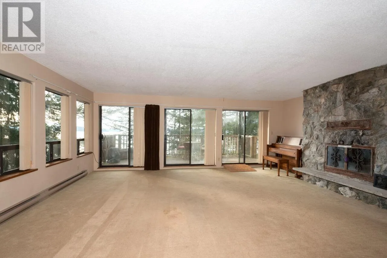 One of Bowen's best westside properties! This incredibly rare 1.2 acre crown-strip waterfront property is uniquely situated just beside quiet Clipper Beach, and faces west for year round sunsets and a mesmerizing marine outlook. Very private, with access to an old boat launch. Humpbacks and orcas are known to swim past, and summer nighttime bioluminescence swims are a must. The home would be a fun project for those who are handy - primary bedrooms either above or on the main, and a 1 bedroom guest suite below with separate access. Lots of deck spaces, and plenty of parking/room for workshops. (id:27476)