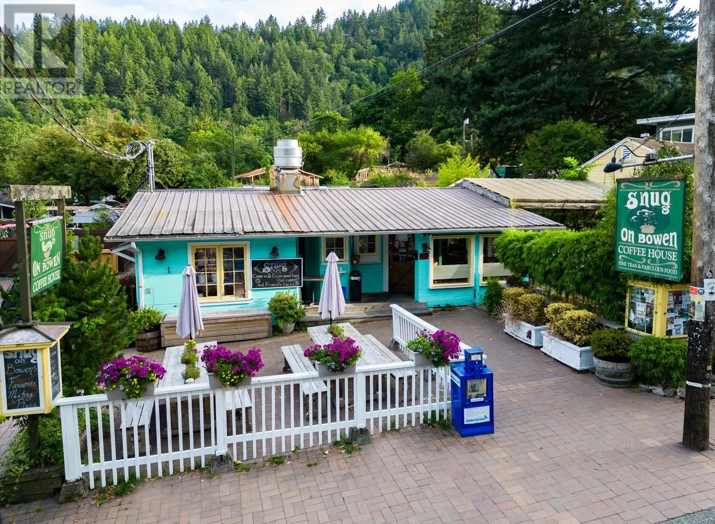 Rare offering and investment opportunity in the heart of Snug Cove. A double sized commercial zoned property within easy walking distance to the ferry, marinas and other Snug Cove amenities. Well established and storied business, The Snug Cafe, currently occupies the property plus a seasonal garden & landscaping business sits behind a fenced and gated area. An on-site housing option with an existing one bedroom, one bath cottage is tucked behind the main building. A prime property for future development into a mixed use space (retail, office, restaurant, guest accommodations, dwelling). The Snug Cafe is also 'For Sale' allowing for added investment options (See: C8068362). There is a new Medical Centre & Community Centre nearby, further adding to the vibrancy of Snug Cove. (id:27476)