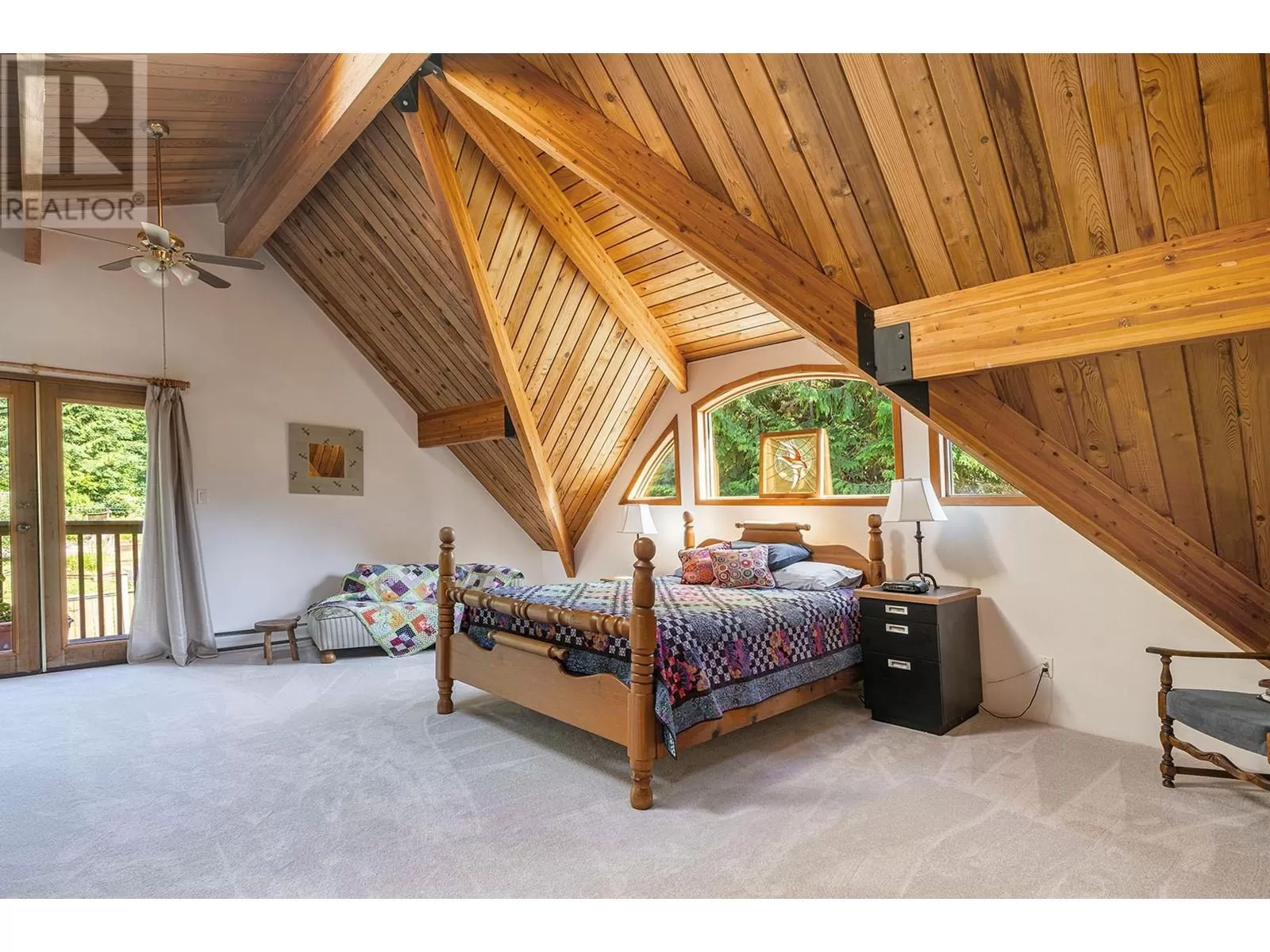 These 3.24 FLAT ACRES, substantially cleared, offer a RARE OPPORTUNITY to live your dream rural Bowen Island lifestyle with a beautiful family home, expansive garden, and oversized 2-car garage with workshop and storage. If good sun exposure is at the top of your list you will love living here. Fruit trees and berry bushes, a variety of roses, flowering shrubs and vines, lavender, ornamental grasses, and much more are thriving in the garden. The meticulously maintained home features a 22´ wall of south-facing windows, with new triple pane glass, plus a family room with solarium windows. Upstairs is the primary suite, with ensuite, balcony, and a loft open to the family room and living room below. Enhancing the indoor/outdoor lifestyle are expansive decks front and rear, with pastoral views of the land and surrounding forest. This property offers functionality for those seeking a serene country retreat with flexible options including ample space for a detached secondary dwelling. (id:27476)