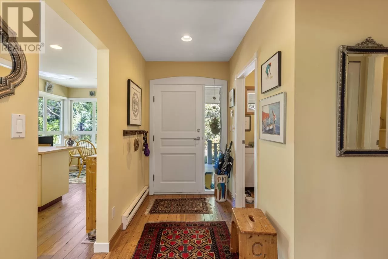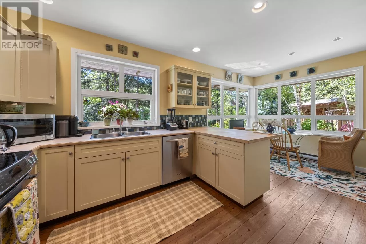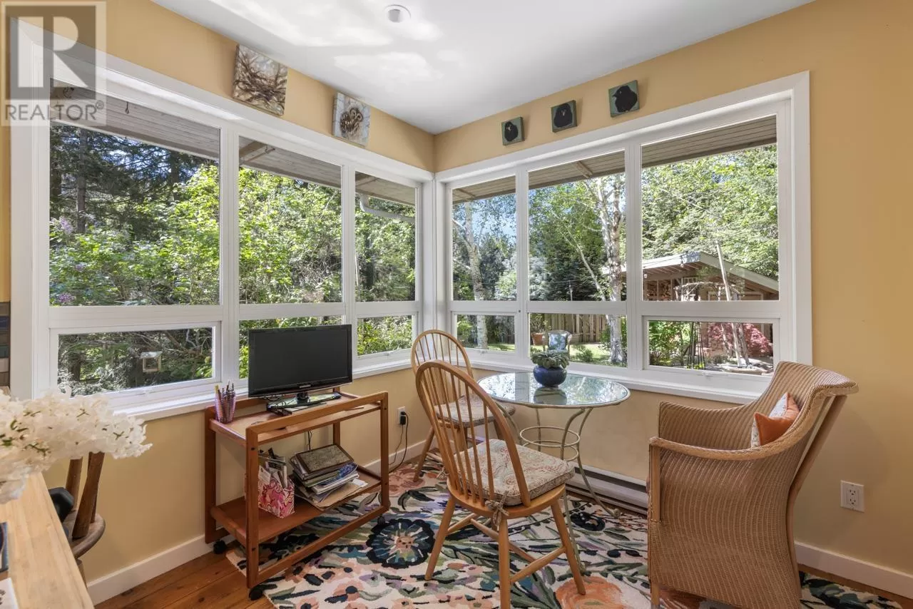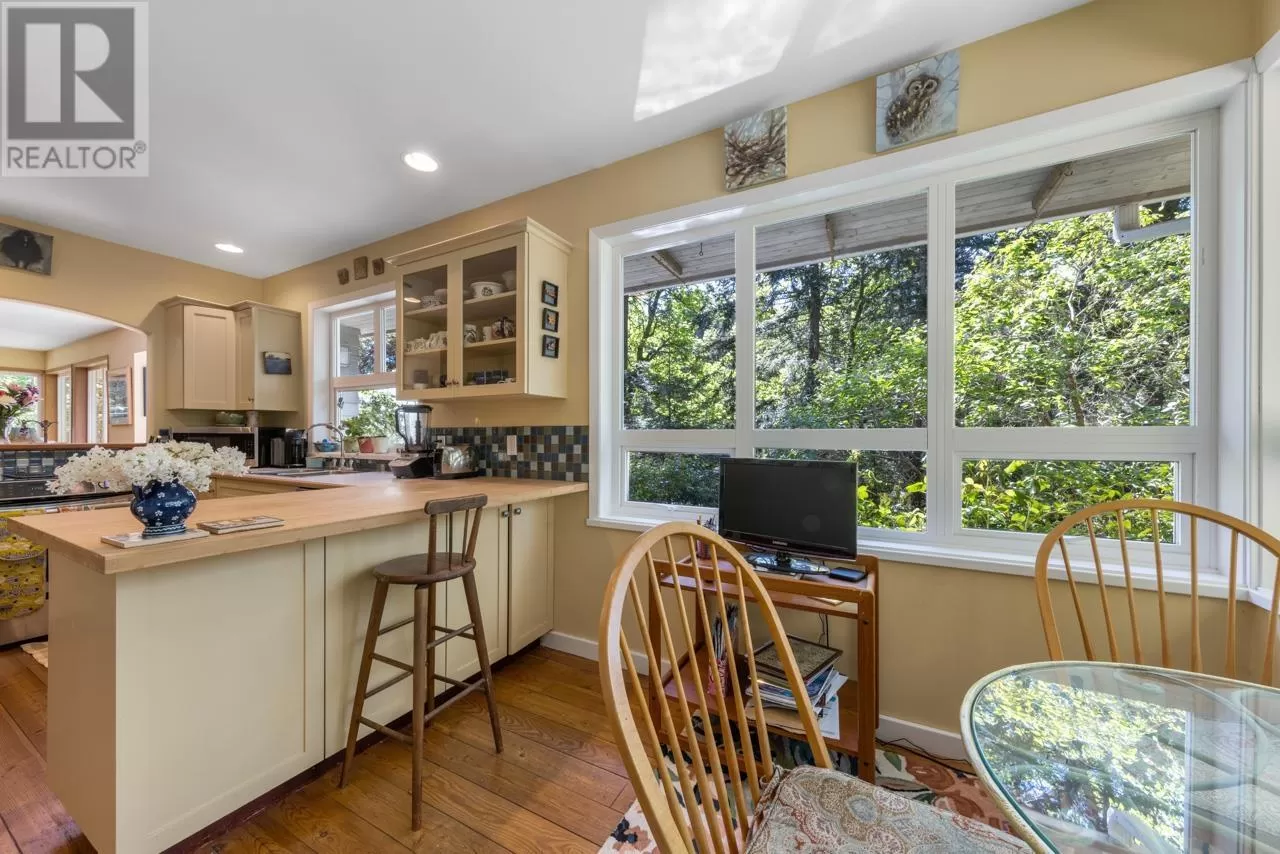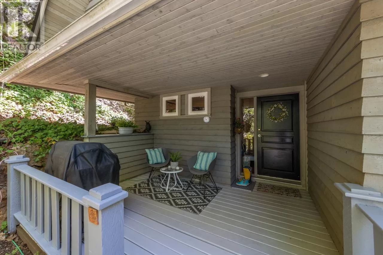 Perched on picturesque Cates Hill, this beautifully secluded 3-bedroom home offers peace, privacy, and nearly an acre of lush grounds. Surrounded by greenery, this tranquil retreat invites you to relax and unwind. Inside, the bright and airy open-concept living and dining area is filled with natural light, featuring rich hardwood floors and a cozy wood-burning fireplace that adds charm and warmth. The upper level includes a generous primary suite with ensuite bath, while two additional bedrooms, a full bathroom, and a convenient main floor powder room complete the thoughtful layout. French doors off the dining room open to a sun-soaked patio, ideal for relaxing or entertaining in the garden setting. Bonus features include a private outdoor shower, covered secondary patio, and proximity to Bowen Island Community School. A rare offering in an idyllic location. (id:27476)