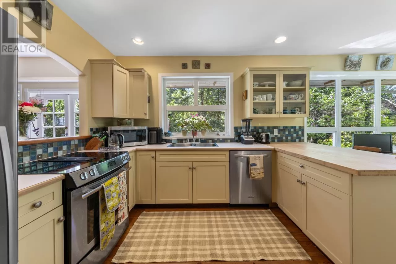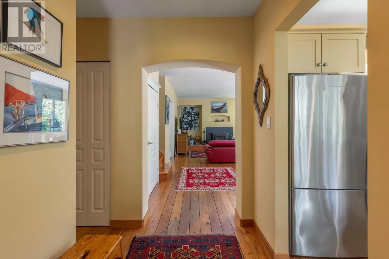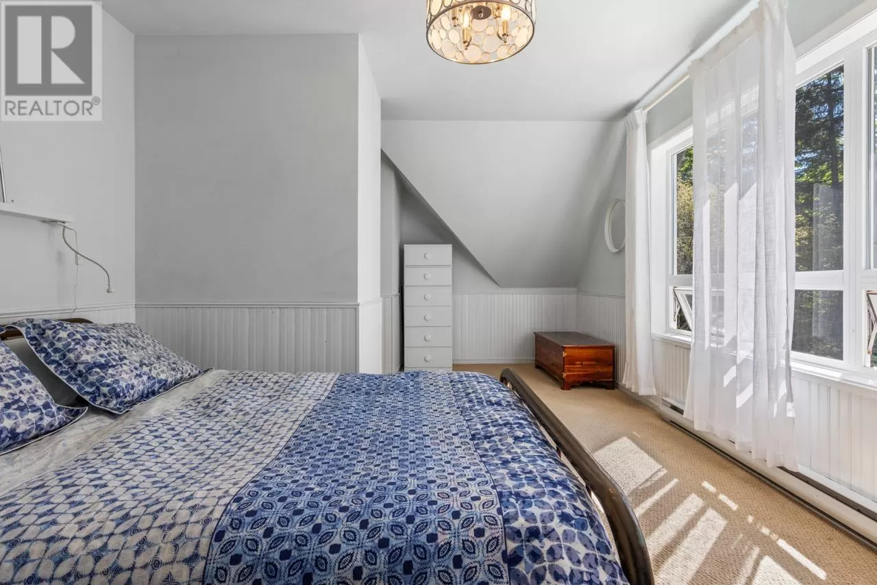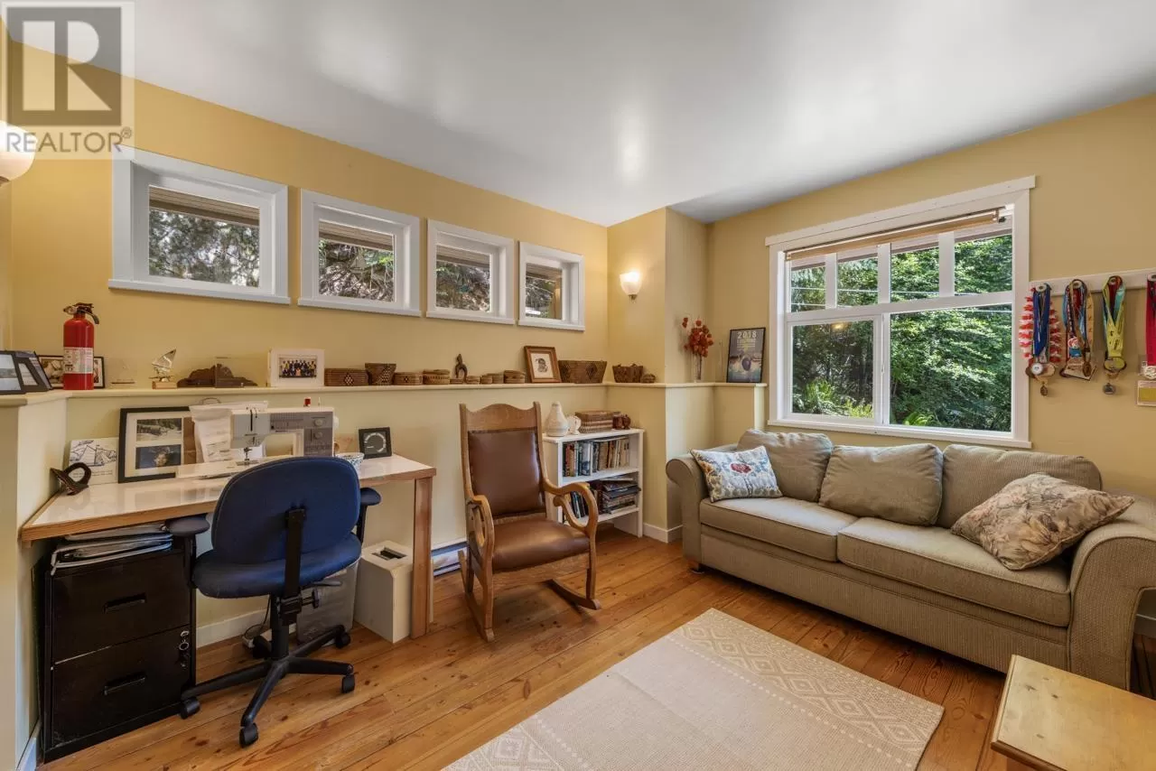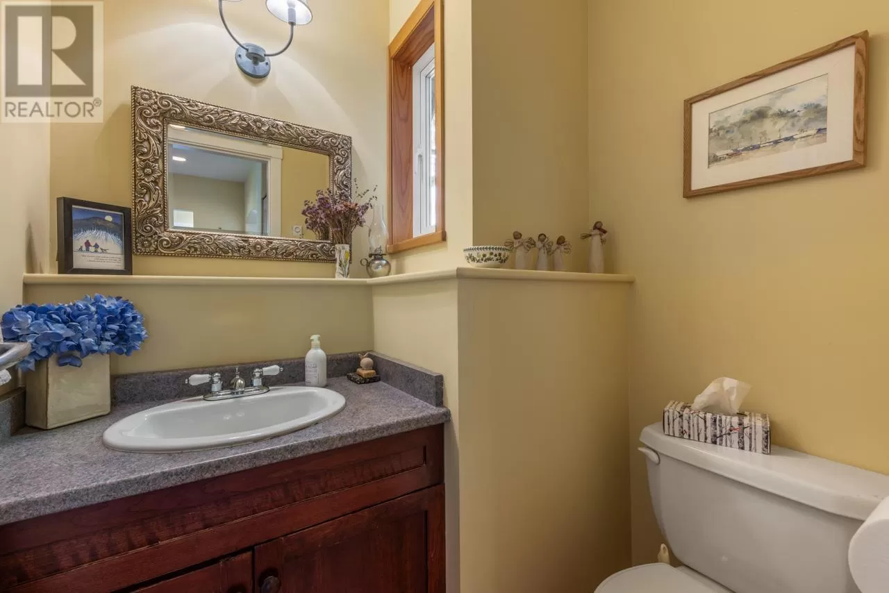 Perched on picturesque Cates Hill, this beautifully secluded 3-bedroom home offers peace, privacy, and nearly an acre of lush grounds. Surrounded by greenery, this tranquil retreat invites you to relax and unwind. Inside, the bright and airy open-concept living and dining area is filled with natural light, featuring rich hardwood floors and a cozy wood-burning fireplace that adds charm and warmth. The upper level includes a generous primary suite with ensuite bath, while two additional bedrooms, a full bathroom, and a convenient main floor powder room complete the thoughtful layout. French doors off the dining room open to a sun-soaked patio, ideal for relaxing or entertaining in the garden setting. Bonus features include a private outdoor shower, covered secondary patio, and proximity to Bowen Island Community School. A rare offering in an idyllic location. (id:27476)