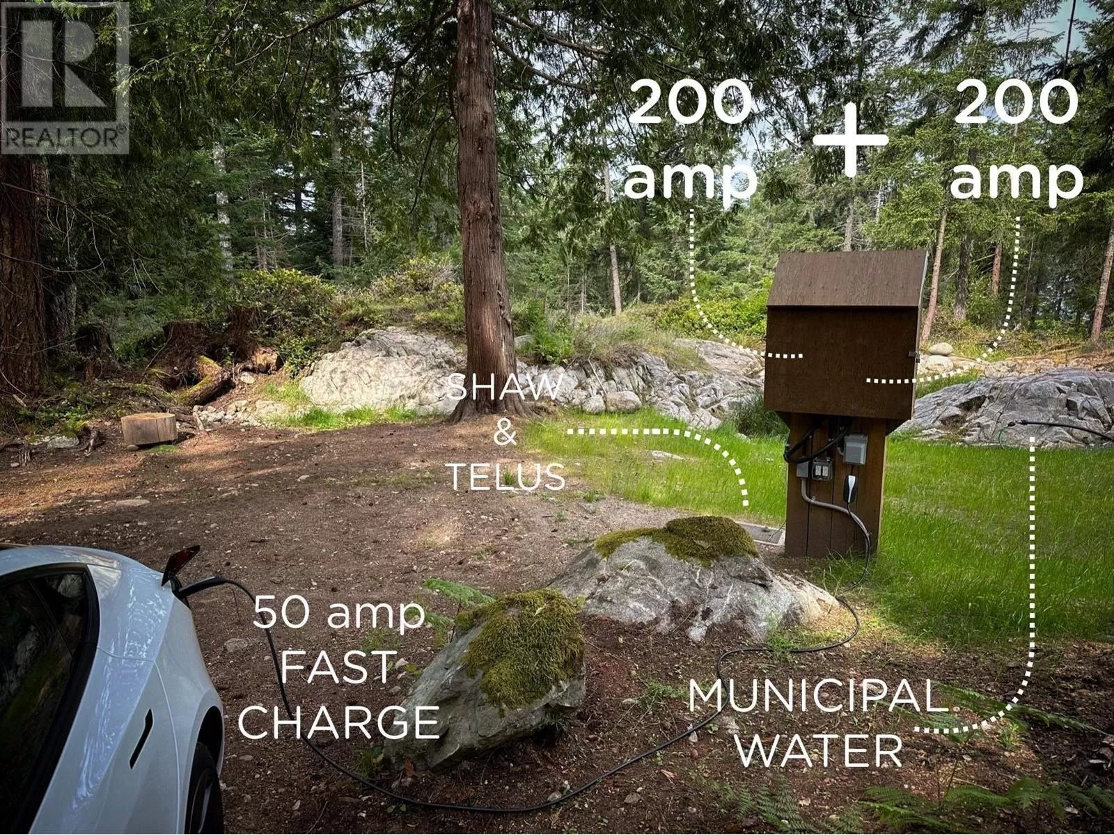 Nestled at the property´s upper elevation, the flat, unblasted build site captures gorgeous sunset views in a private, peaceful setting. This sun-filled 1.5-acre lot on Bowen´s desirable west side offers great potential. The lower portion naturally suits a guest house, workshop, or RV/boat storage. Utilities are in place: municipal water, 400 amps of power & internet to the build site-saving time, money & effort. Thoughtfully cleared with care for the natural environment, the site is set 400´ from the road. Features include exposed granite rock, bluffscape grasses, rainforest moss, mature trees & a striking water feature. Located in a quiet, family-friendly neighbourhood, just steps from a park and three beaches. GST applies. (id:27476)